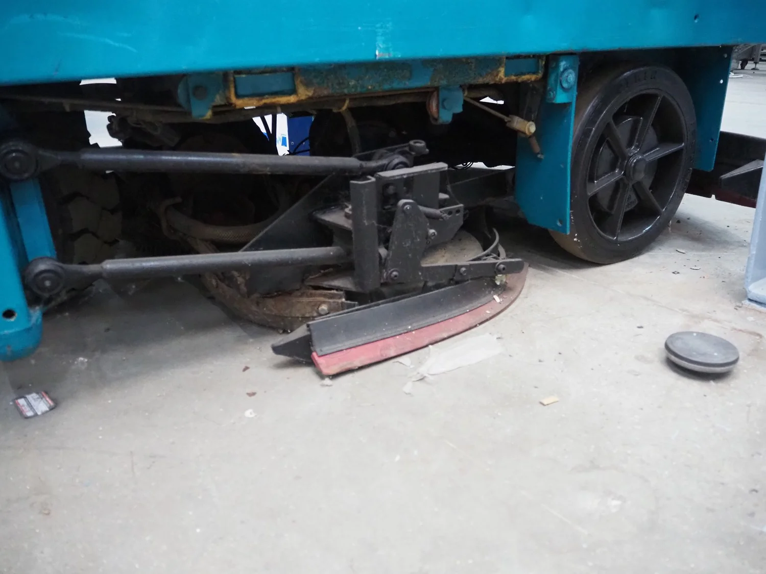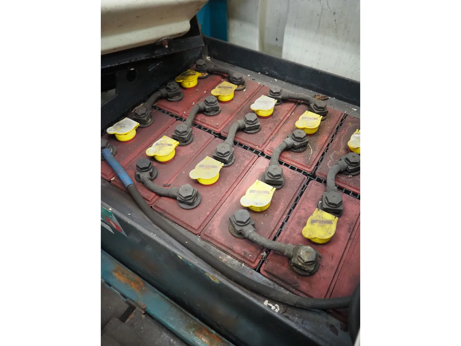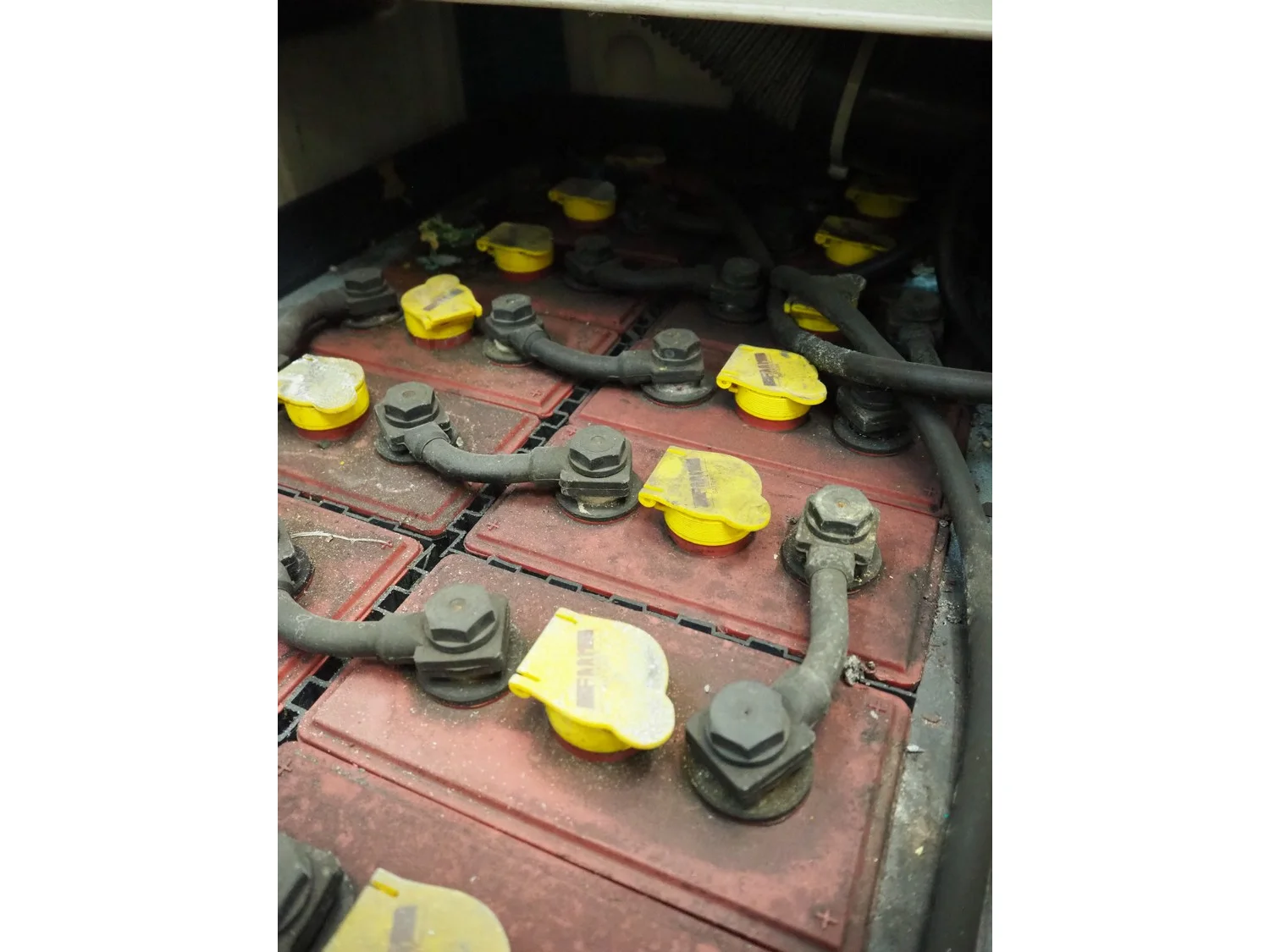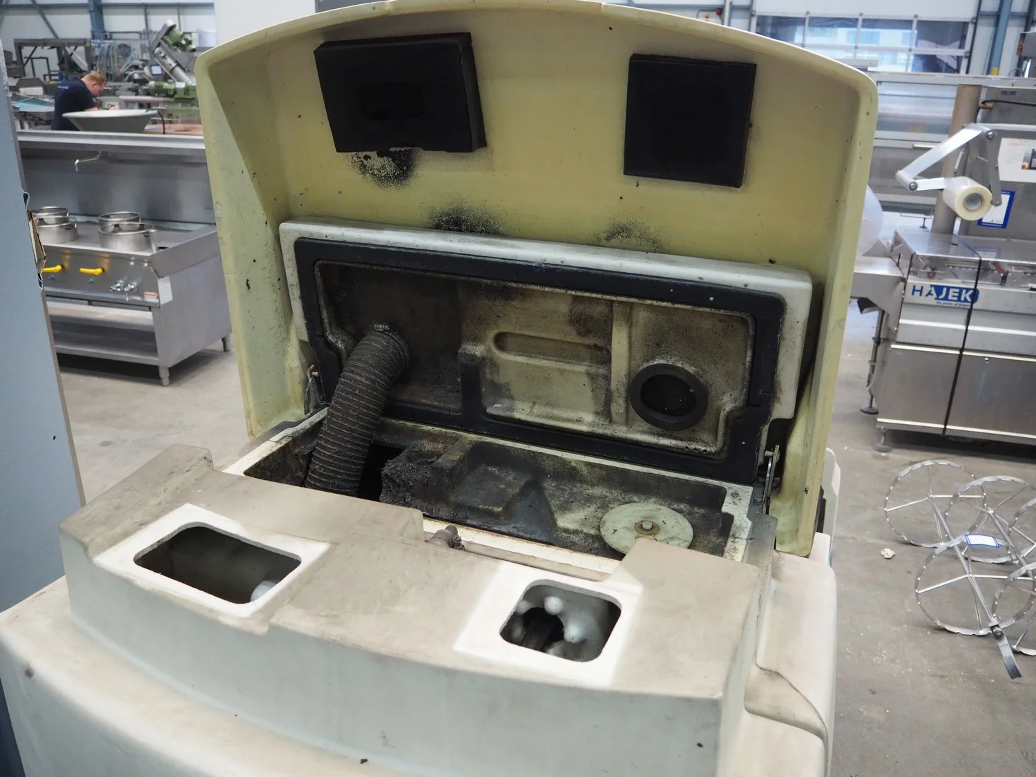 Tennant floor scrubbing machine, model: 510E, dimensions: 1200 mm x 2100 mm x 1600 mm. With Chloride motive power battery charger, 36 V.