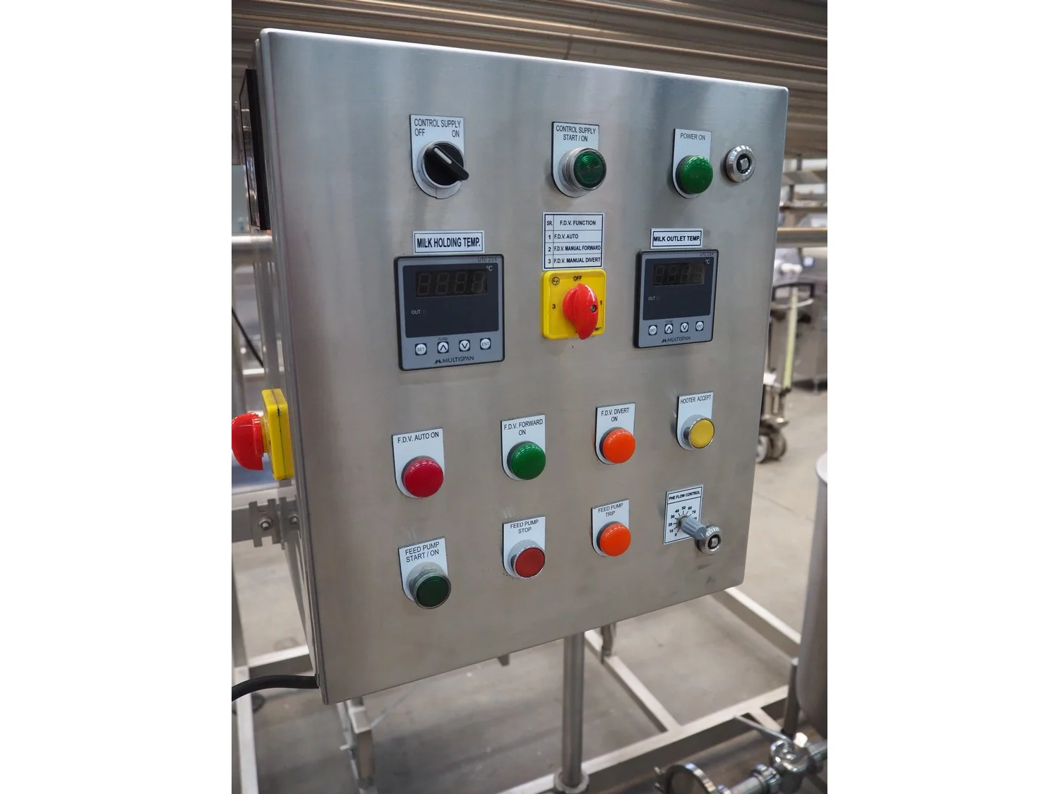 S/s HTST pasteurization installation, capacity: 1000 liters per hour, dimensions: 2100 mm x 1700 mm x 2000 mm. Never used.