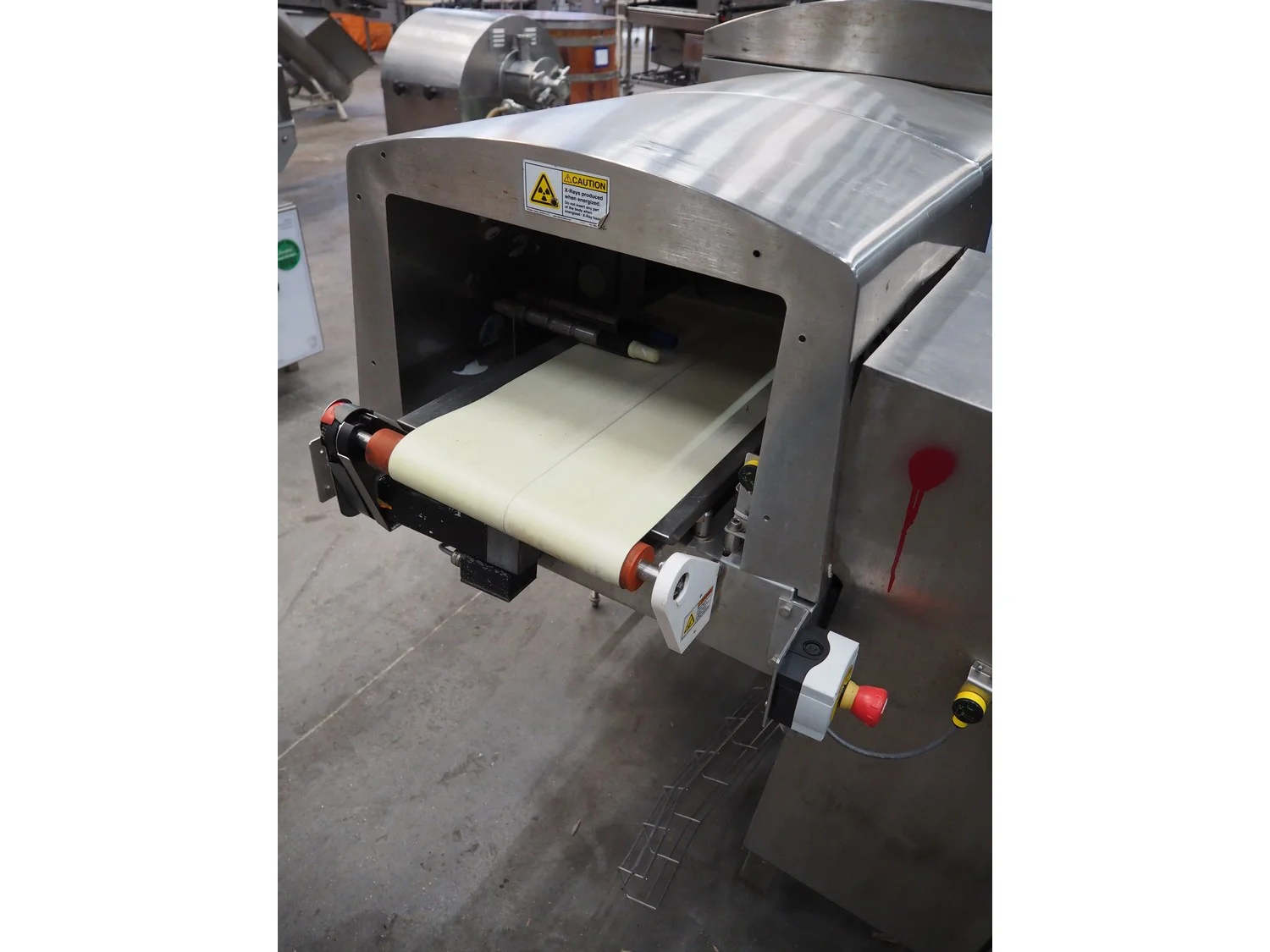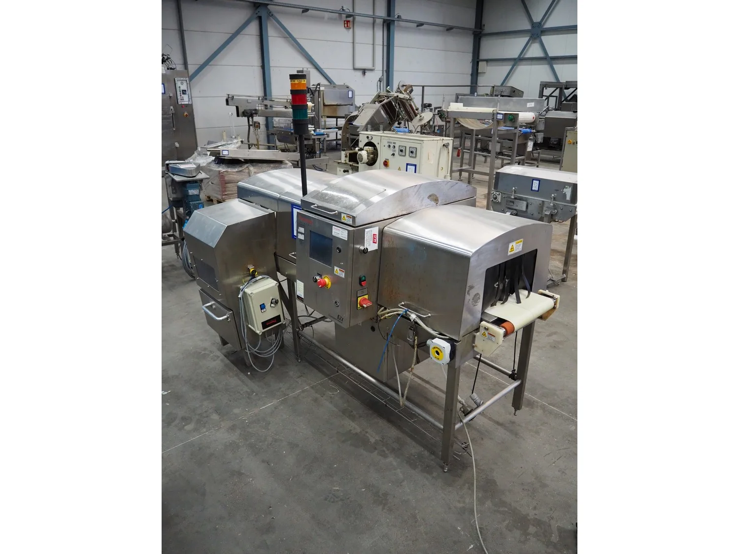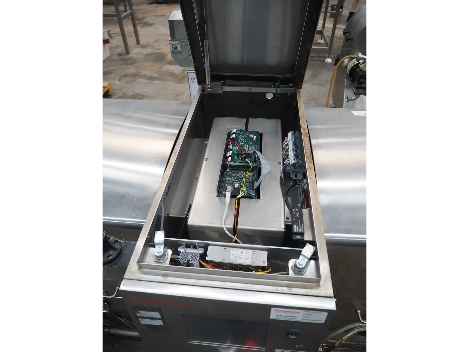 Thermo Fischer x-ray scanner with rejecter, type: EZX 420, serial number: 08243260, year of construction: JUNE 2008, 100-240 V, 50//60 Hz, 7.5-15 A, plastic belt, belt width: 310 mm, clearance: 380 mm x 190 mm, total dimensions: 2000 mm x 1100 mm x 1730 mm.