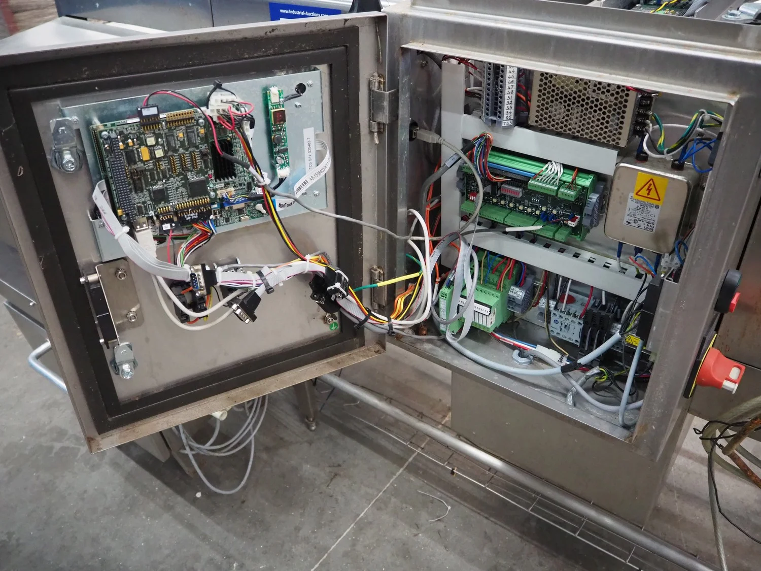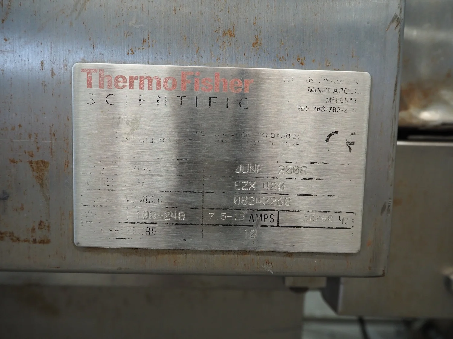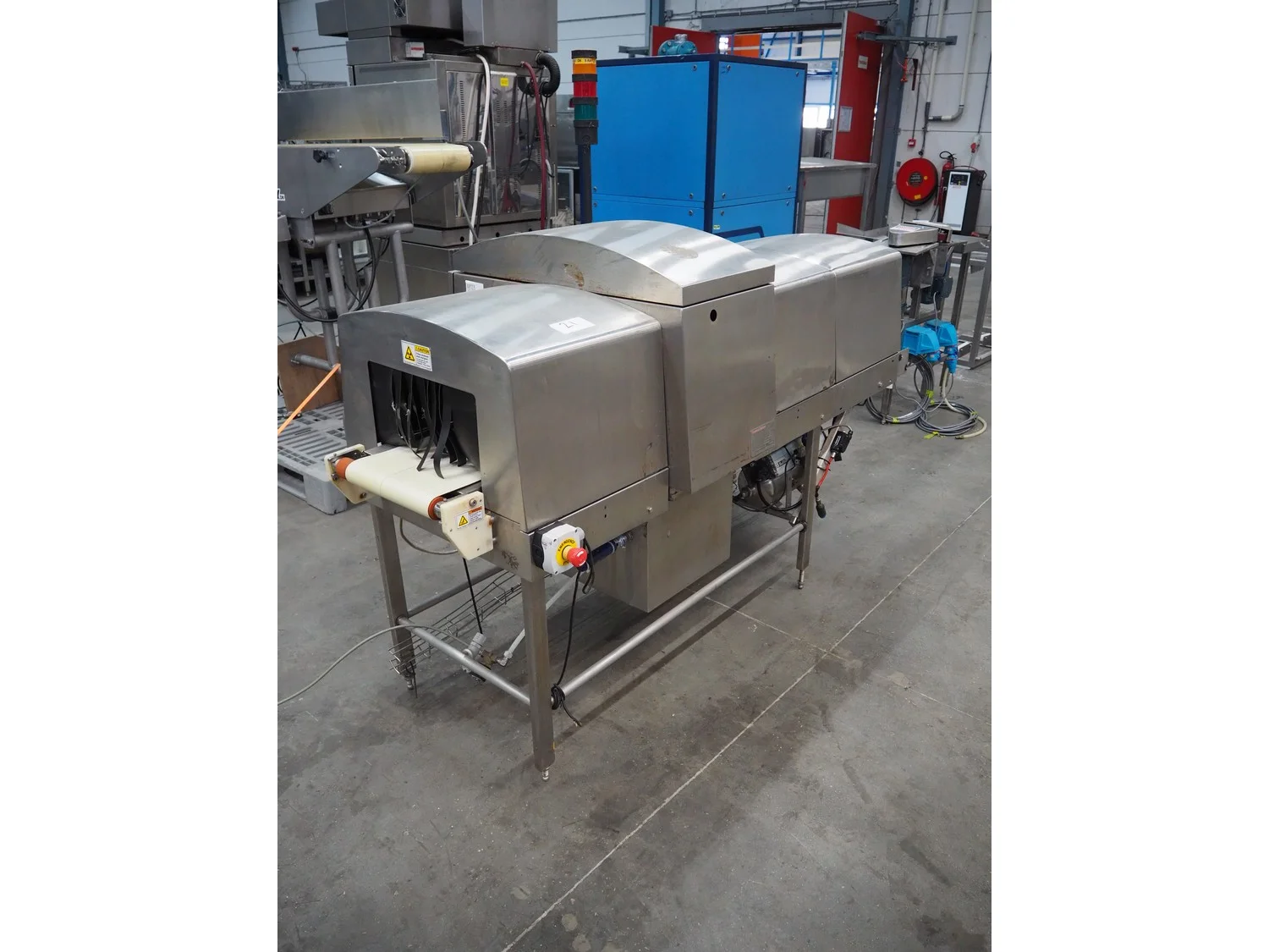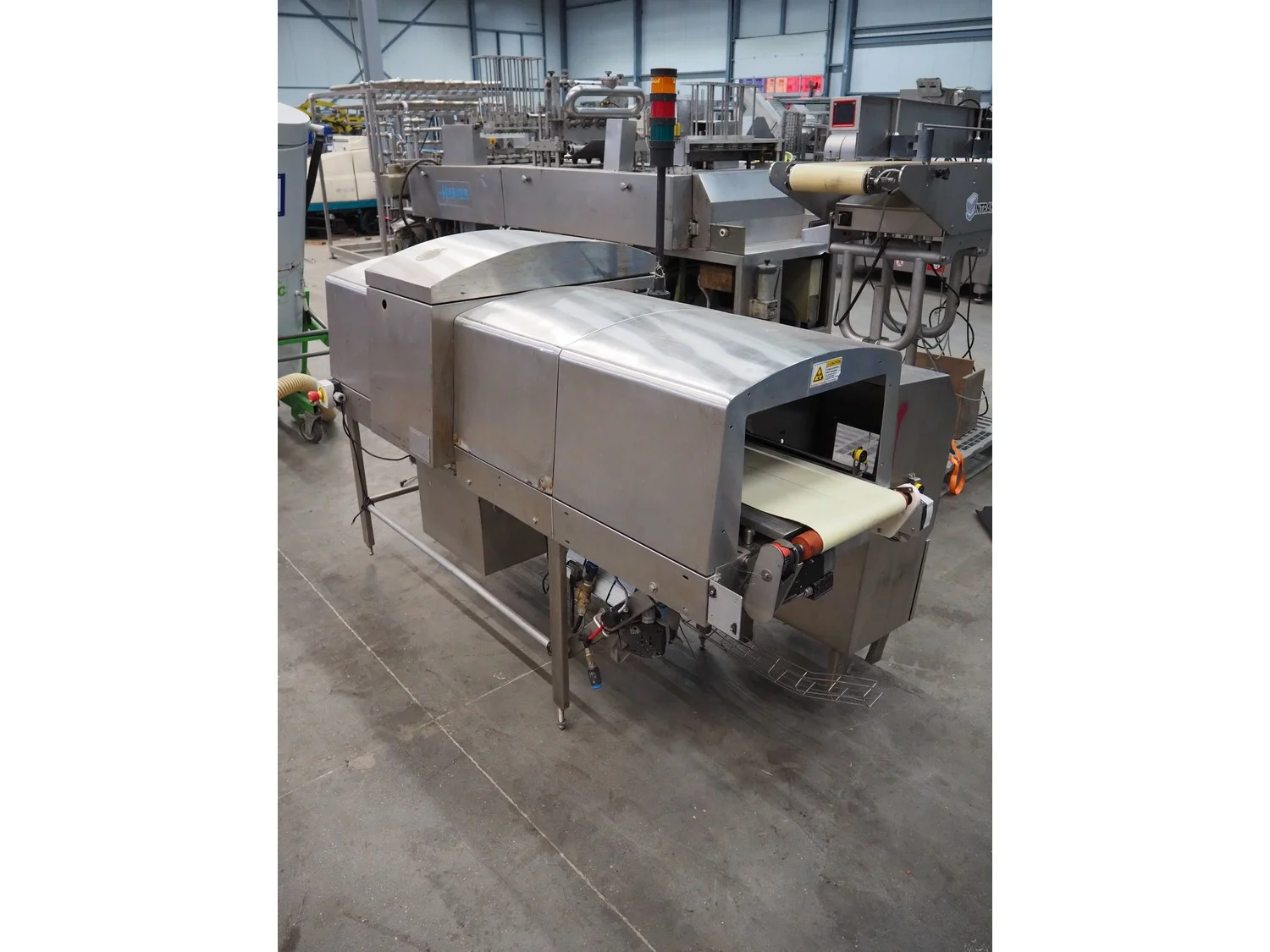 Thermo Fischer x-ray scanner with rejecter, type: EZX 420, serial number: 08243260, year of construction: JUNE 2008, 100-240 V, 50//60 Hz, 7.5-15 A, plastic belt, belt width: 310 mm, clearance: 380 mm x 190 mm, total dimensions: 2000 mm x 1100 mm x 1730 mm.
