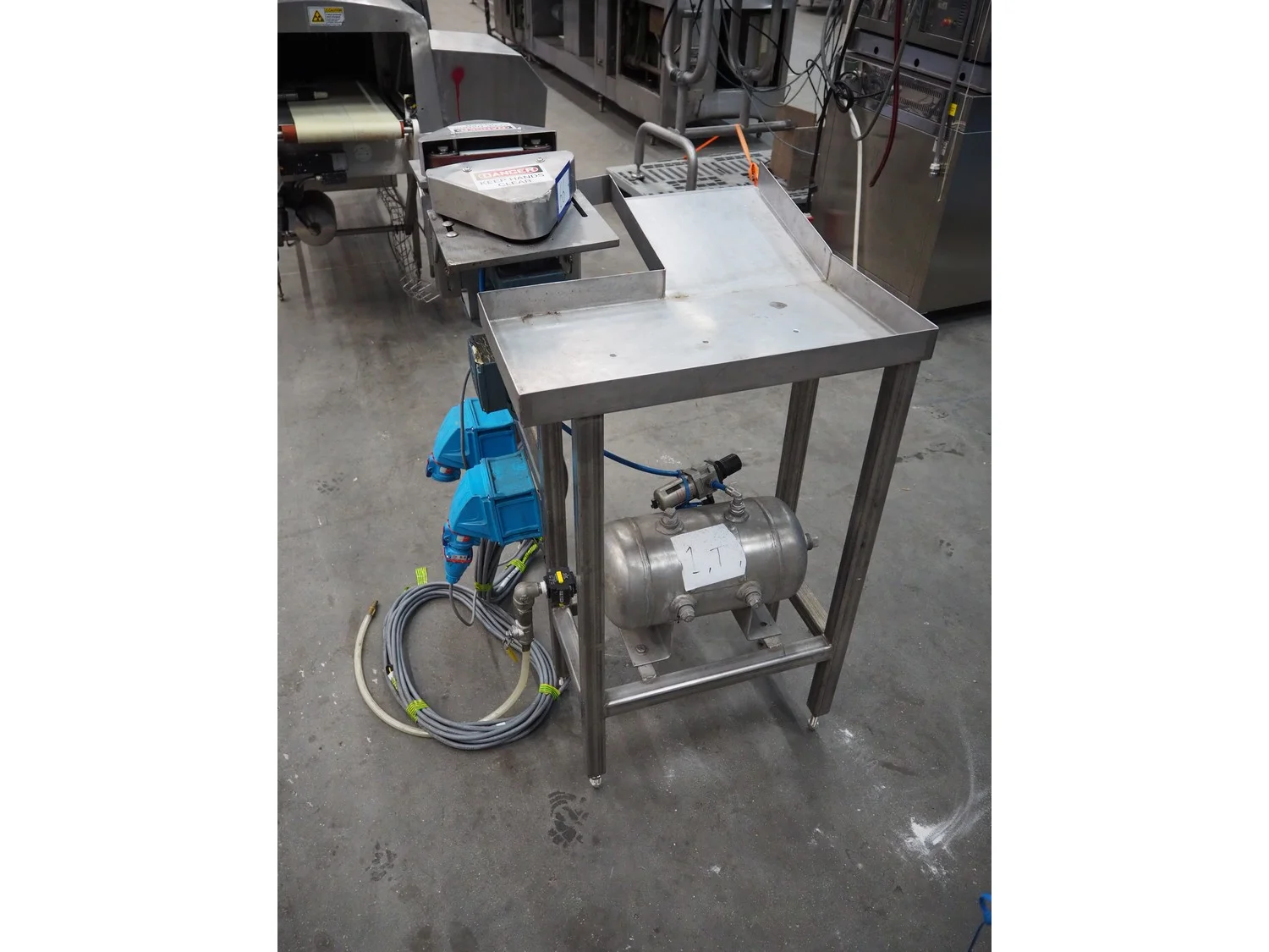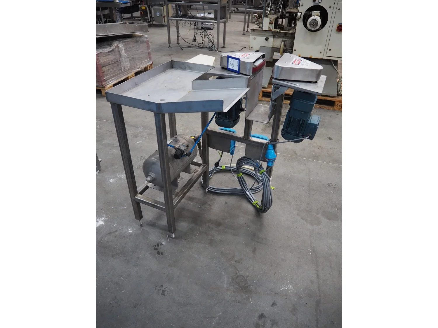Transport belt, s/s frame, dimensions: 1000 mm x 750 mm x 1100 mm.