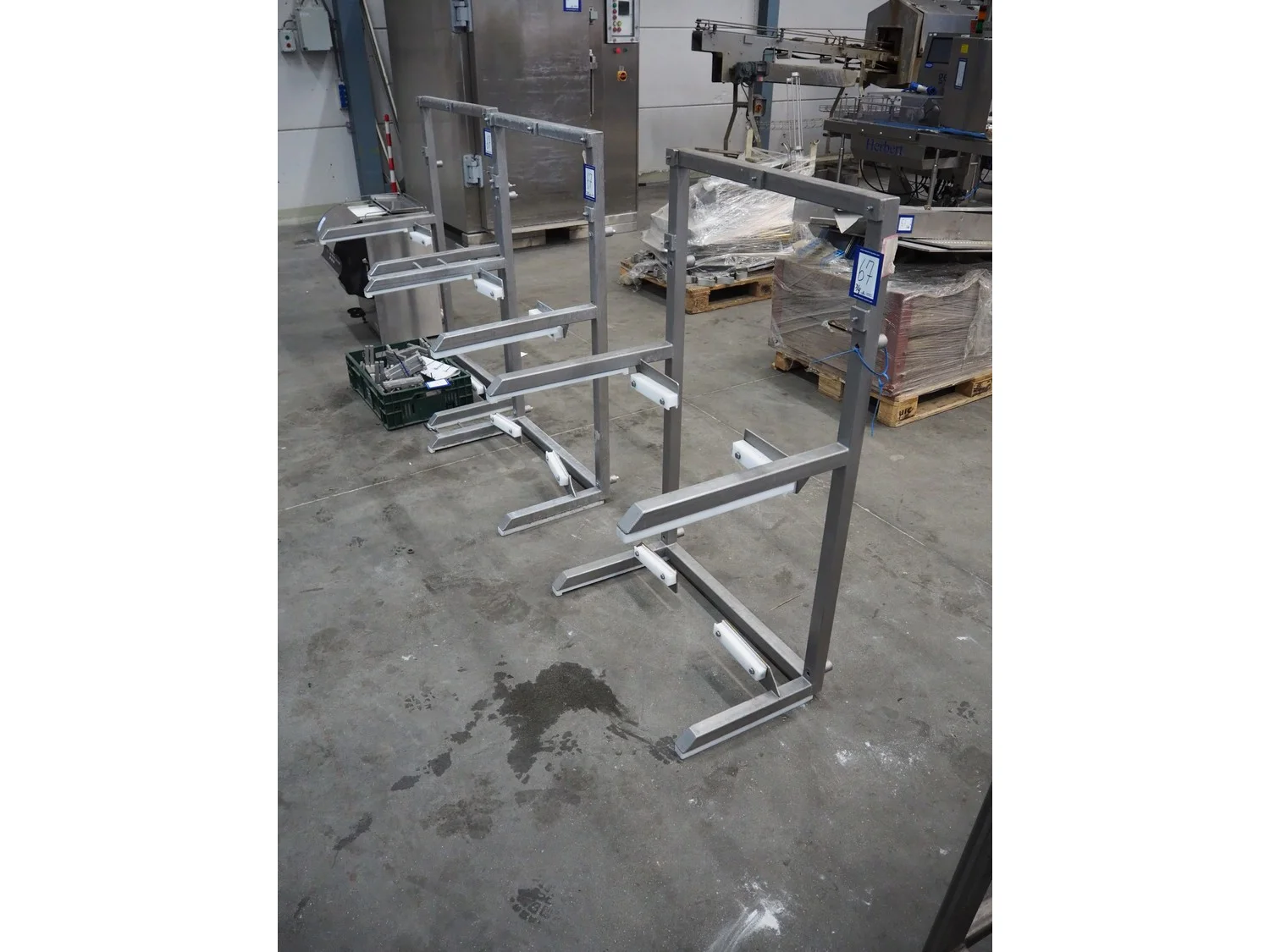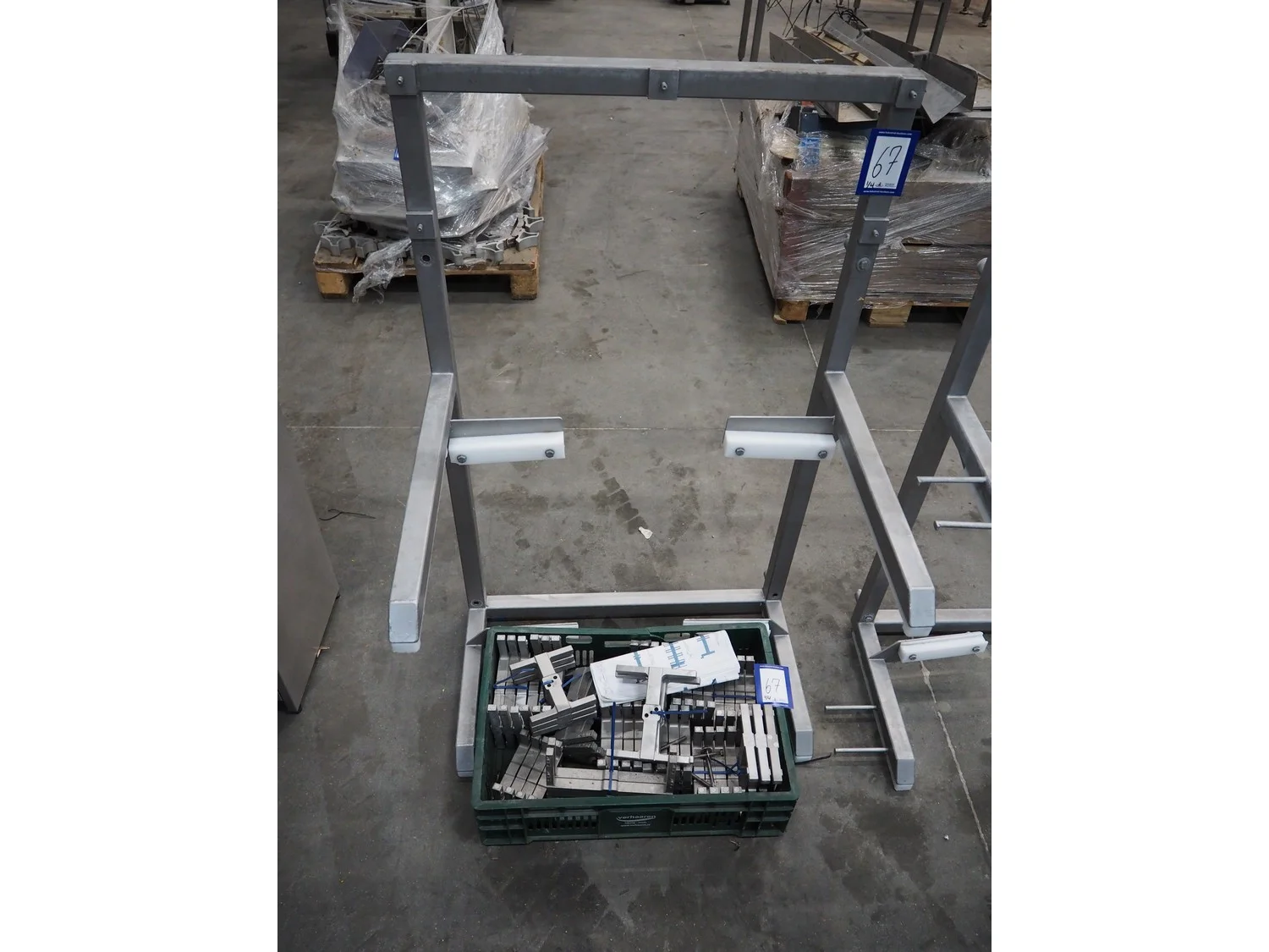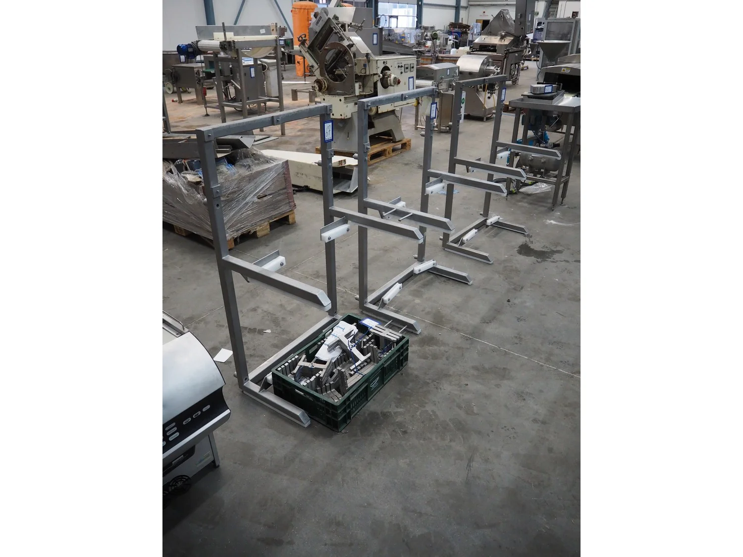 3 s/s frames for Tramper denester, dimensions: 740 mm x 620 mm x 1250 mm, including plastic crate with parts.