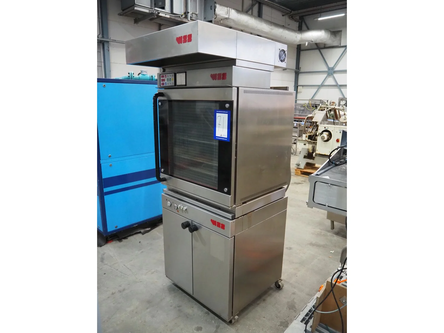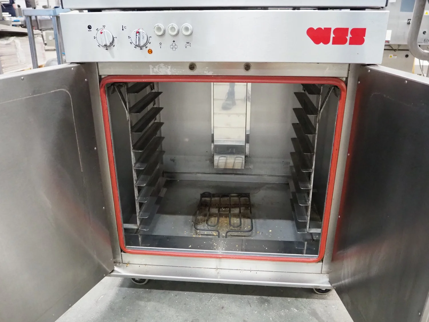 WSS mobile oven with proofer and hood, type oven: SBU8E-DE/1816, year of construction: 2002, 380 V, 3 Ph, 25 A, 12 kW, type proofer: GSU8M/2354, year of construction: 2002, 220 V, 1 Ph, 9.2 A, type hood: DAH-DK/7206, year of construction: 2002, 220 V, 1 Ph, 0.16 A, 0.63 kW, dimensions: 820 mm x 770 mm x 2150 mm.