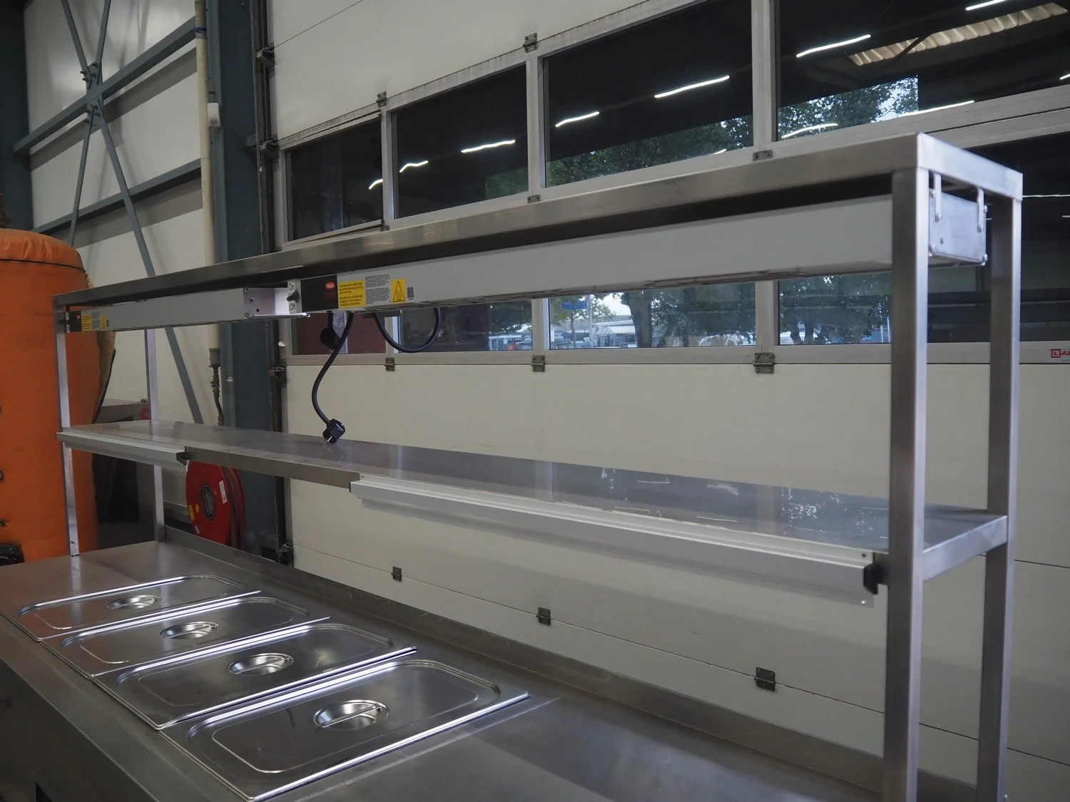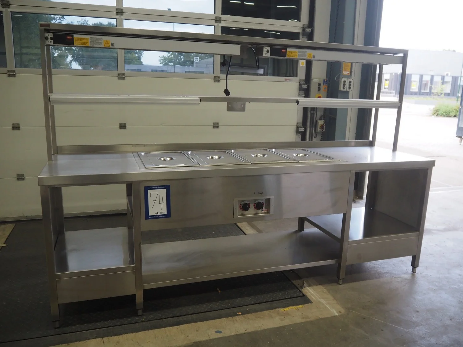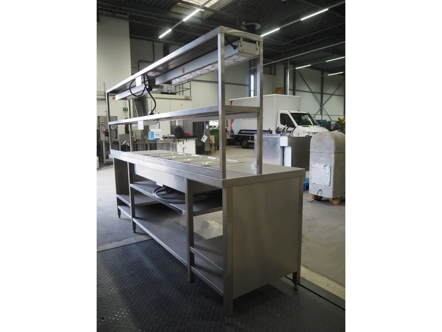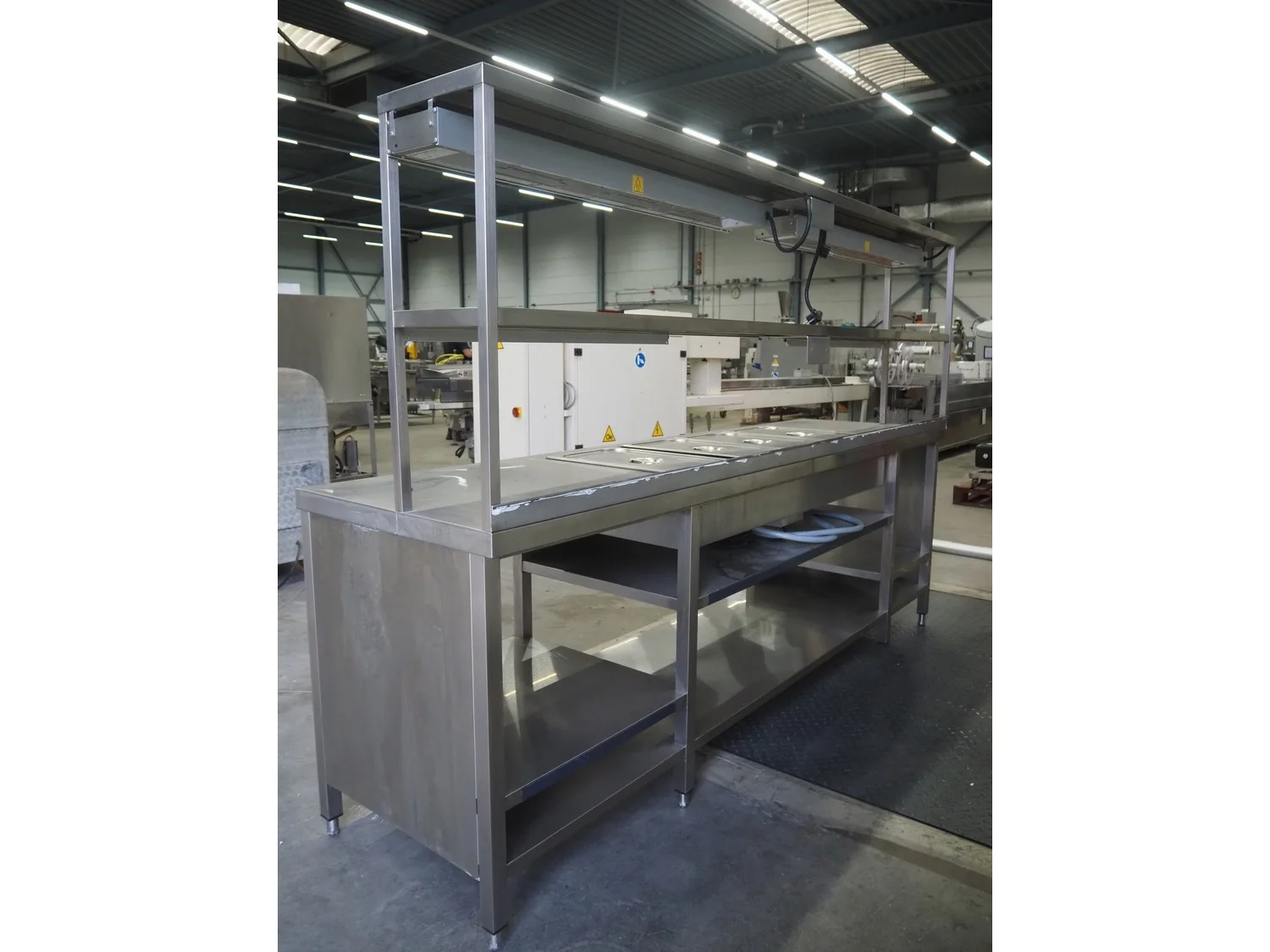 Hatco s/s kitchen counter with au bain marie, model: GRAH-48, serial number: 7959302109, 220-230 V, 50-60 Hz, 5/5.2 A, 1100/1202 W, dimensions: 2600 mm x 720 mm x 1710 mm.