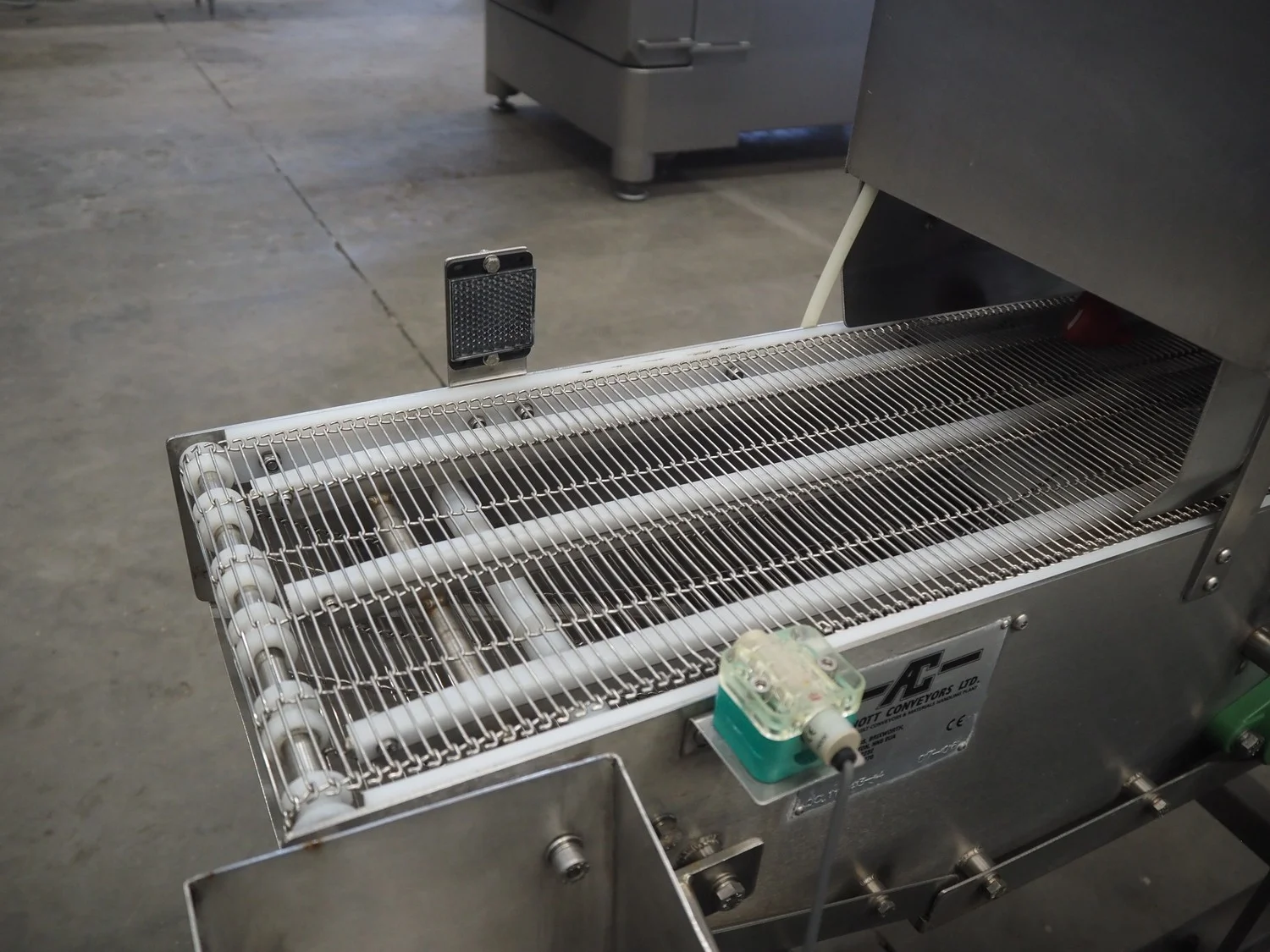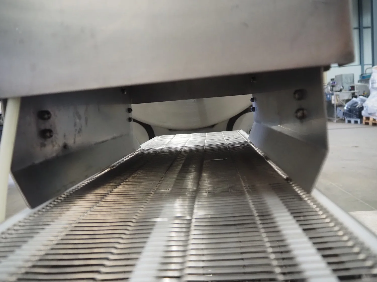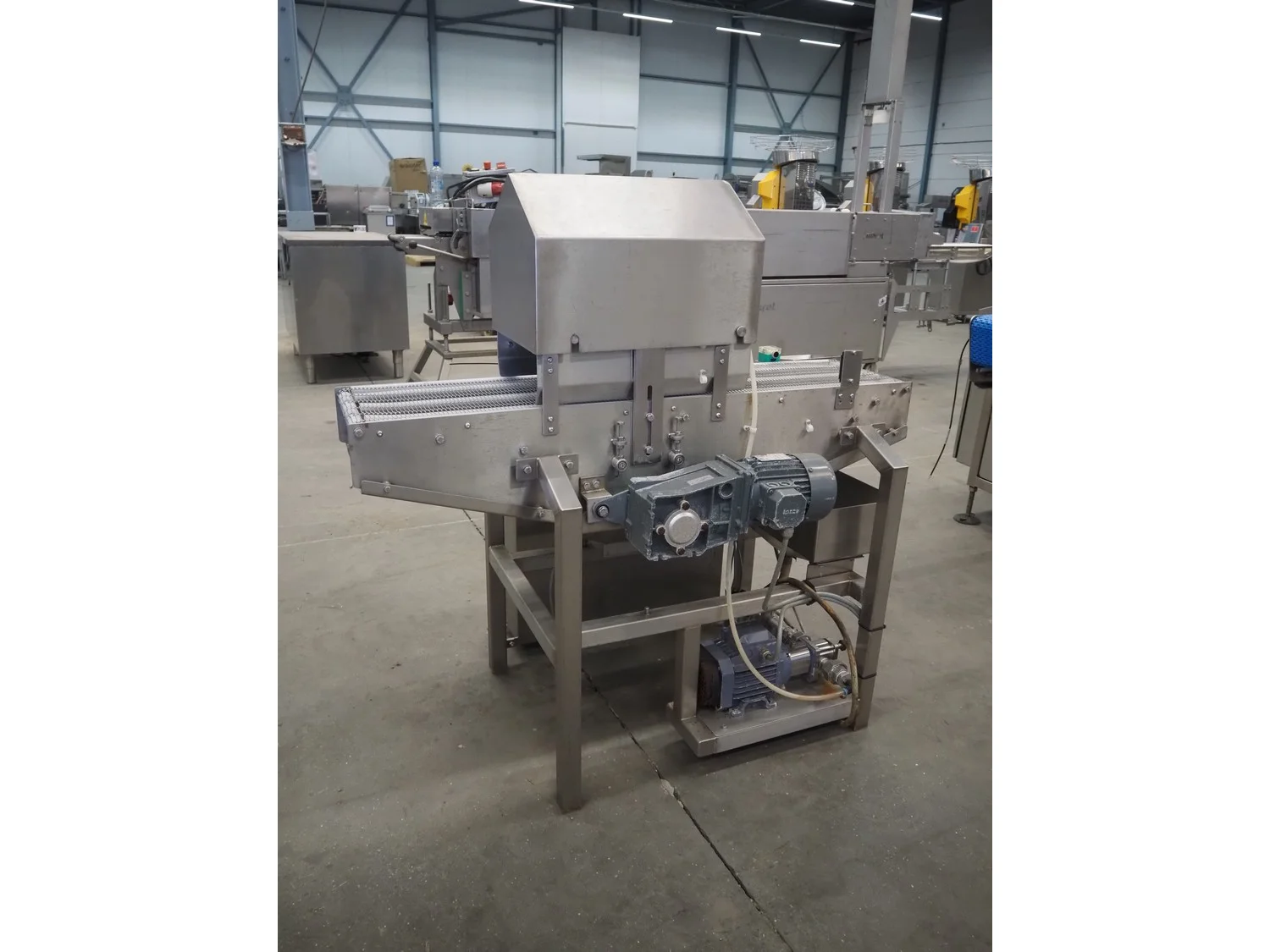 Arnott spraying belt, number: OC.11443-4, year of construction: 07-06, s/s mesh belt, belt width: 250 mm, total dimensions: 1250 mm x 850 mm x 1200 mm.