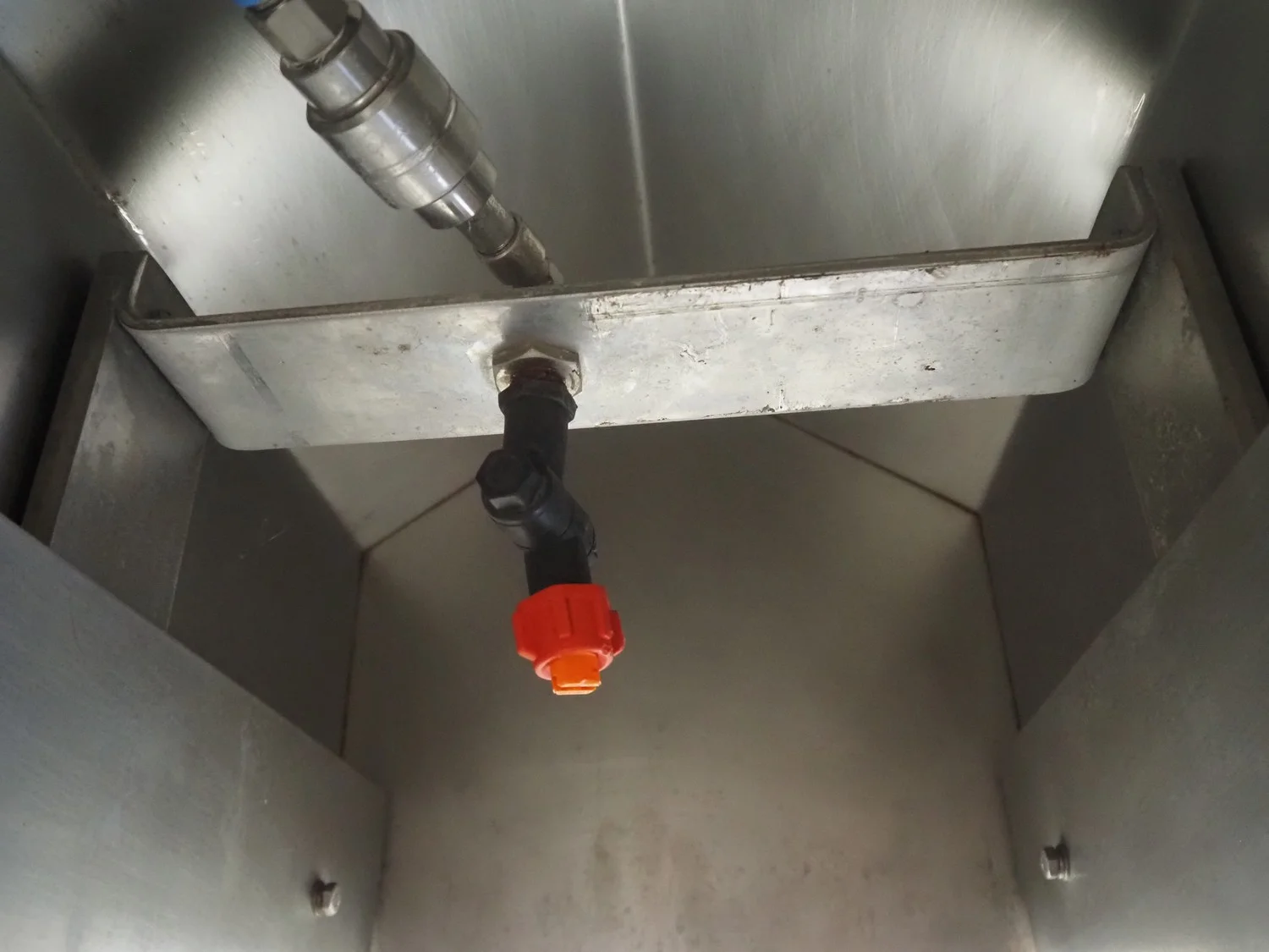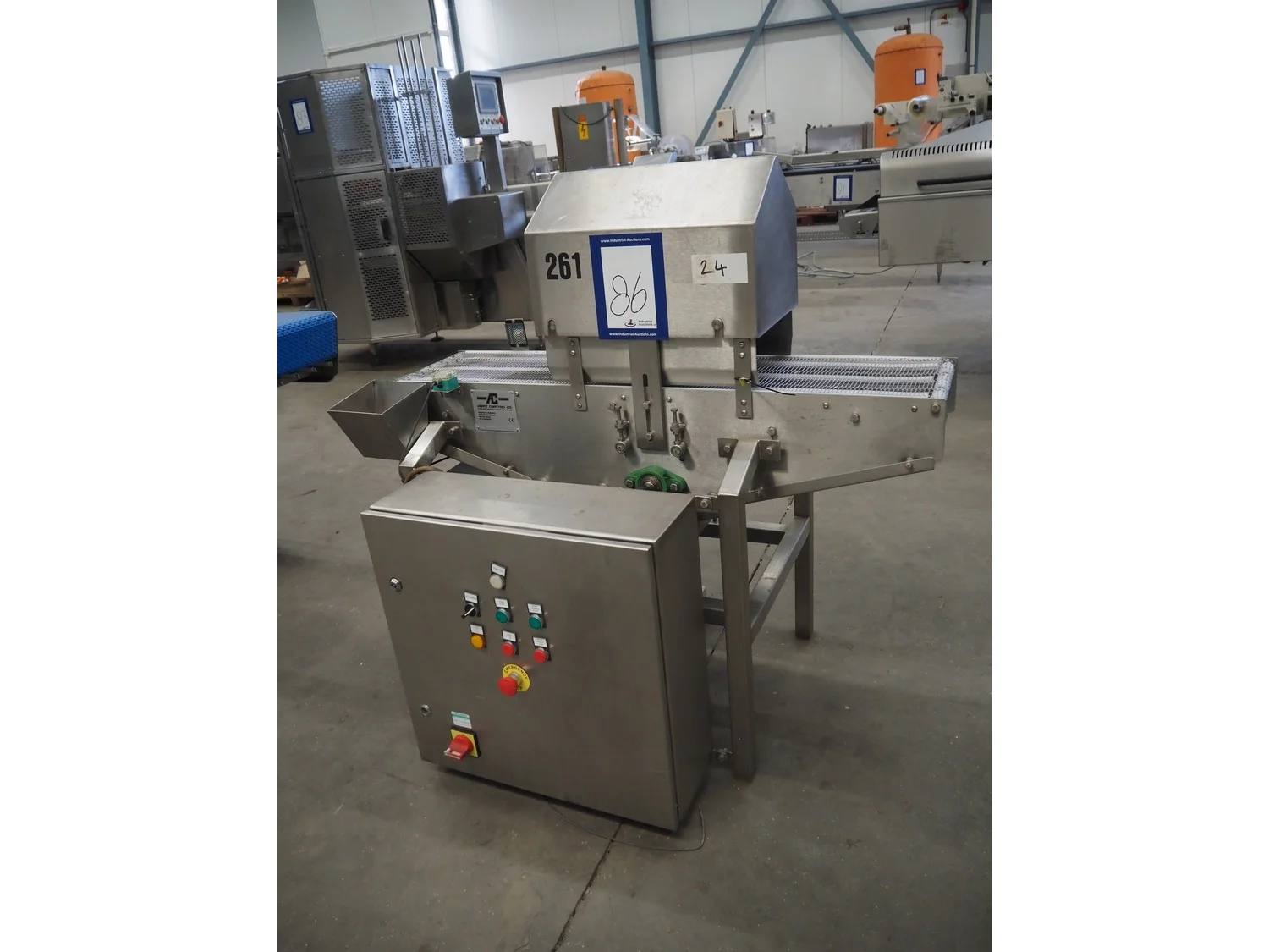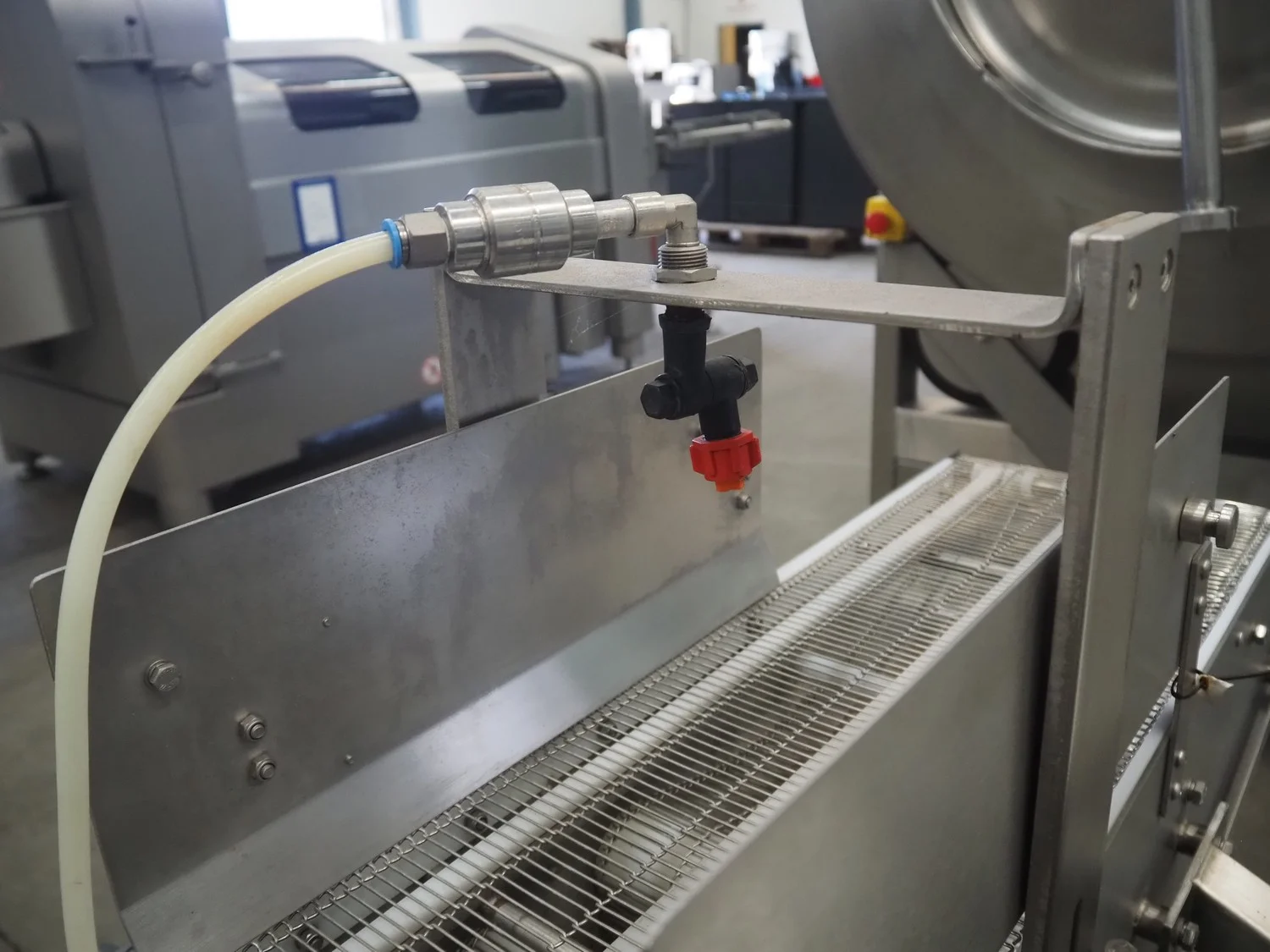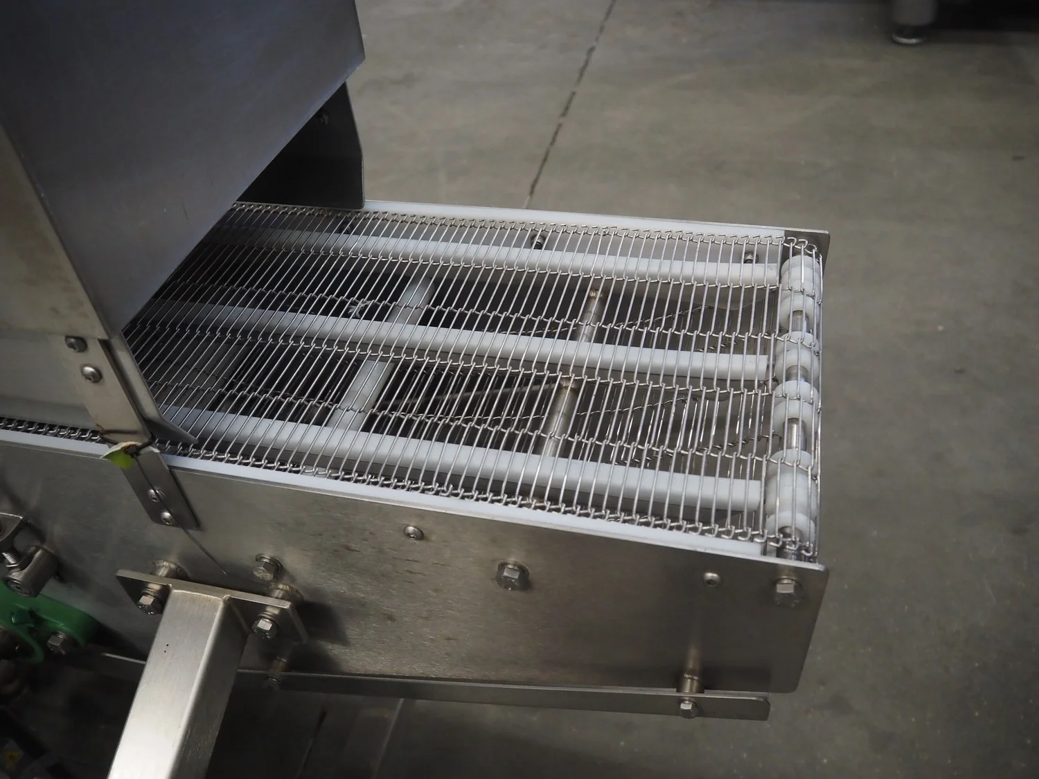 Arnott spraying belt, number: OC.11443-4, year of construction: 07-06, s/s mesh belt, belt width: 250 mm, total dimensions: 1250 mm x 850 mm x 1200 mm.