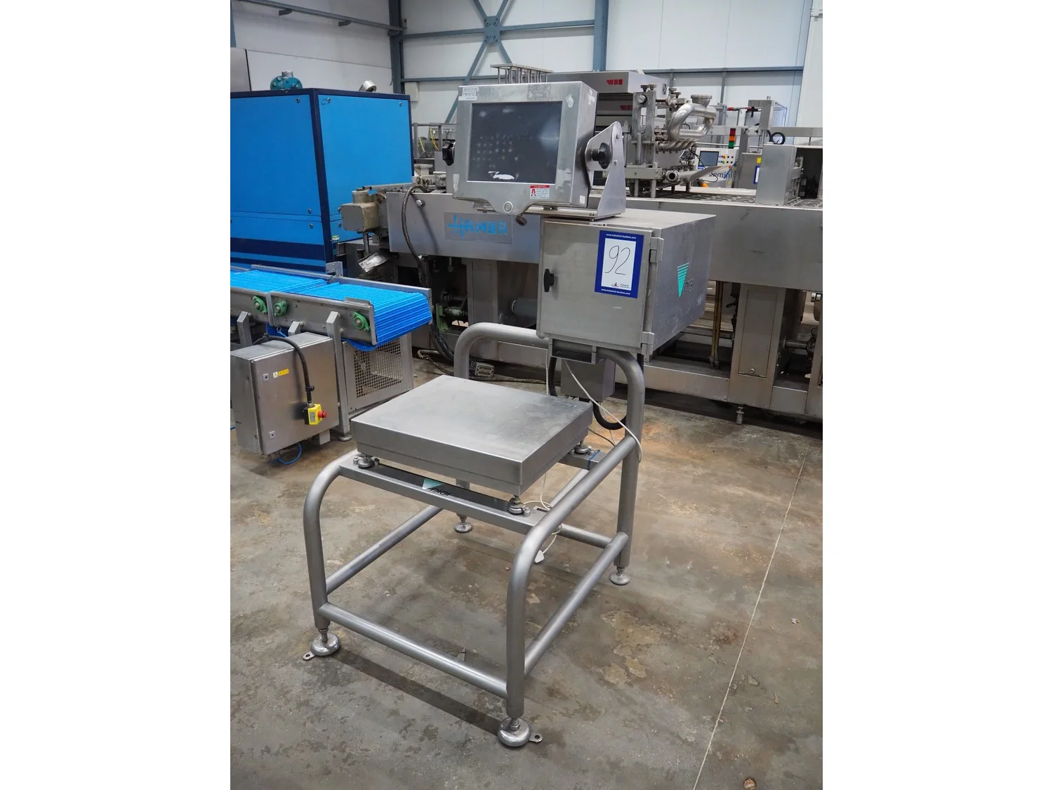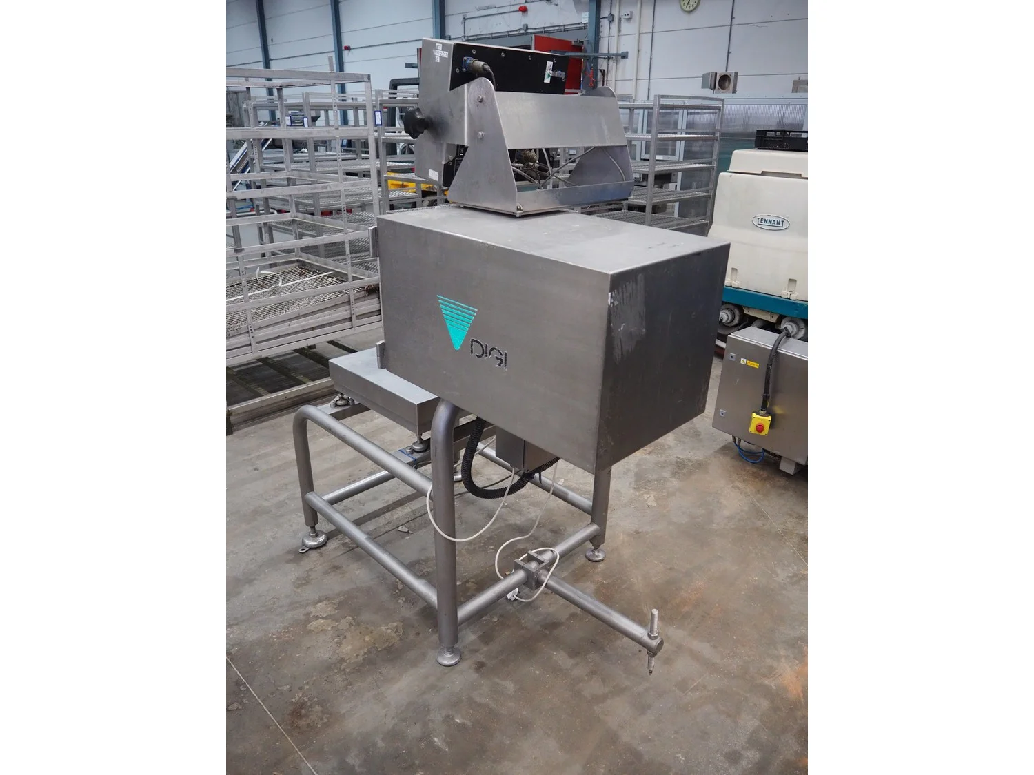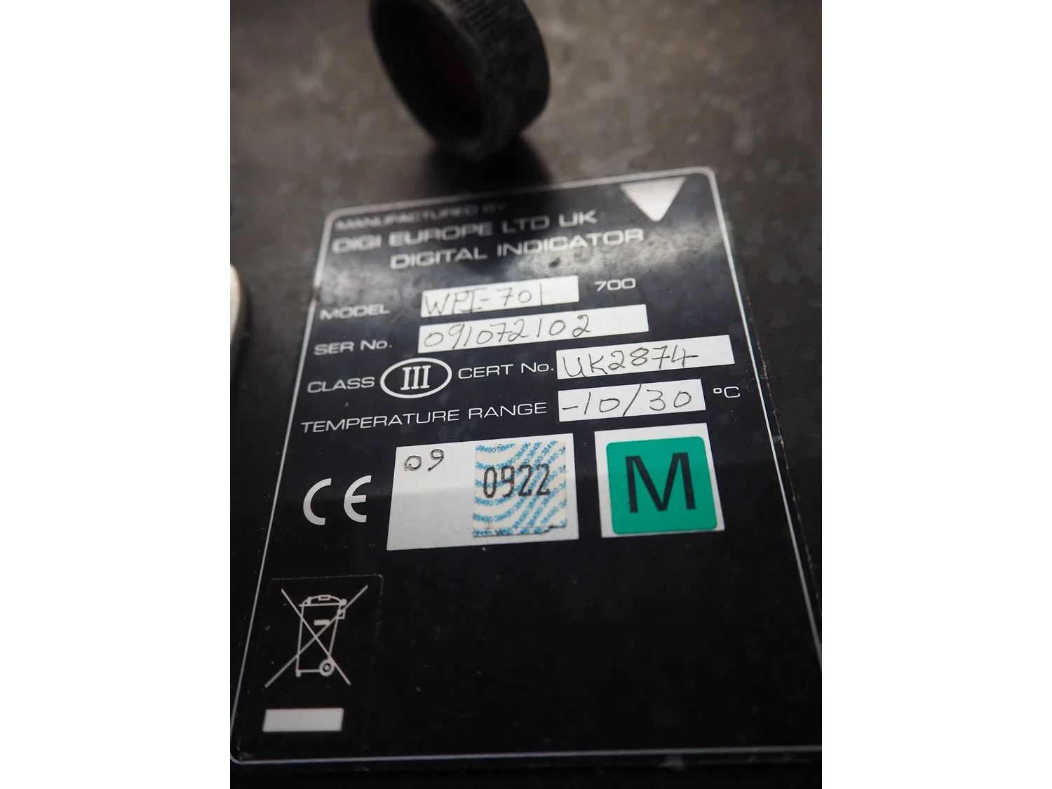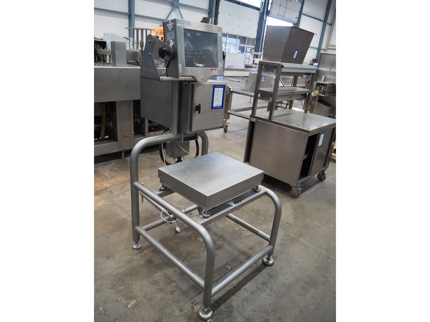 Digi Europe Ltd weighing scale with Intermec label printer, model weighing scale, WPI-70, serial number: 091072102, dimensions: 850 mm x 1500 mm x 1800 mm.