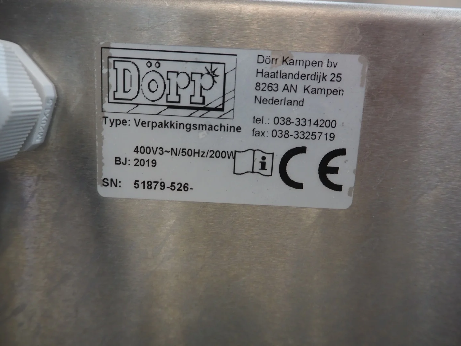 Dörr Kampen BV tray denester, type: verpakkingsmachine, serial number: 51879-526, year of construction: 2019, 400 V, 3 Ph, 50 Hz, 200 Watt, tray dimensions: 230 mm x 170 mm, total dimensions: 1500 mm x 900 mm x 1800 mm.