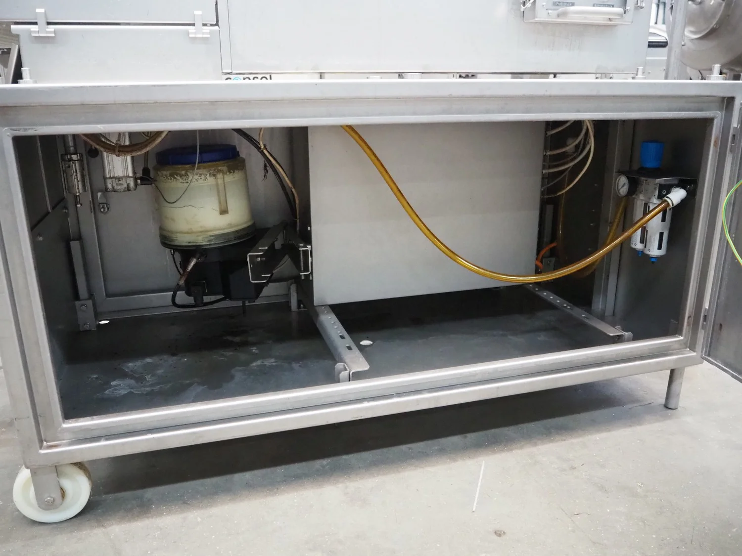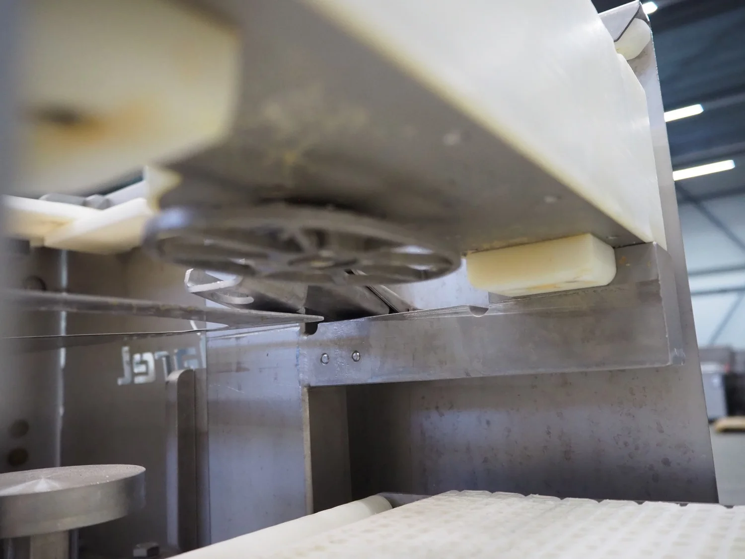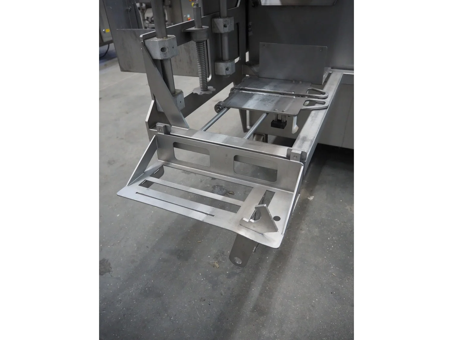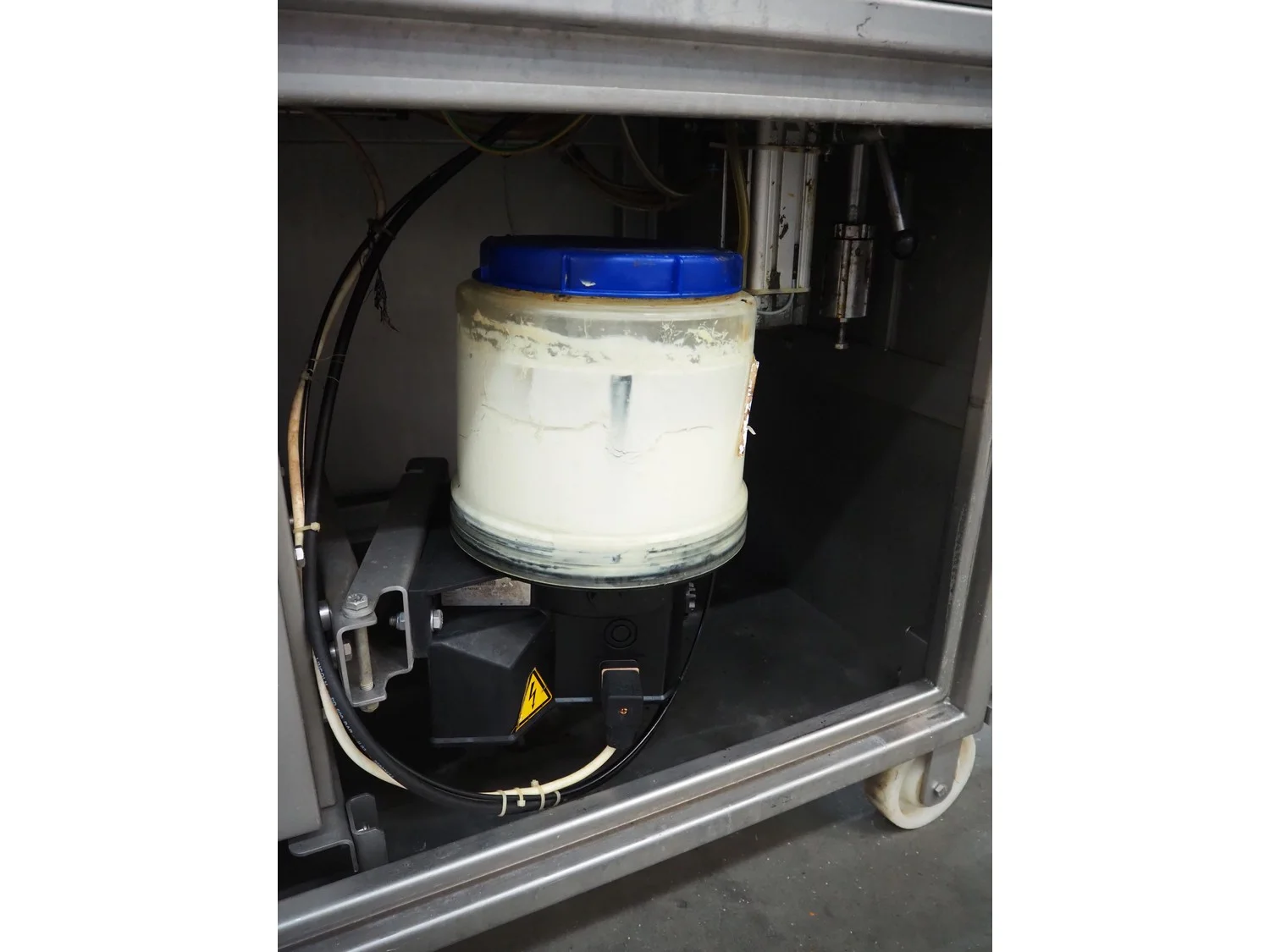 Marel portioning machine, type: Portio 4003S, serial number: 080S-0071, year of construction: 2006, 400 V, 3 Ph, 50/60 Hz, 1.2/2.2 A, weight: 500 kg, plastic belt, belt width: 250 mm, total dimensions: 2700 mm x 800 mm x 3000 mm.