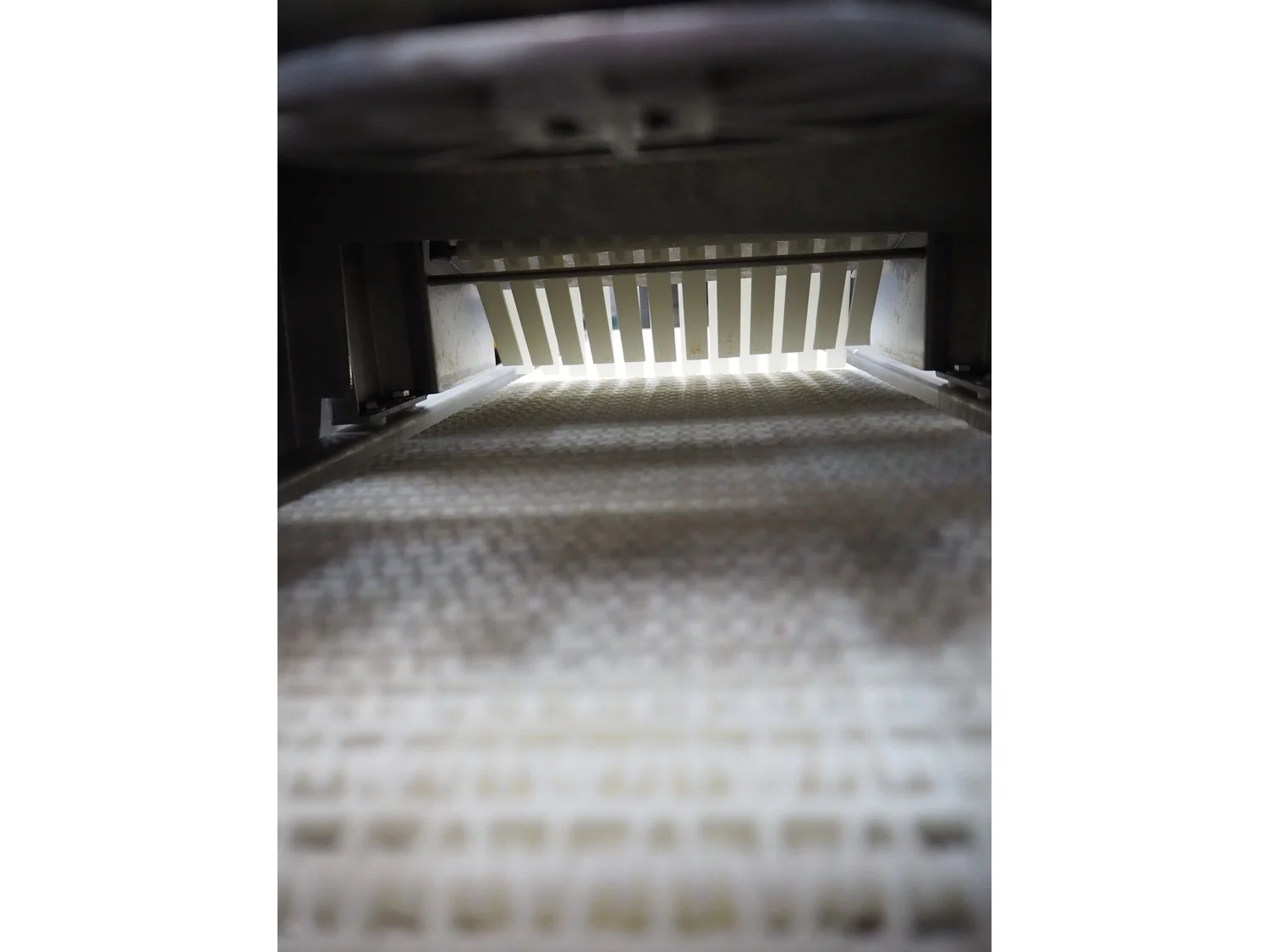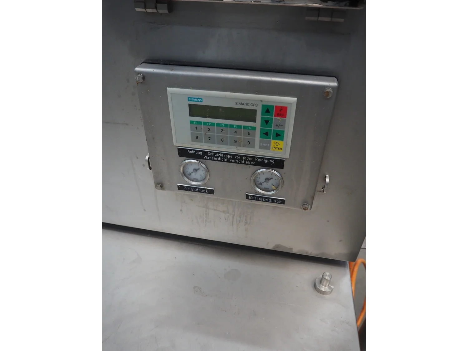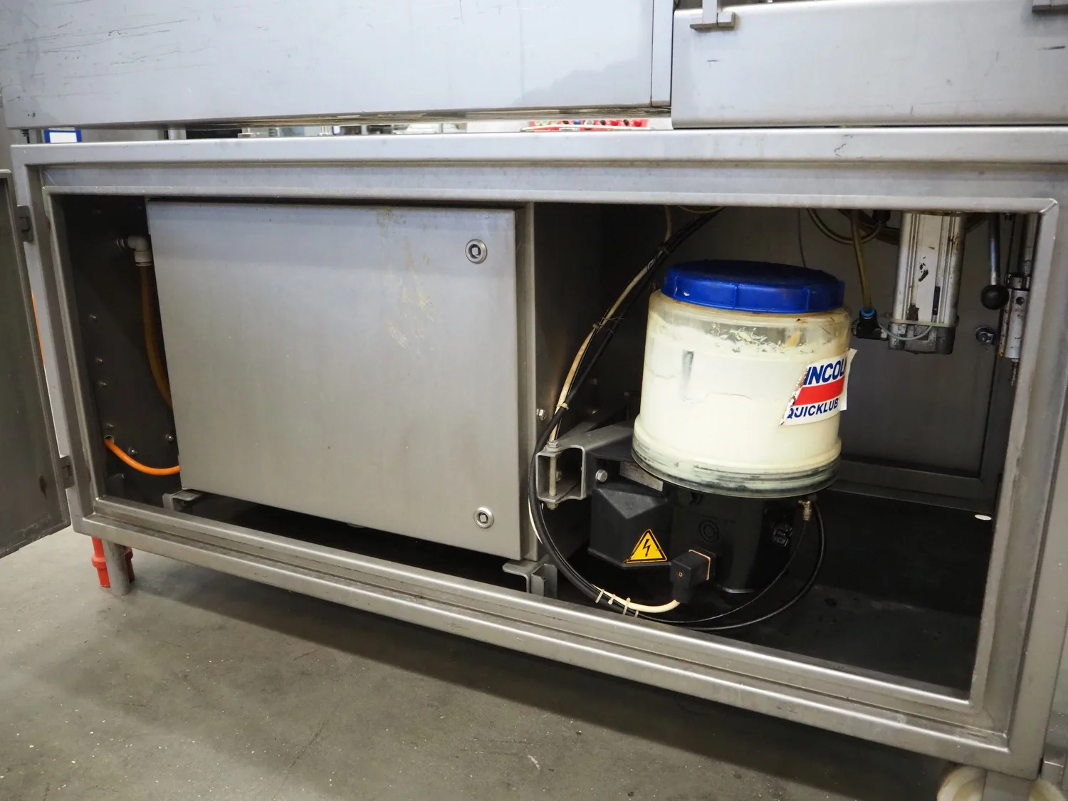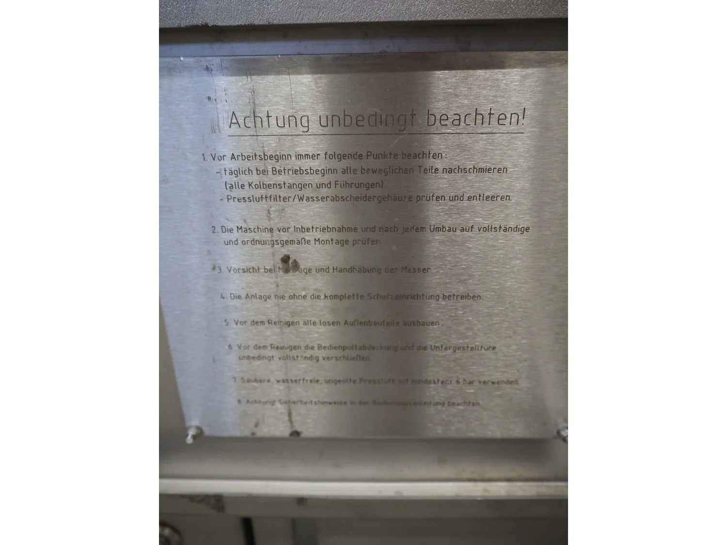 Marel portioning machine, type: Portio 4003S, serial number: 080S-0071, year of construction: 2006, 400 V, 3 Ph, 50/60 Hz, 1.2/2.2 A, weight: 500 kg, plastic belt, belt width: 250 mm, total dimensions: 2700 mm x 800 mm x 3000 mm.