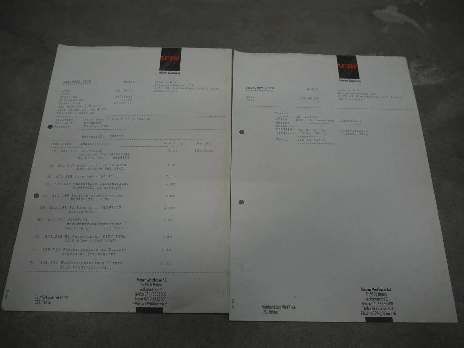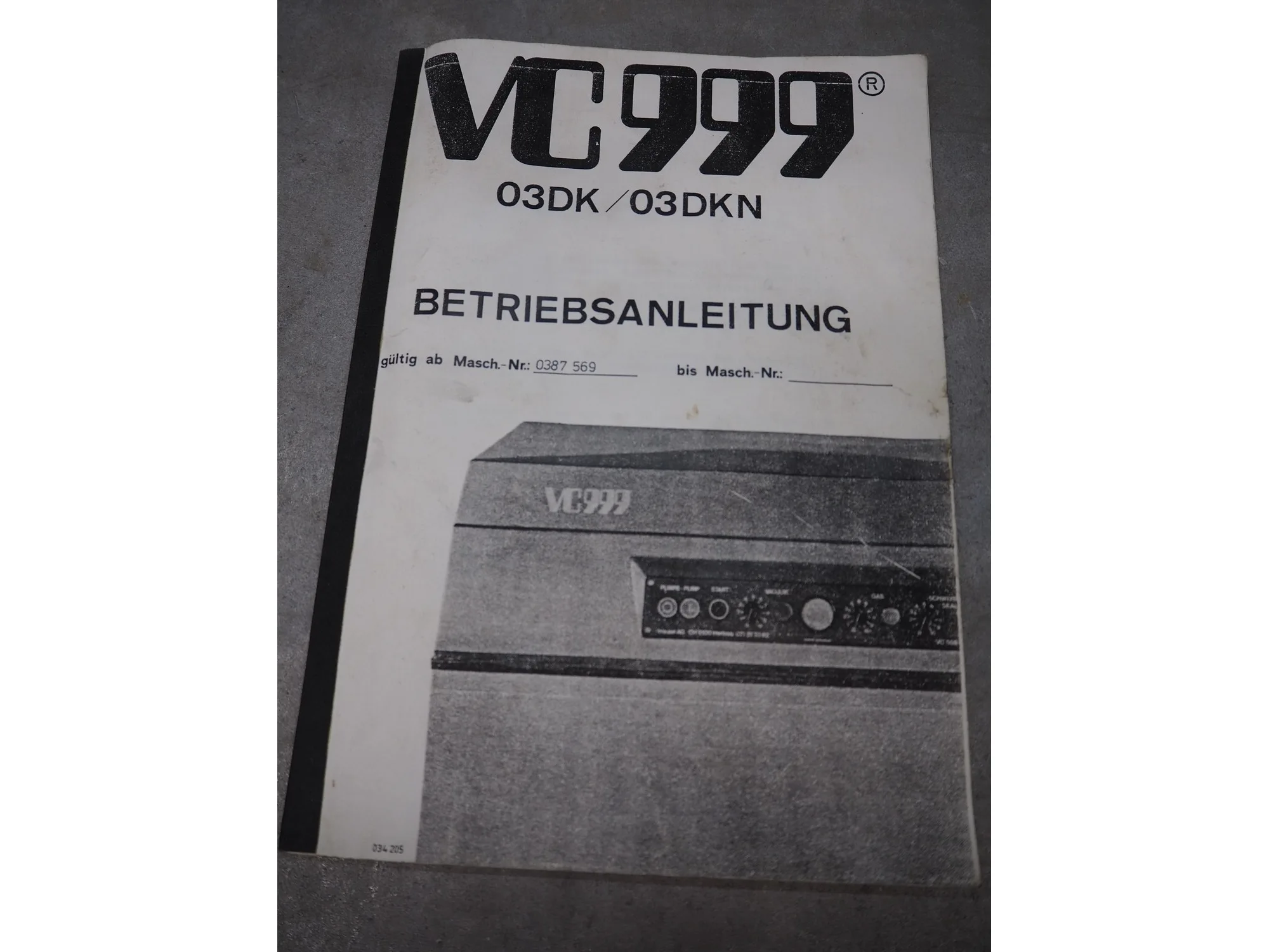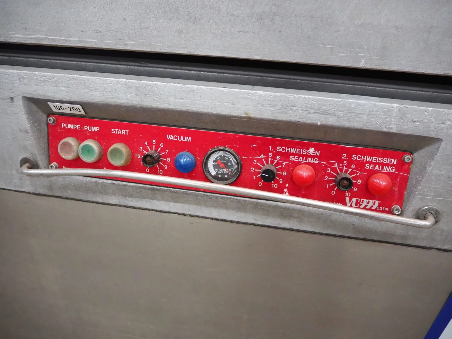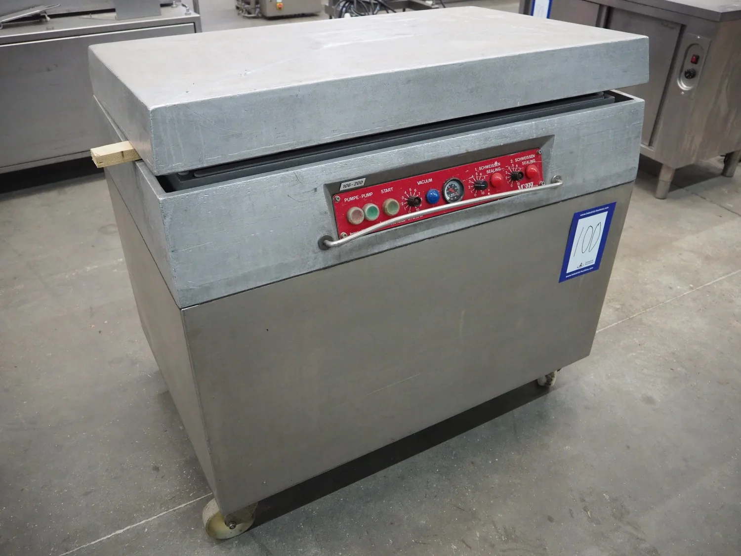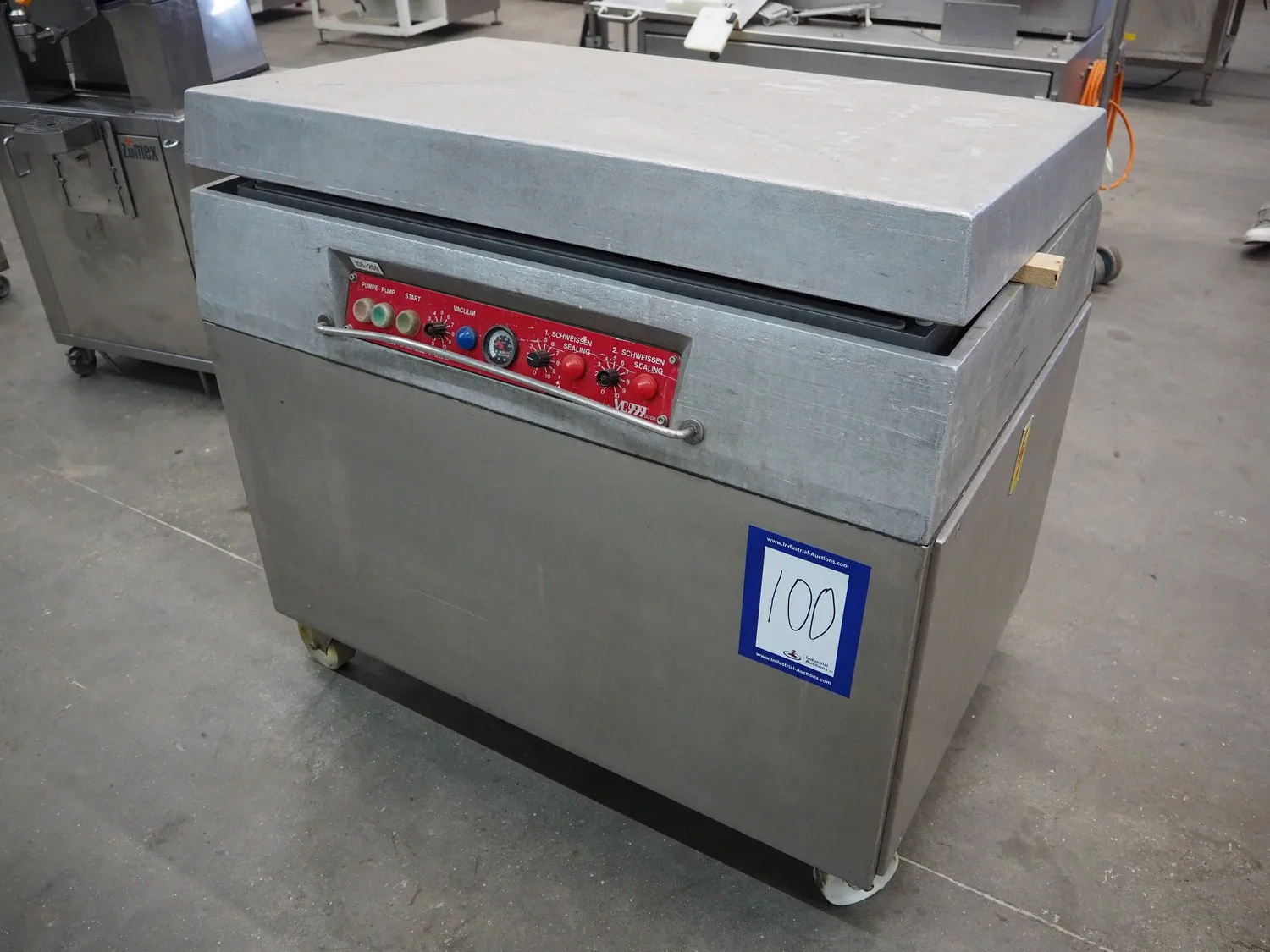 Inauen Maschinen AG mobile vacuum machine, type: VC999/03DK, machine number: 0384457, 380 V, 3 Ph, 50 Hz, 9 kW, dimensions chamber: 950 mm x 430 mm x 150 mm, seal length: 950 mm x (2x) 450 mm, total dimensions: 1150 mm x 800 mm x 1050 mm.