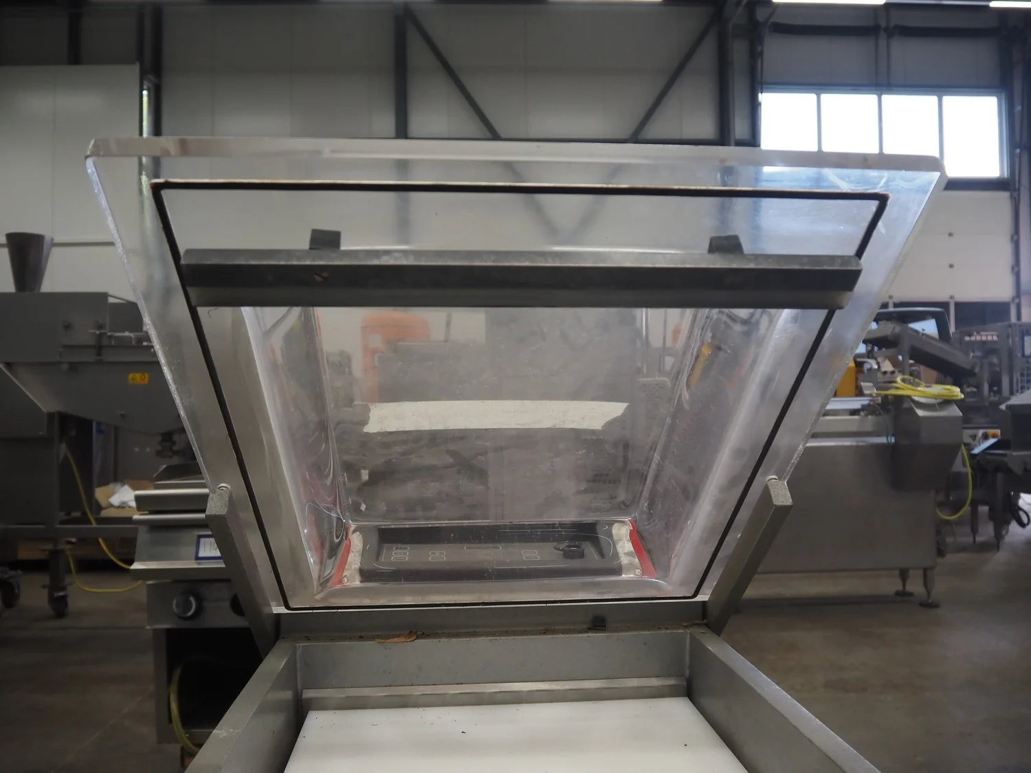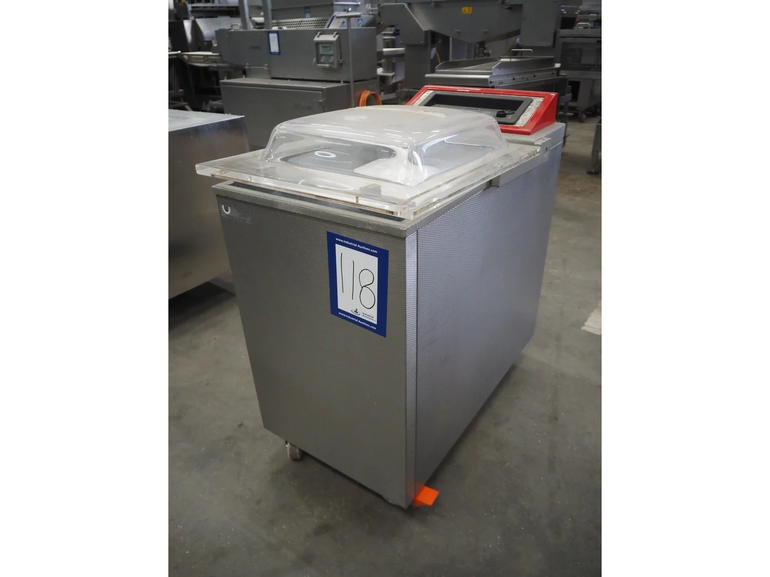 Vacuum machine with vacuum pump, seal length: 450 mm, chamber dimensions: 850 mm x 460 mm, total dimensions: 950 mm x 570 mm x 910 mm.