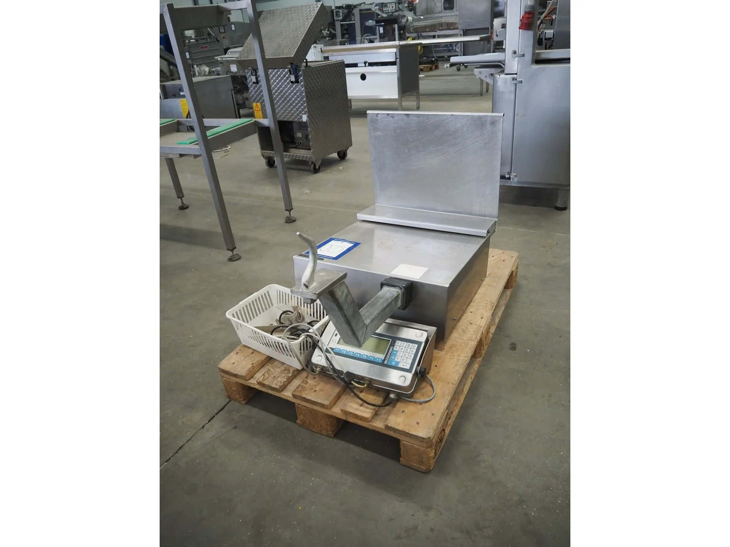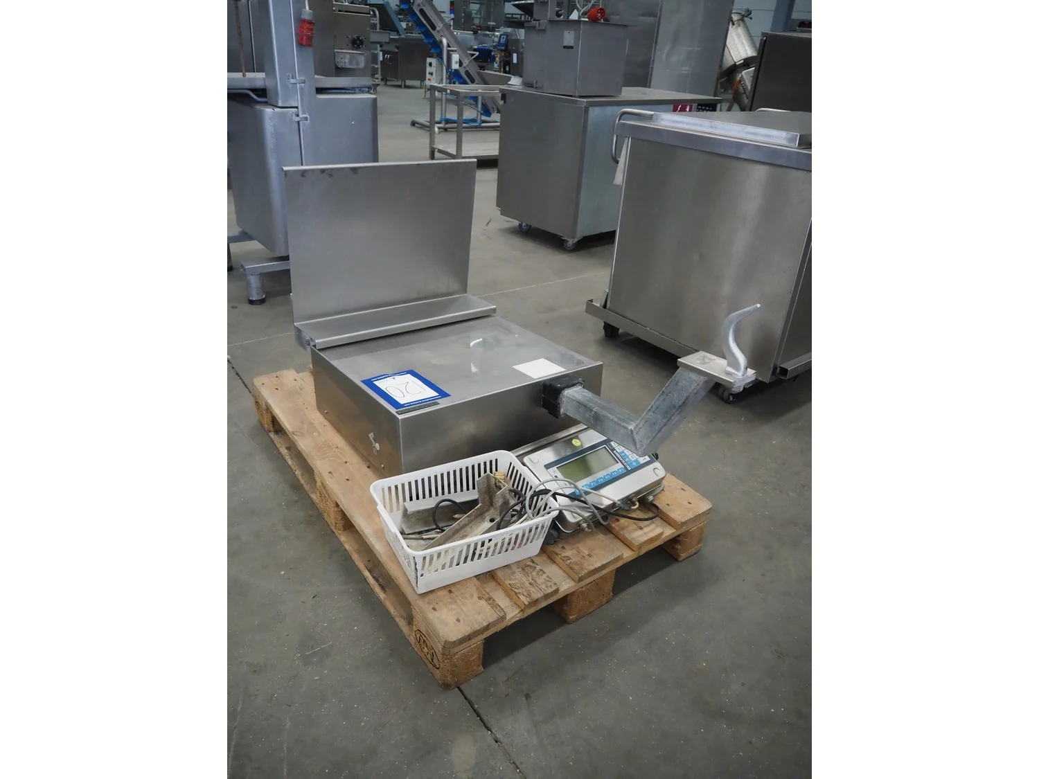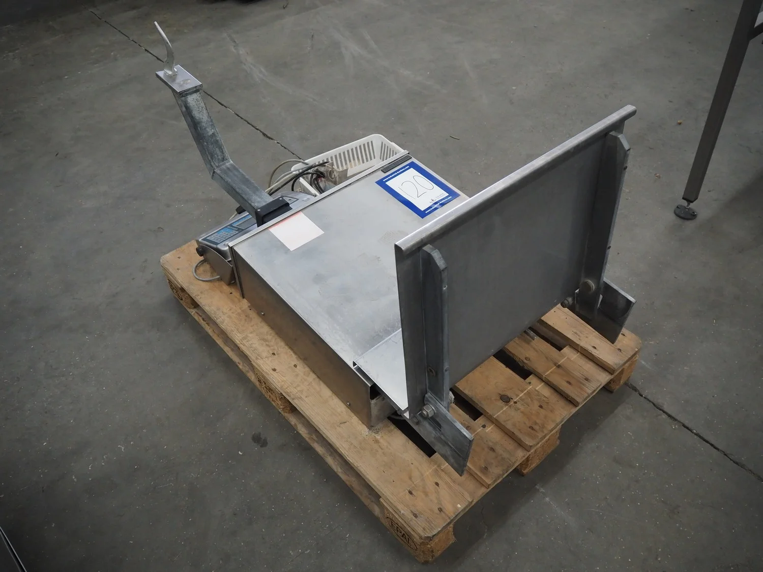 Bizerba hook weighing scale, type: ST, number: 11008533, 240 V, 50/60 Hz, 0.25 A, maximum weight: 150 kg, minimum weight: 1 kg, e= 0.05 kg, dimensions: 600 mm x 700 mm x 1300 mm.