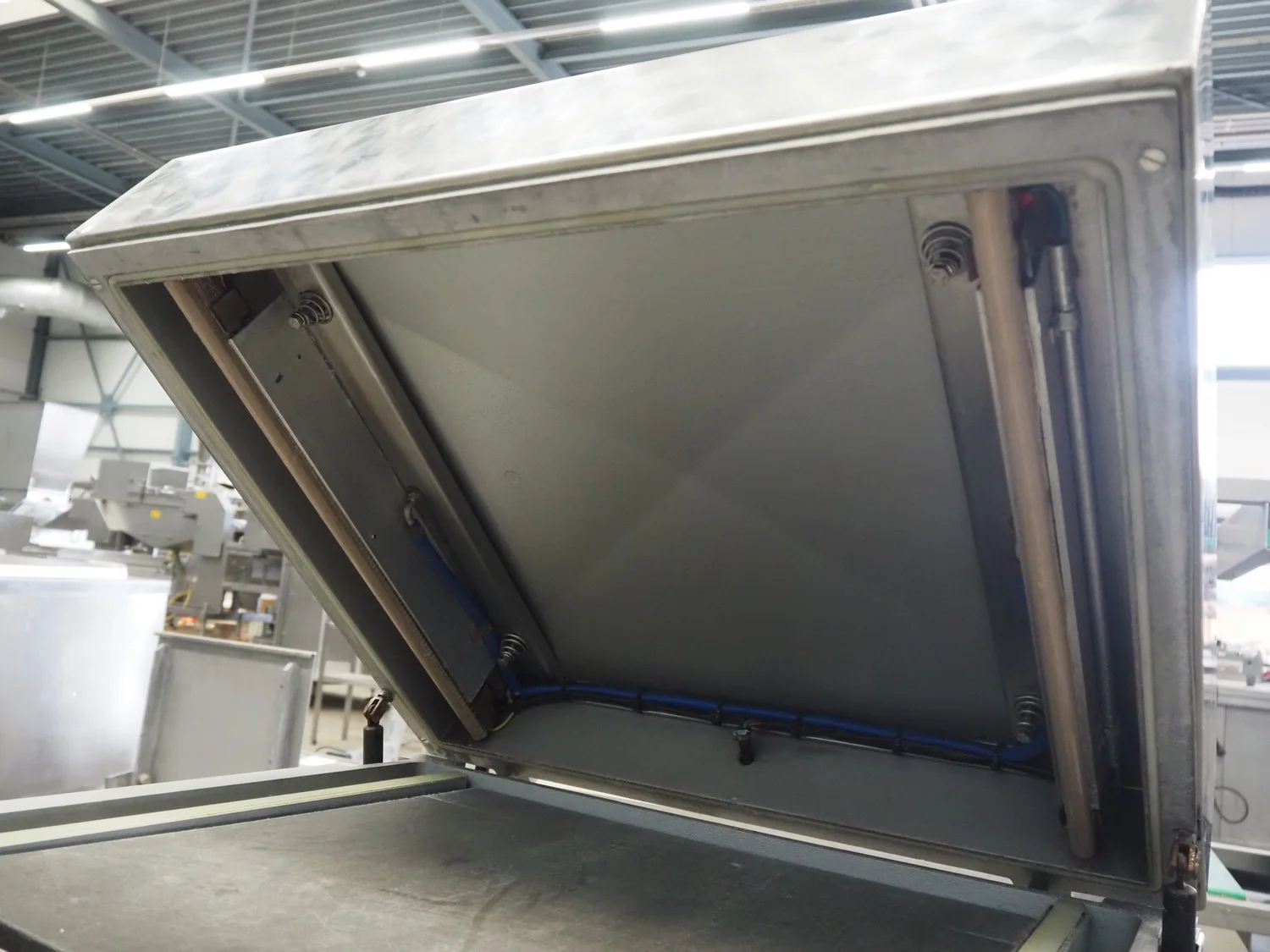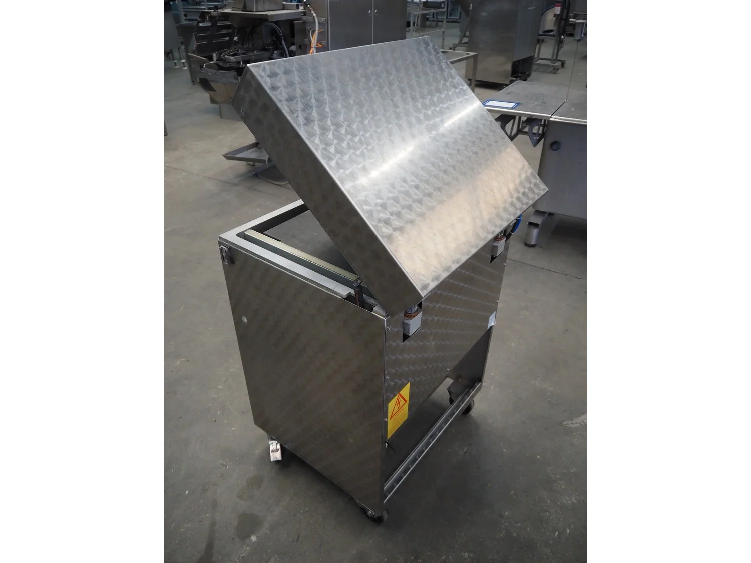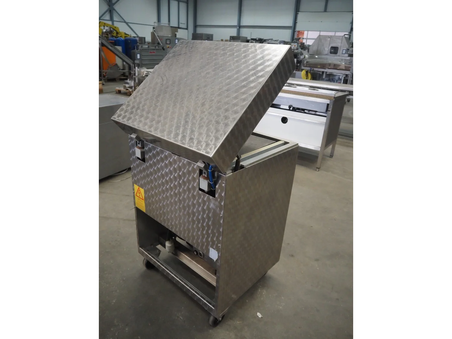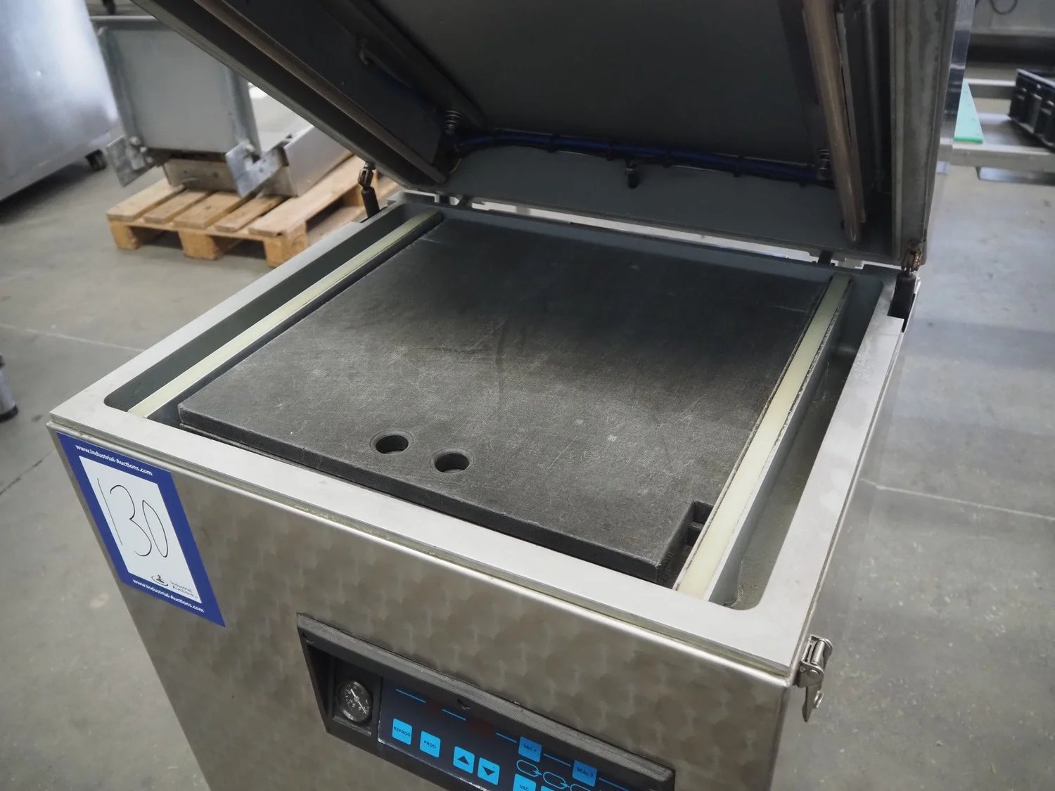 Henkovac mobile vacuum machine, seal length: (2x) 500 mm, dimensions chamber: 610 mm x 510 mm, built-in Busch vacuum pump, type: RA 0063, capacity: 63 m³ per hour, total dimensions: 680 mm x 600 mm x 1070 mm.