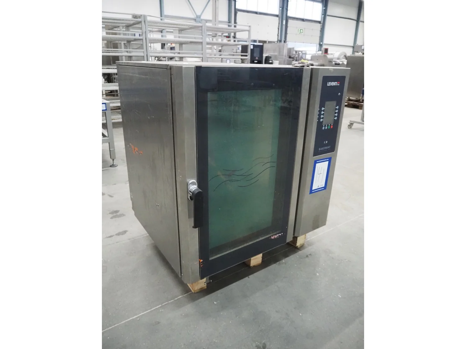 Leventi oven, type: BM MM Q3, serial number: 08050089, year of construction: 2008, 380-415 V, 3 Ph, 50/60 Hz, 18.2 kW, 8 floors, floor dimensions: 600 mm x 400 mm, total dimensions: 970 mm x 850 mm x 1100 mm.