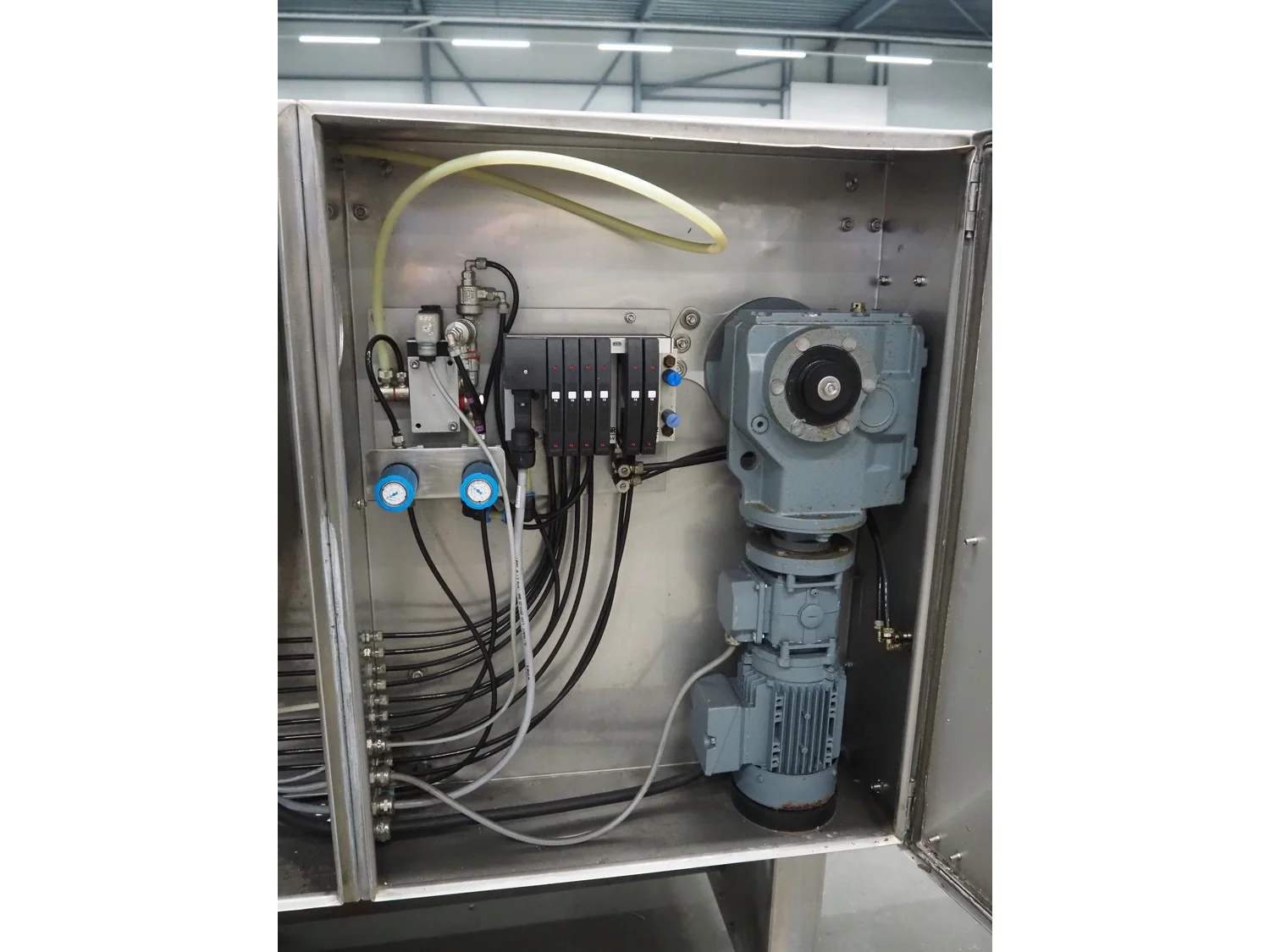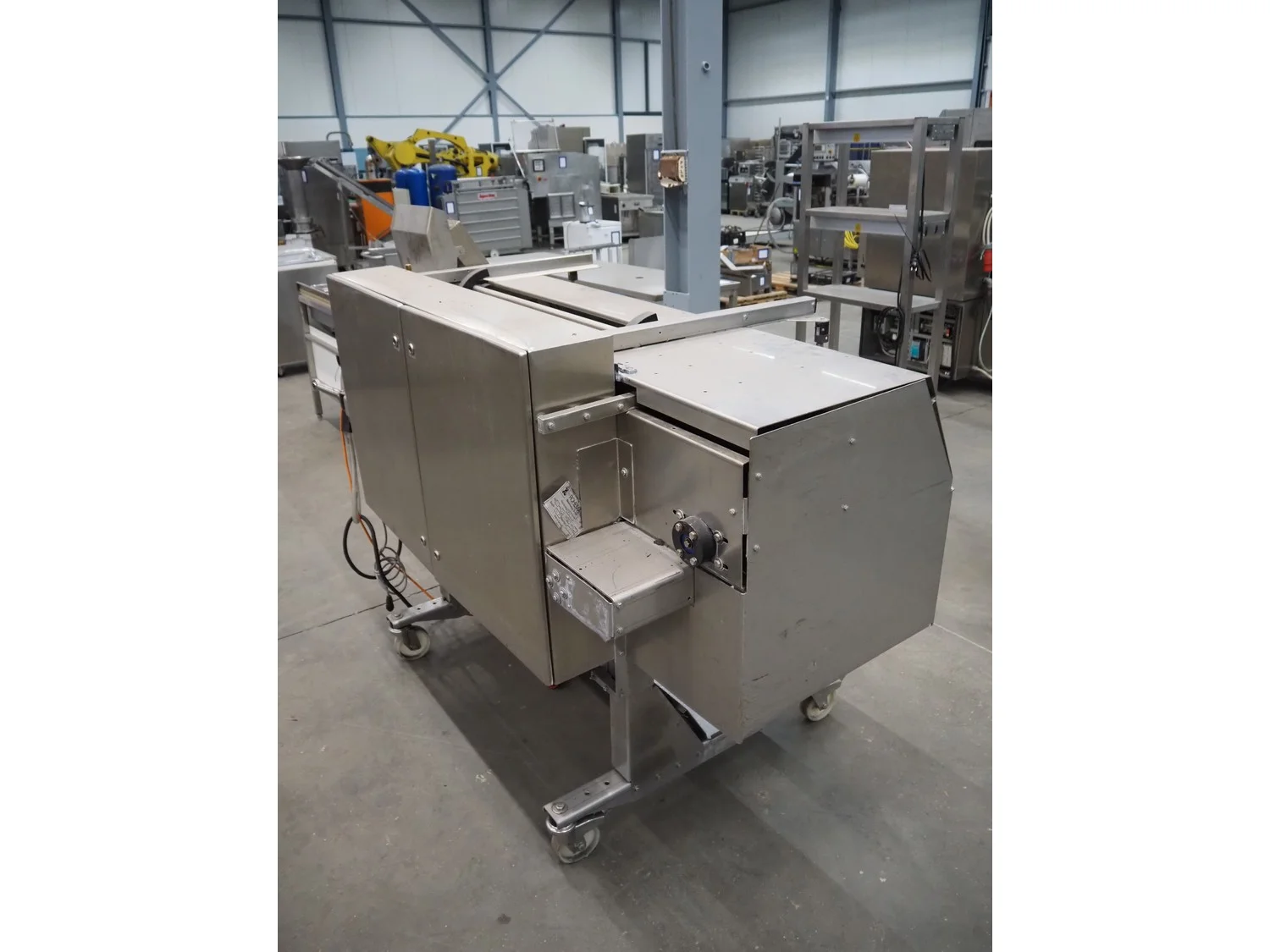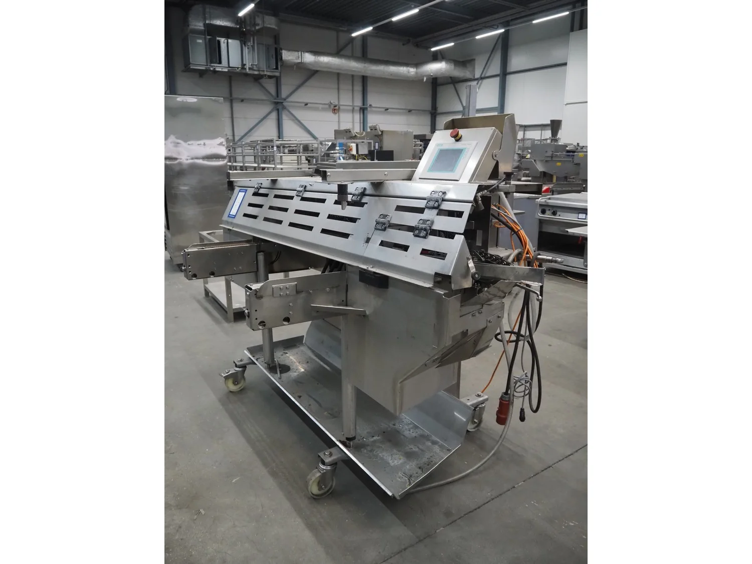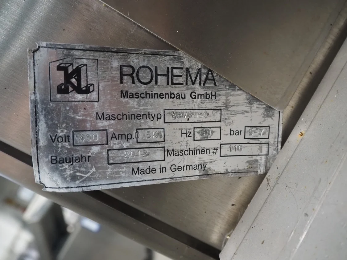 Rohema Maschinenbau GmbH mobile hanging line for sausages, type: AHV8000, number: 110, year of construction: 2012, 400 V, 50 Hz, 0.5 kW, 5-7 bar, dimensions: 2200 mm x 1200 mm x 1600 mm.