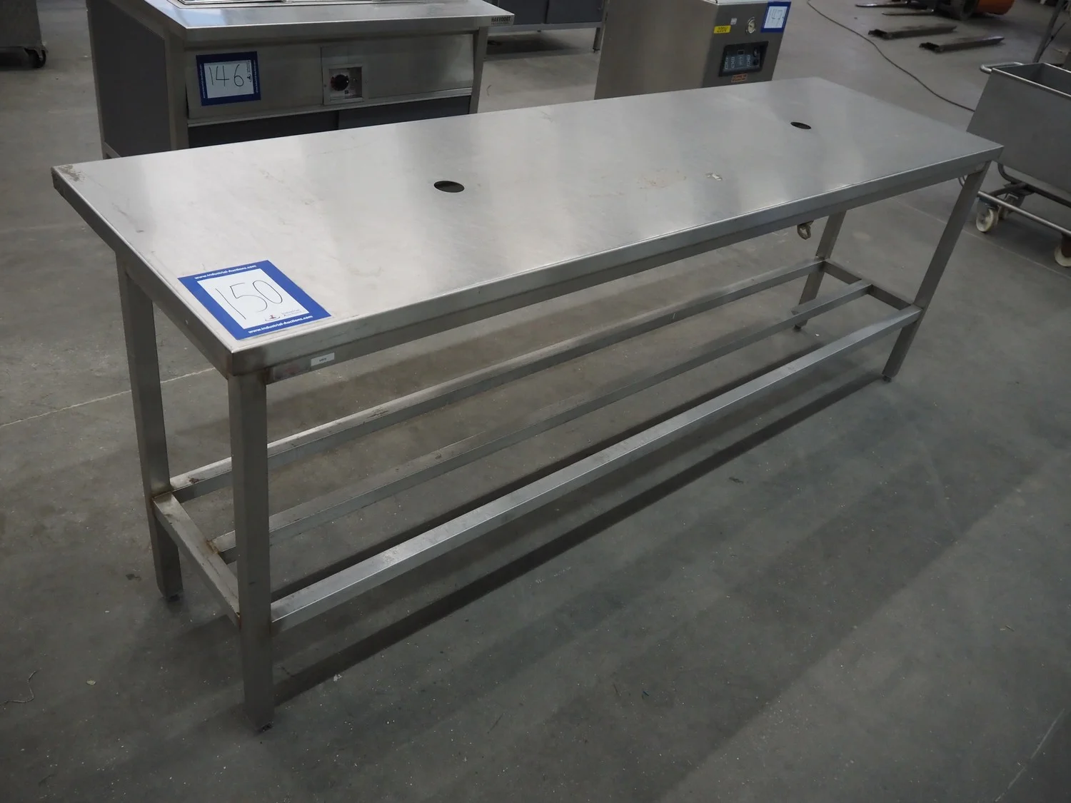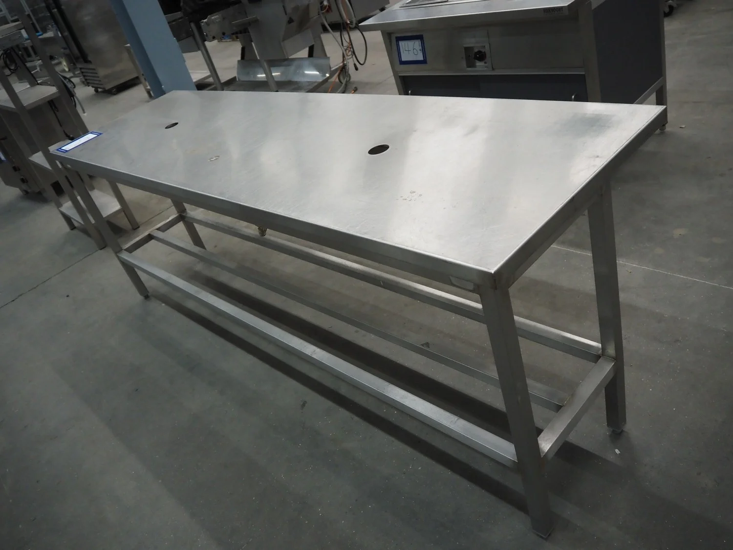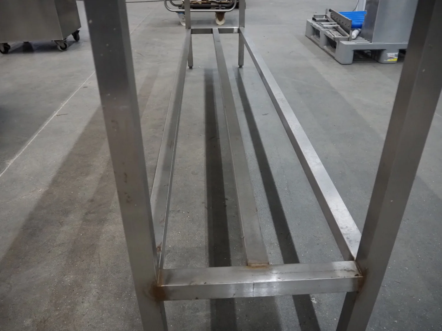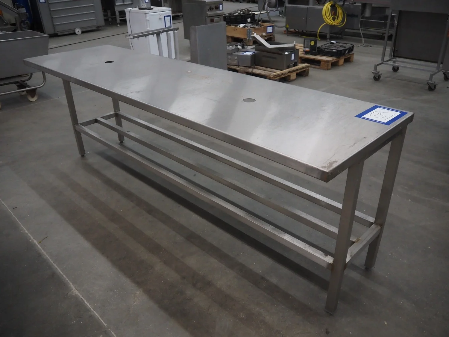 S/s table, dimensions: 2500 mm x 700 mm x 890 mm.