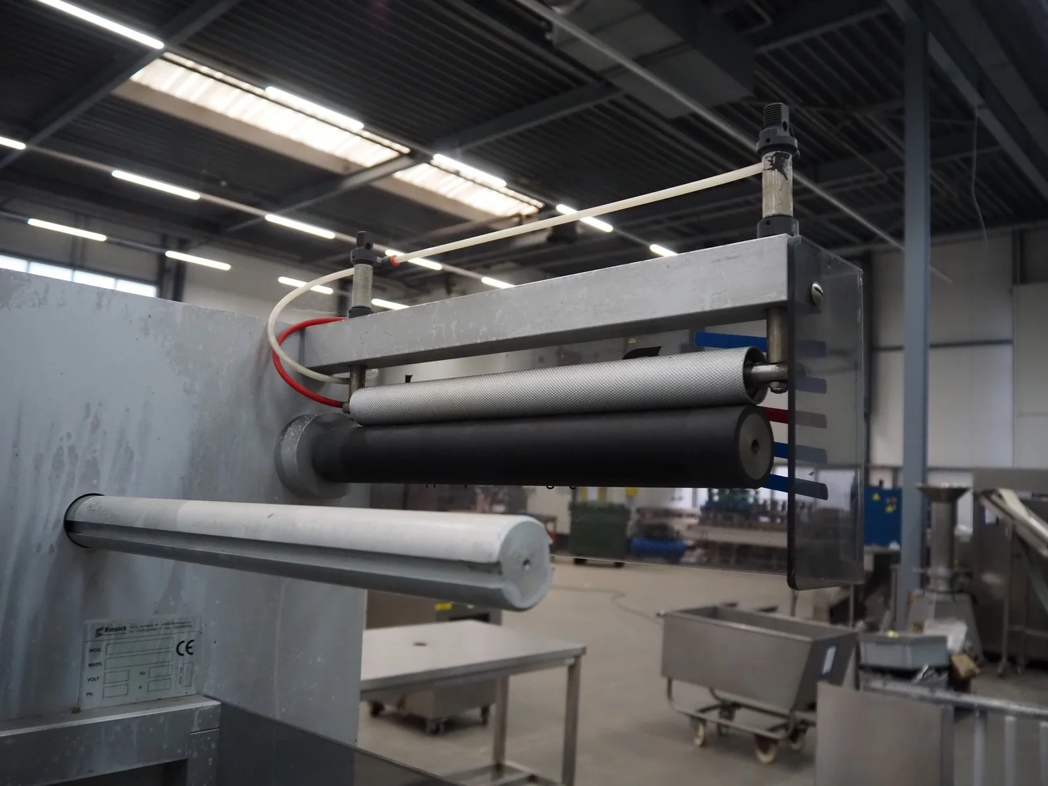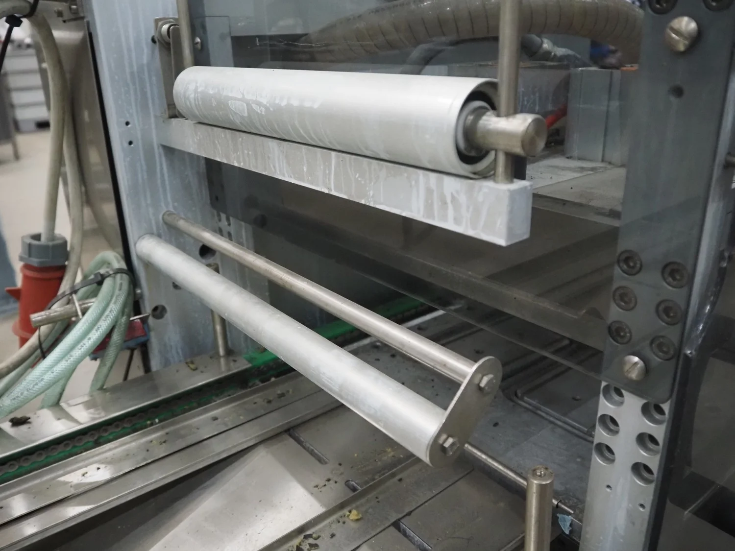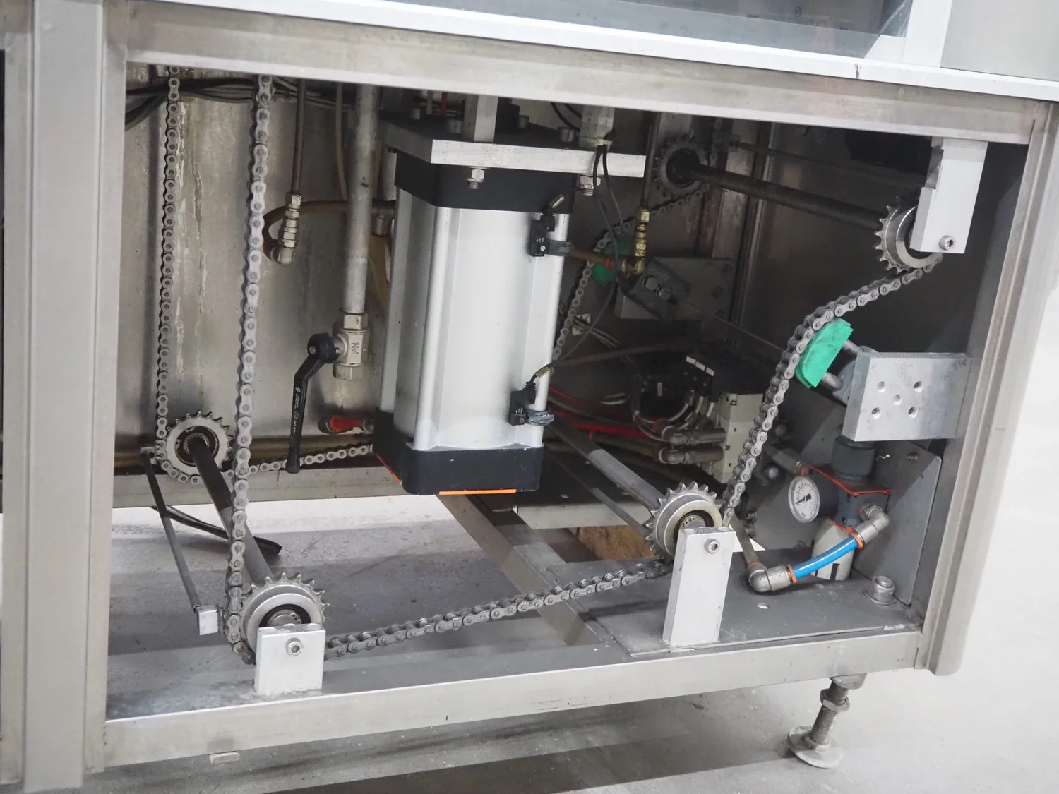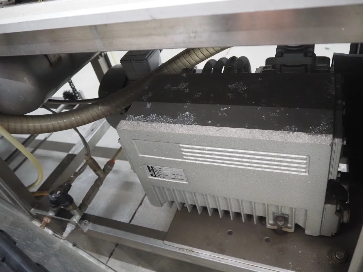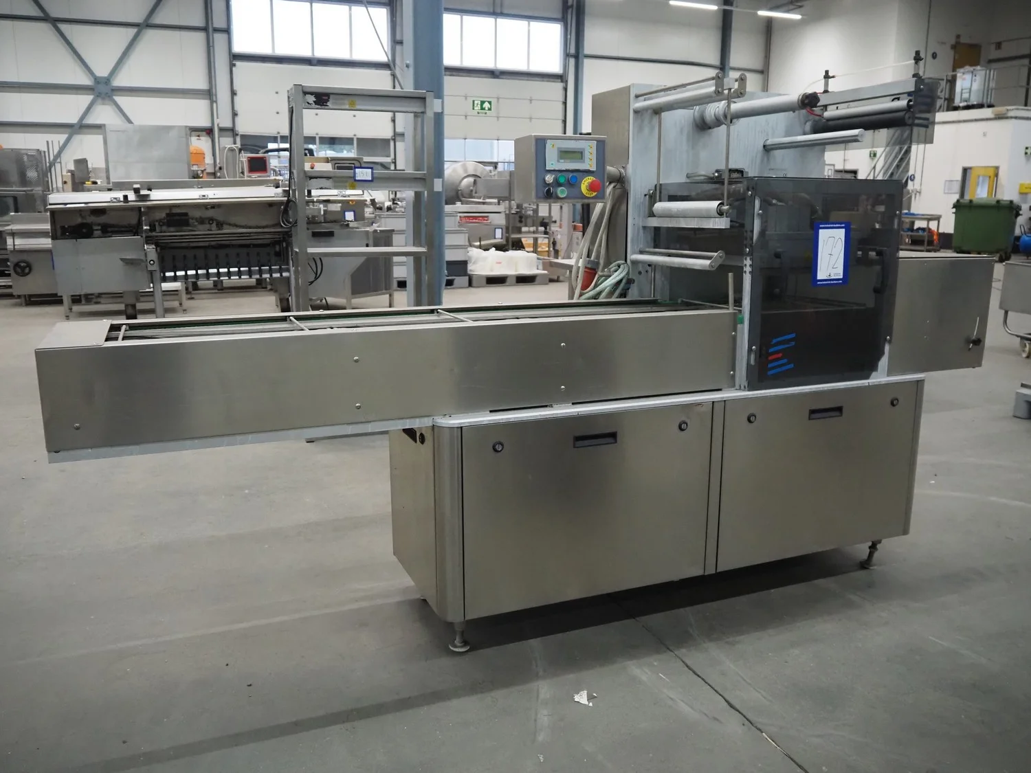 Reepack traysealer, model: REEFLEX, serial number: 0401005, year of construction: 2001, 400 V, 3 Ph, 50 Hz, max 21 A, Busch vacuum pump, type: RA 0100 E 501, capacity: 100 m³ per hour, dye: (2x) 200 mm x 135 mm, total dimensions: 2950 mm x 900 mm x 1750 mm. 1 leg broken.