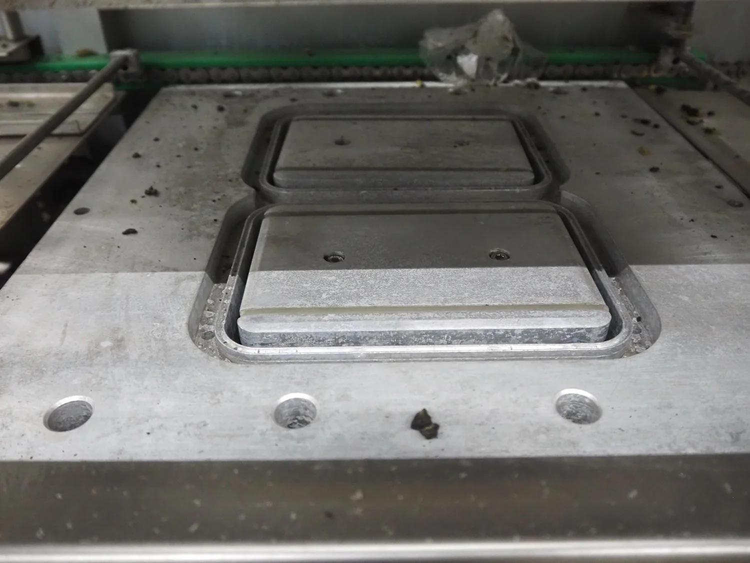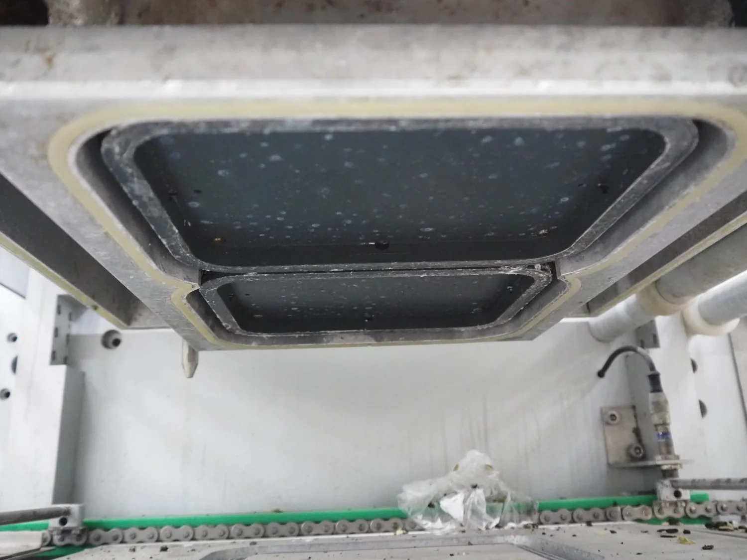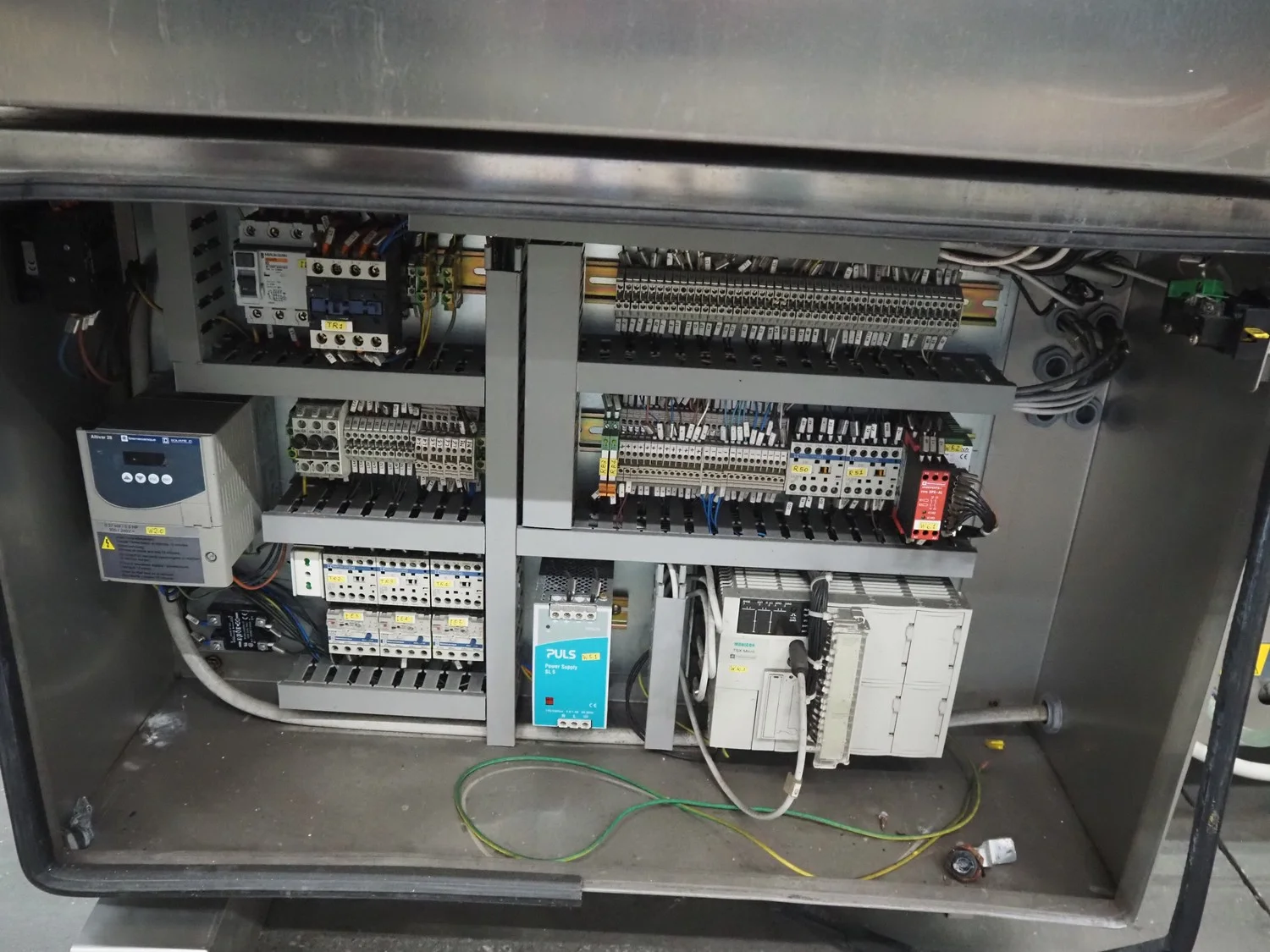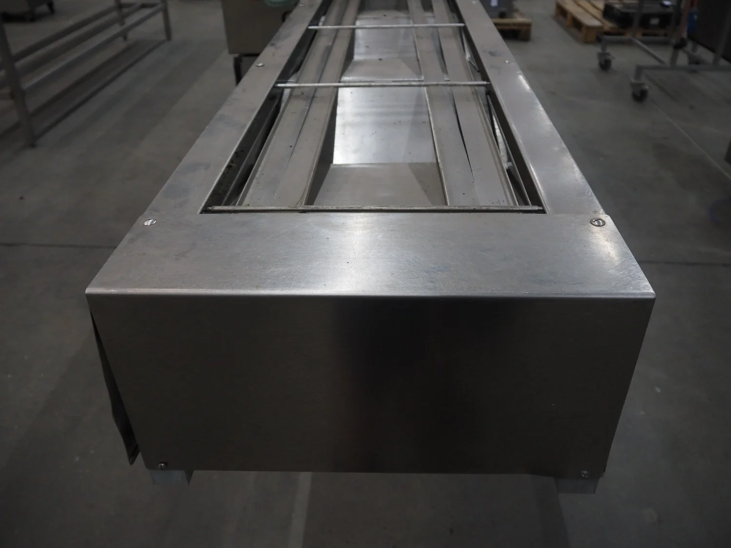 Reepack traysealer, model: REEFLEX, serial number: 0401005, year of construction: 2001, 400 V, 3 Ph, 50 Hz, max 21 A, Busch vacuum pump, type: RA 0100 E 501, capacity: 100 m³ per hour, dye: (2x) 200 mm x 135 mm, total dimensions: 2950 mm x 900 mm x 1750 mm. 1 leg broken.