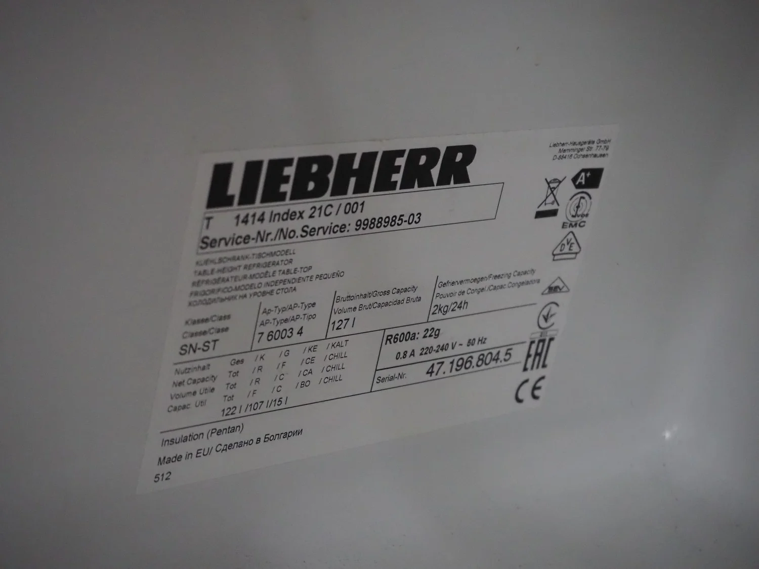 Liebherr refrigerator, serial number: 47.196.804.5, refrigerant: R600a, 22 gram, dimensions: 500 mm x 600 mm x 850 mm.
