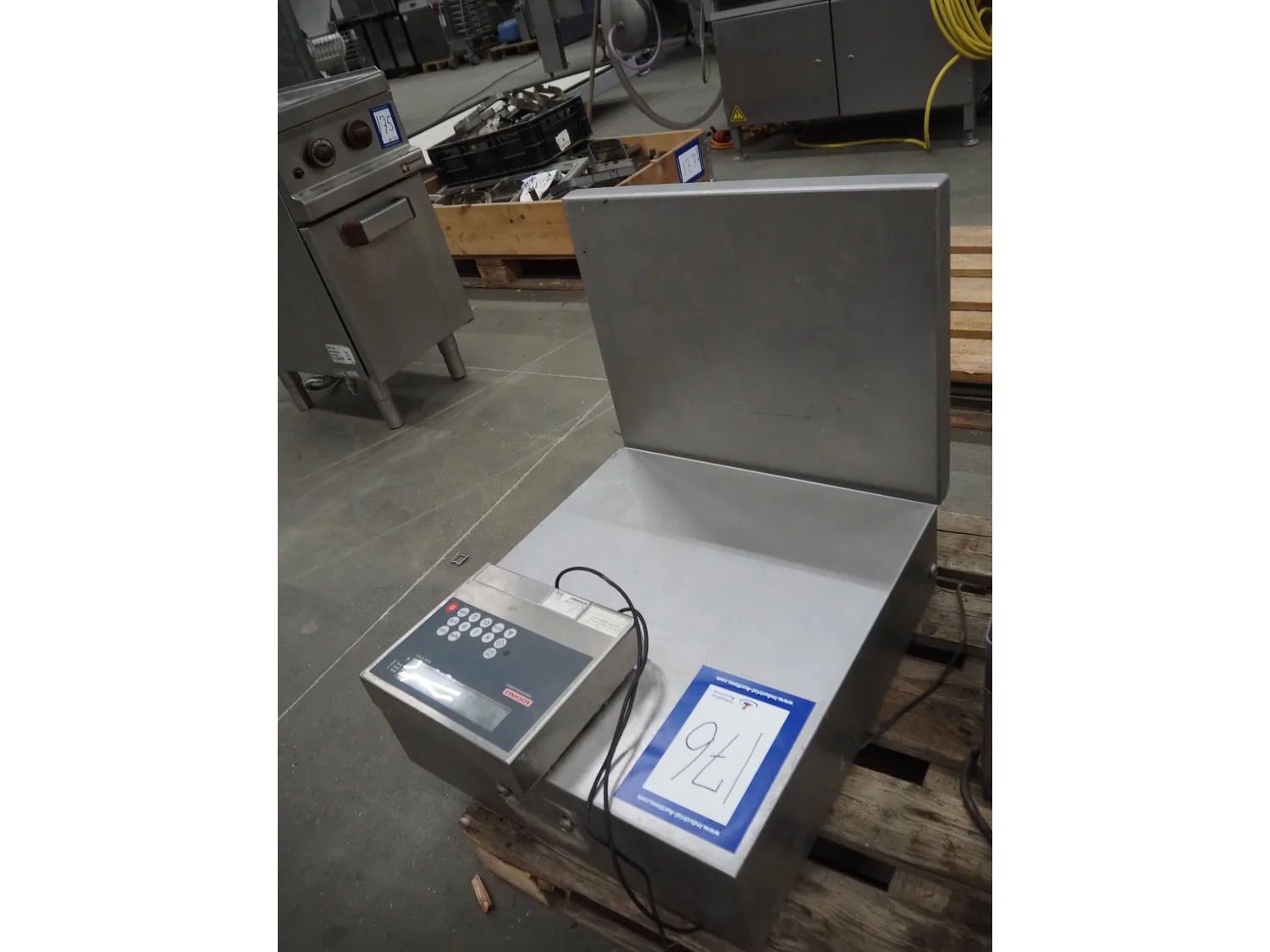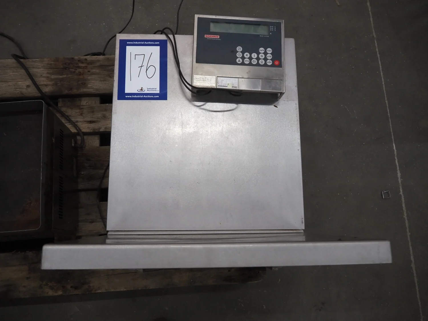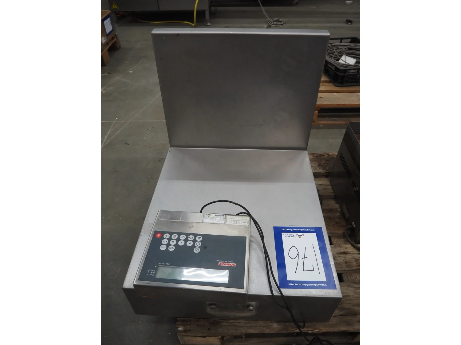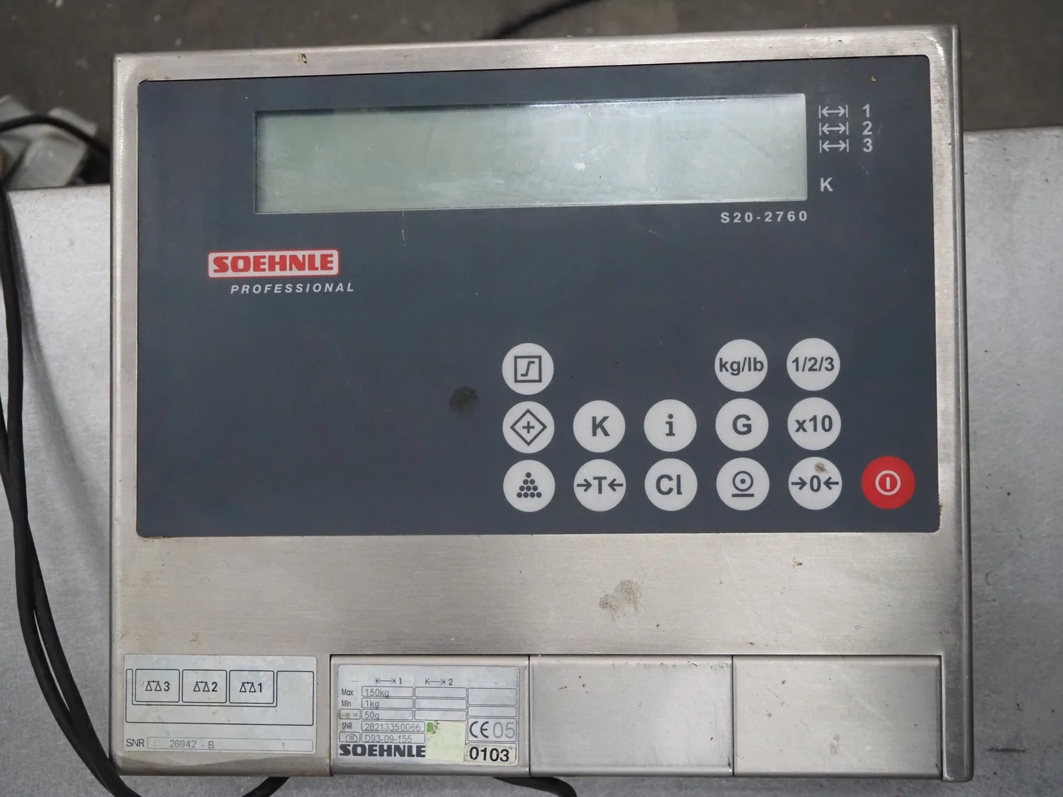 Soehnle hook weighing scale with indicator, serial number: 28213350066, maximum weight: 150 kg, minimum weight: 1 kg, e= 50 gram, dimensions: 570 mm x 300 mm x 700 mm.