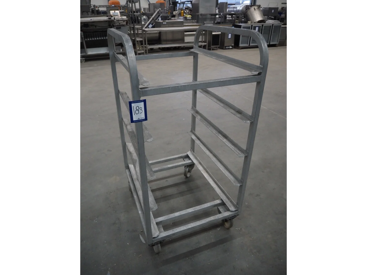 Aluminium trolley, 5 floors, dimensions each floor: 820 mm x 810 mm, total dimensions: 870 mm x 680 mm x 1350 mm.