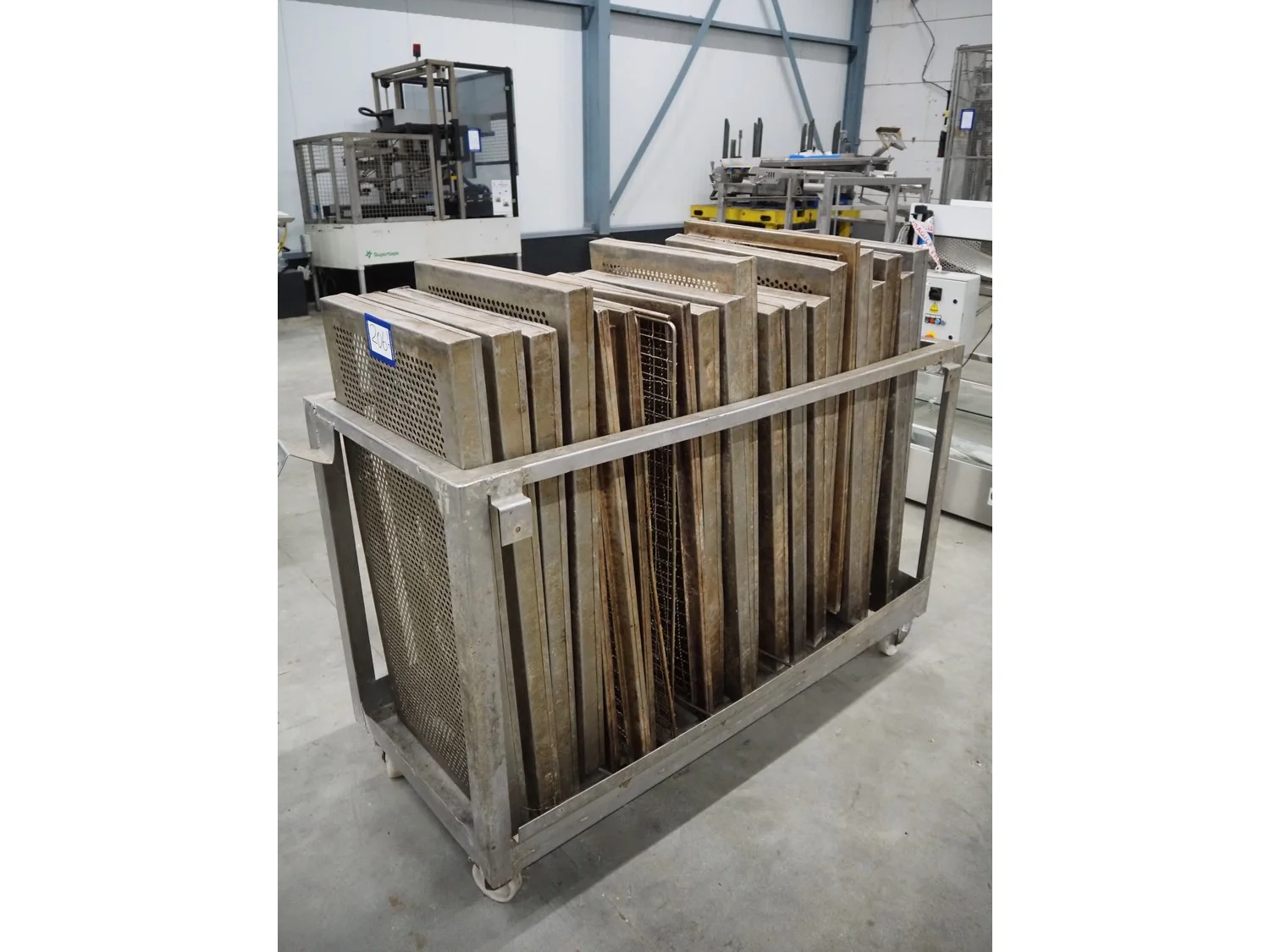 S/s trolley with s/s plates, plate dimensions: 500 mm x 1000 mm, dimensions trolley: 1600 mm x 650 mm x 1150 mm.