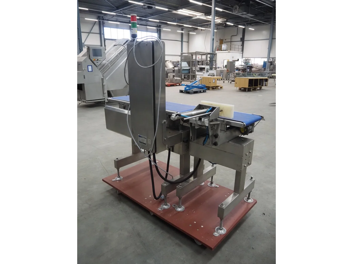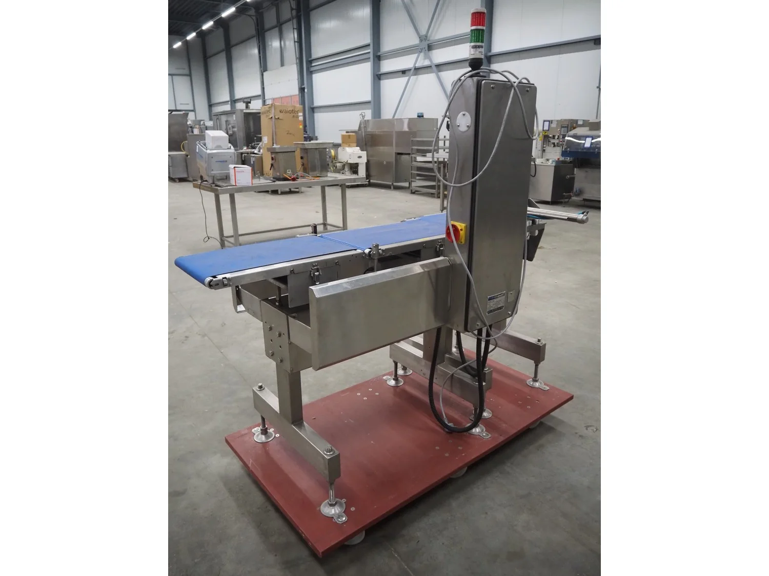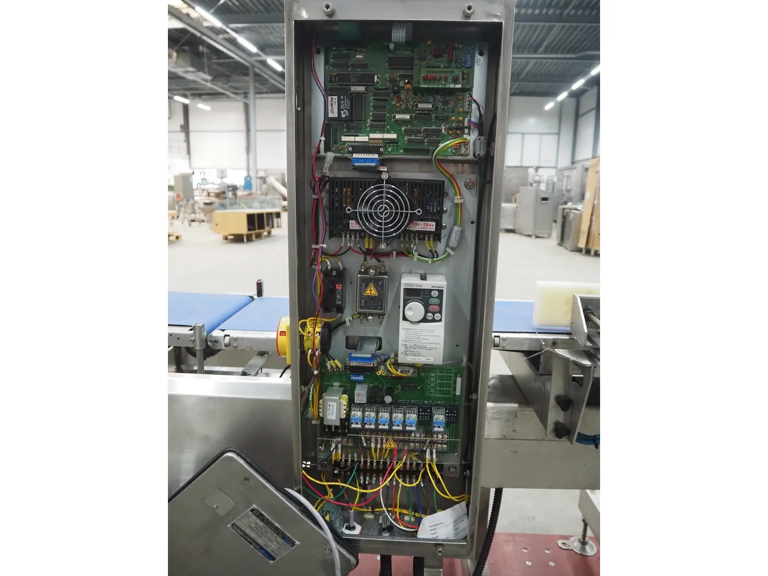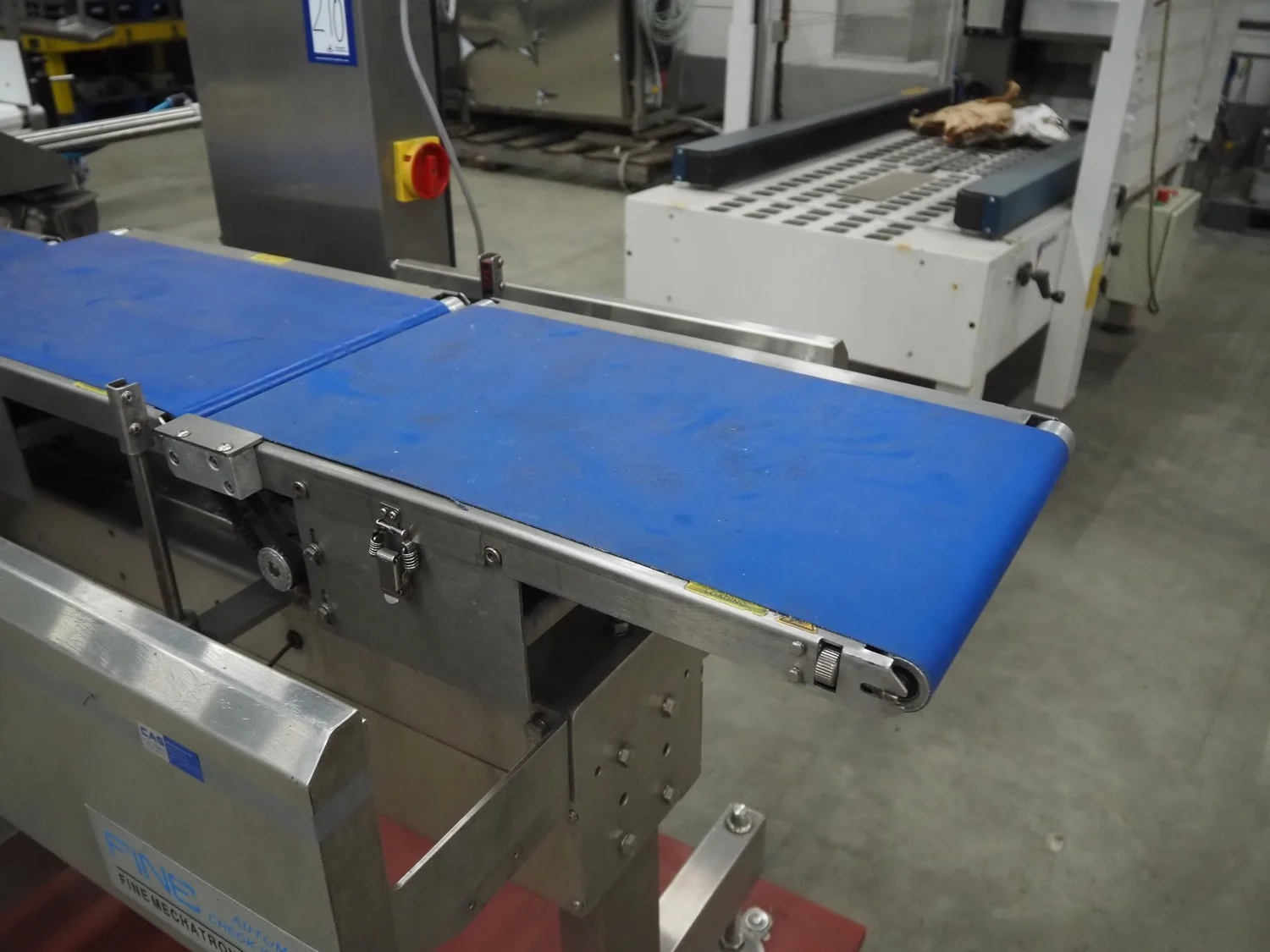 Fine Interkorea checkweigher with rejecter, model: FAC-5500 W335 535, serial number: E065031, year of construction: 2006/06, weight range: 1-500 gram, plastic belt, belt width: 300 mm, total dimensions: 1670 mm x 900 mm x 1630 mm.