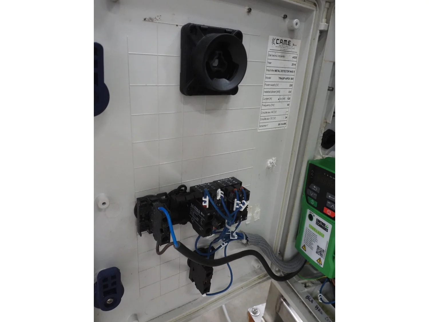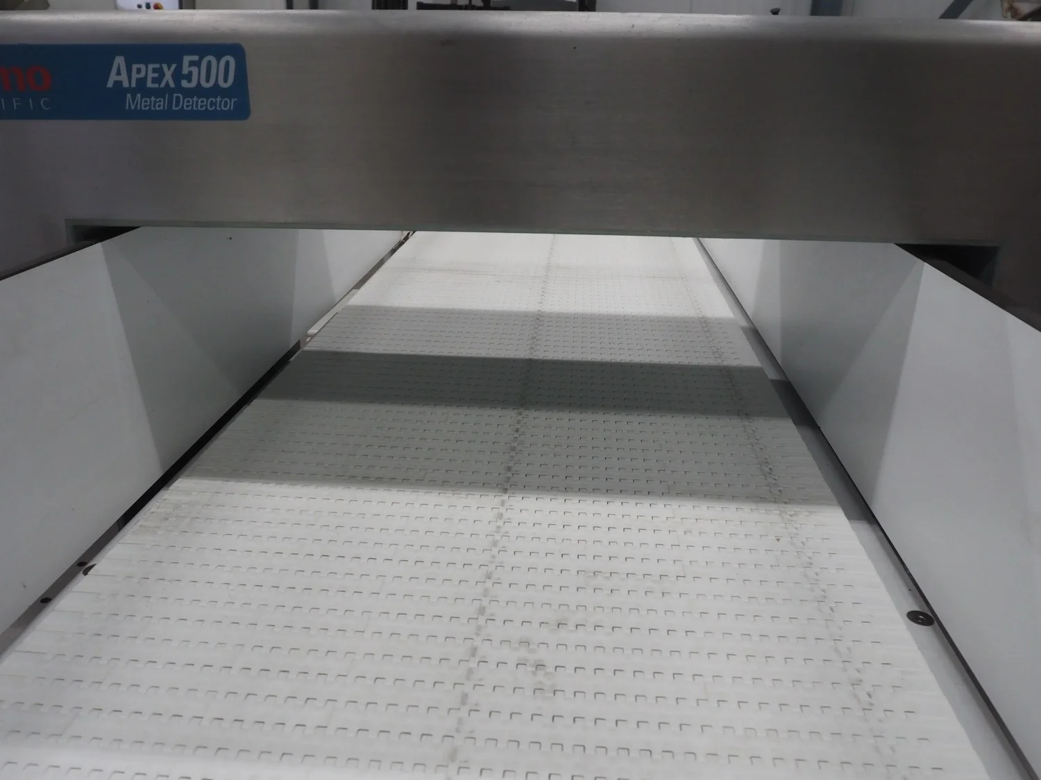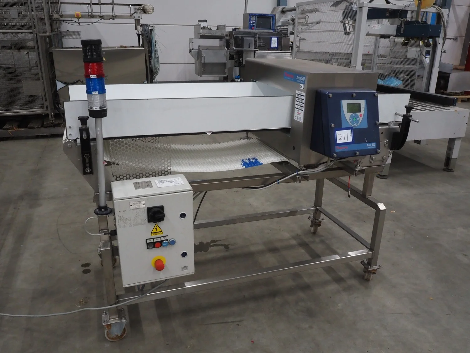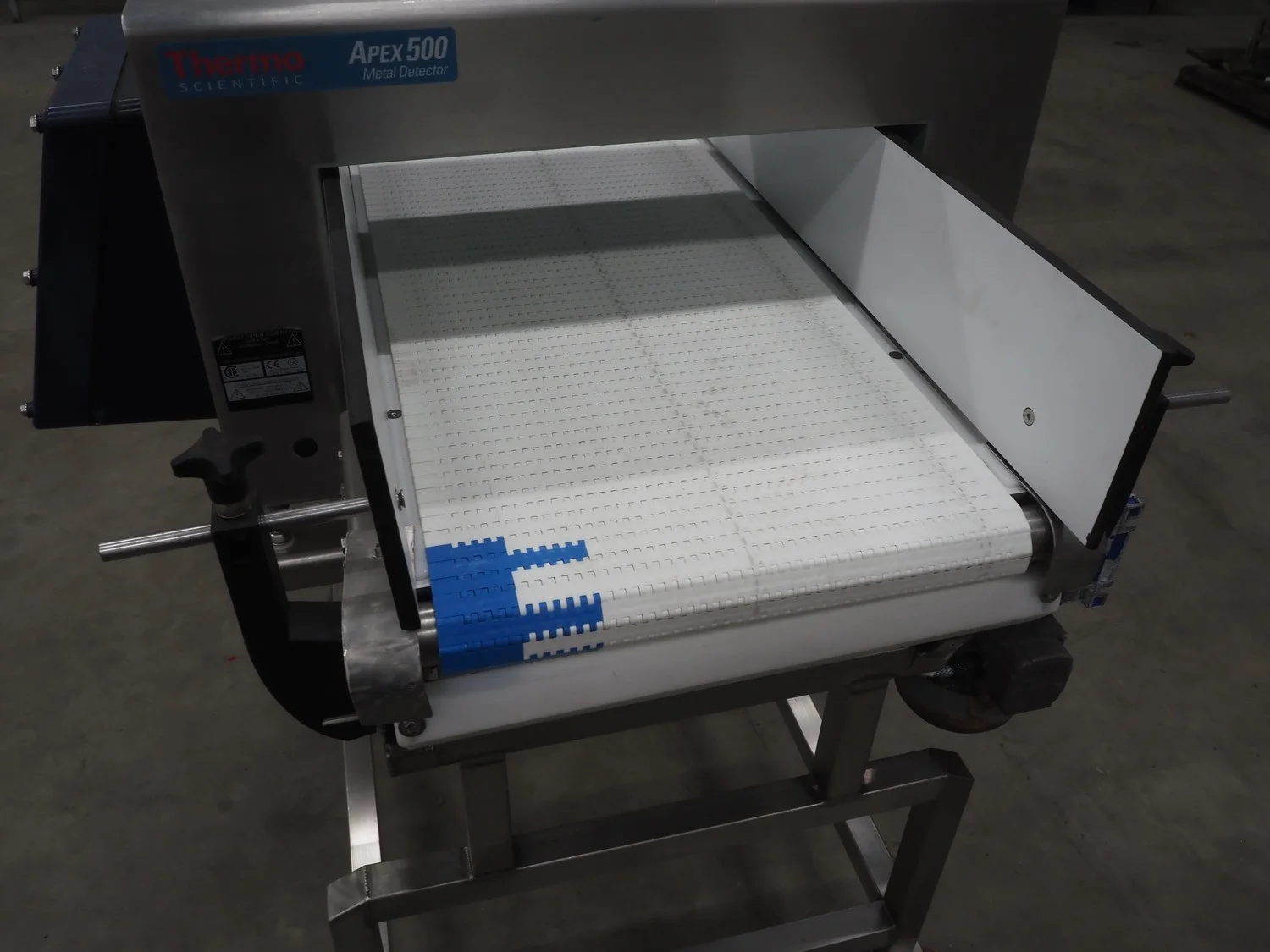 Thermo Fisher Scientific mobile metal detector, type: Apex 500, 120/230 V, 50/60 Hz, 0.4 A, plastic belt, belt width: 400 mm, clearance: 500 mm x 200 mm, 1750 mm x 900 mm x 1230 mm.