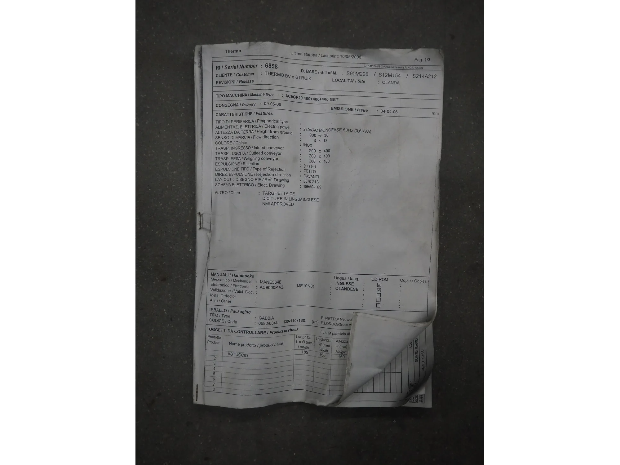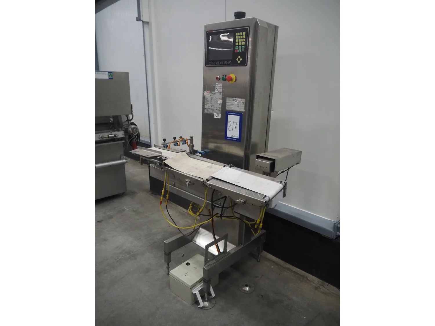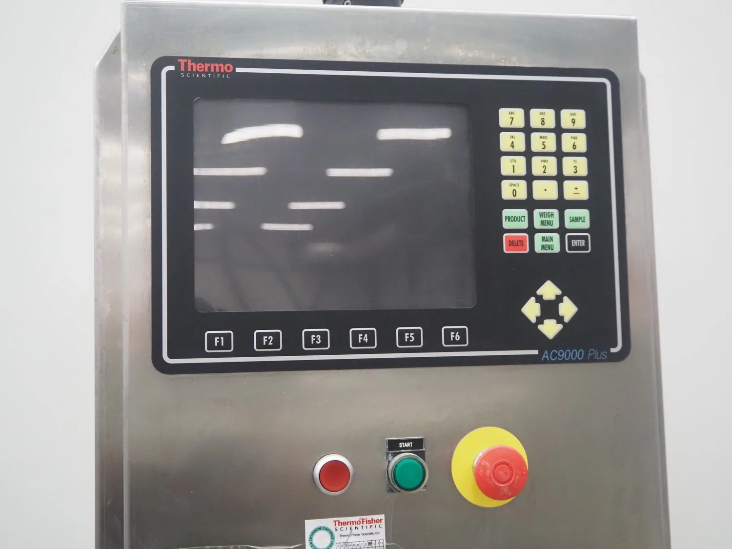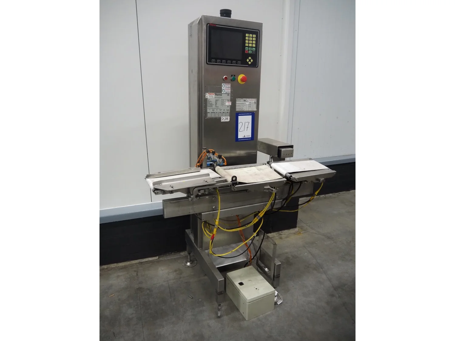 Thermo Electron Corporation checkweigher with rejector, model: AC9000plus, serial number: 6858, year of construction: 2006, 230 V, 50 Hz, 0.6 kVA, weighing range: 35/1500 gram, e= 0,5 gram, d= 0.5 gram, T= 1500 gram, plastic belt, belt width: 150 mm, 190 mm, total dimensions: 1700 mm x 750 mm x 1950 mm.