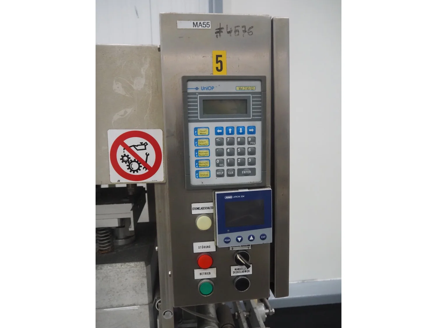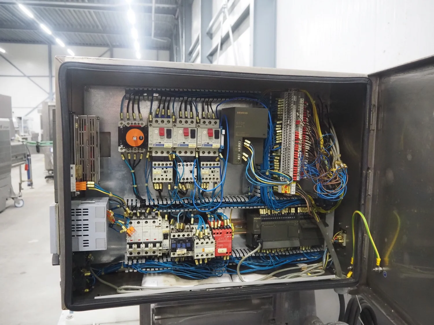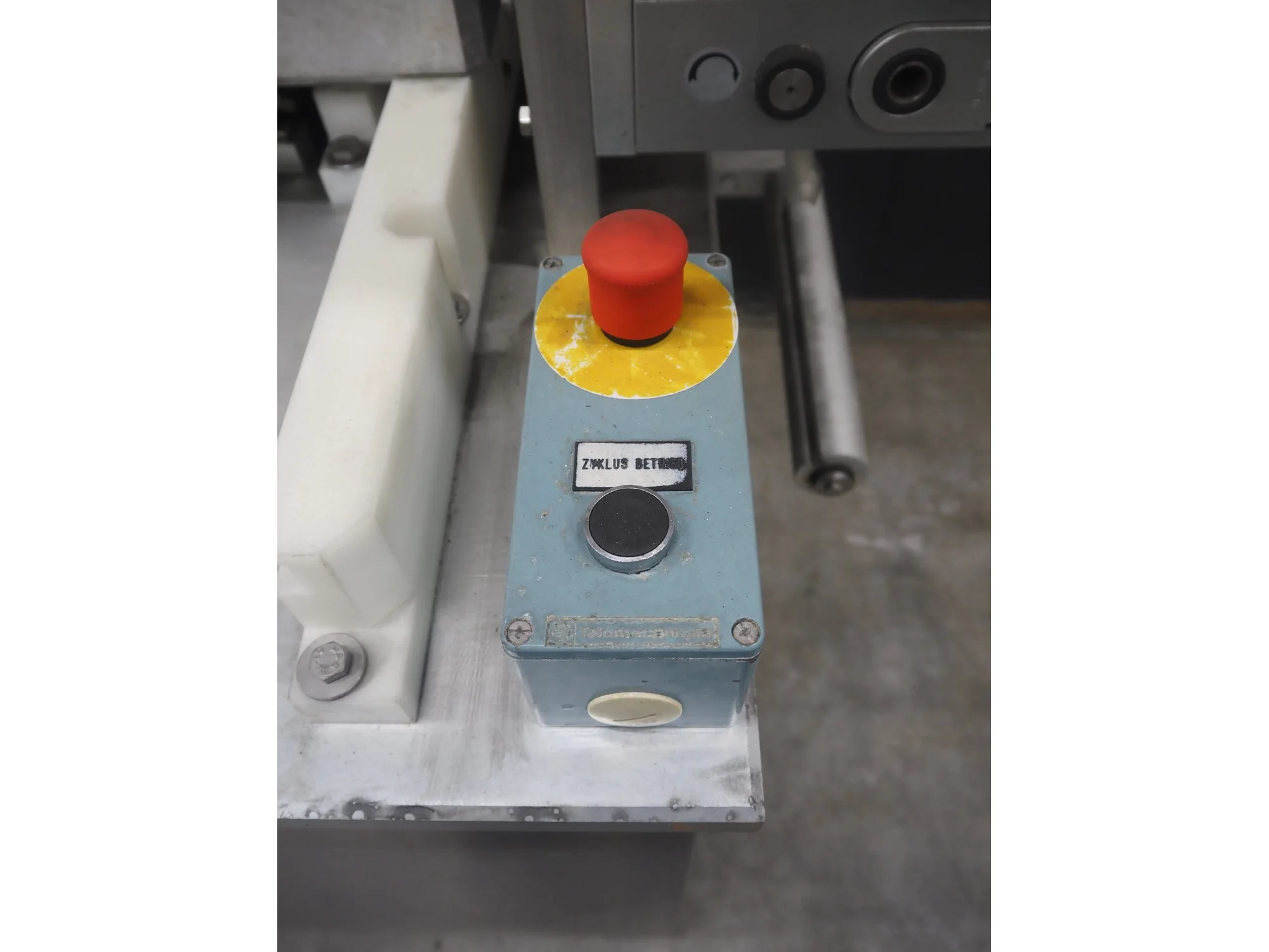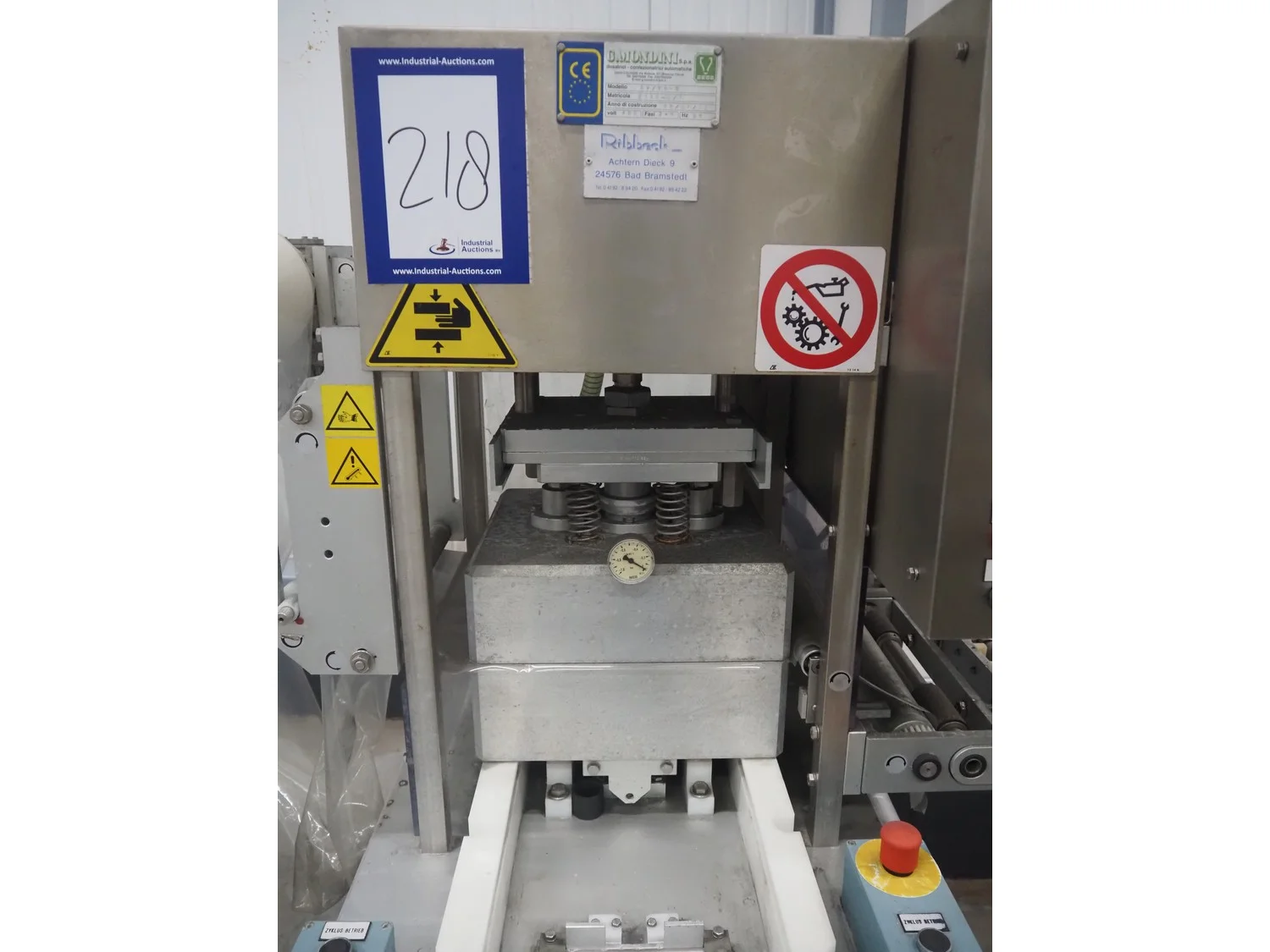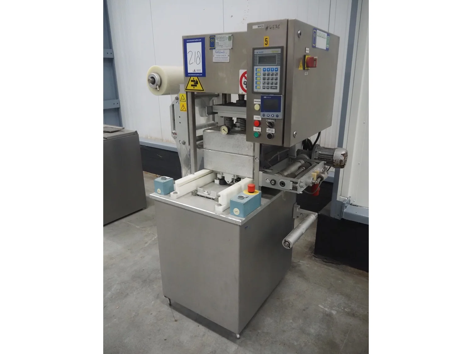 G. Mondini S.p.a. traysealer, model: CV/VG-S, serial number: 2140-02/1, year of construction: 08/08/02, 400 V, 3 Ph, 50 Hz, dye: 270 mm x 270 mm, film width: 335 mm, total dimensions: 1100 mm x 1000 mm x 1630 mm.