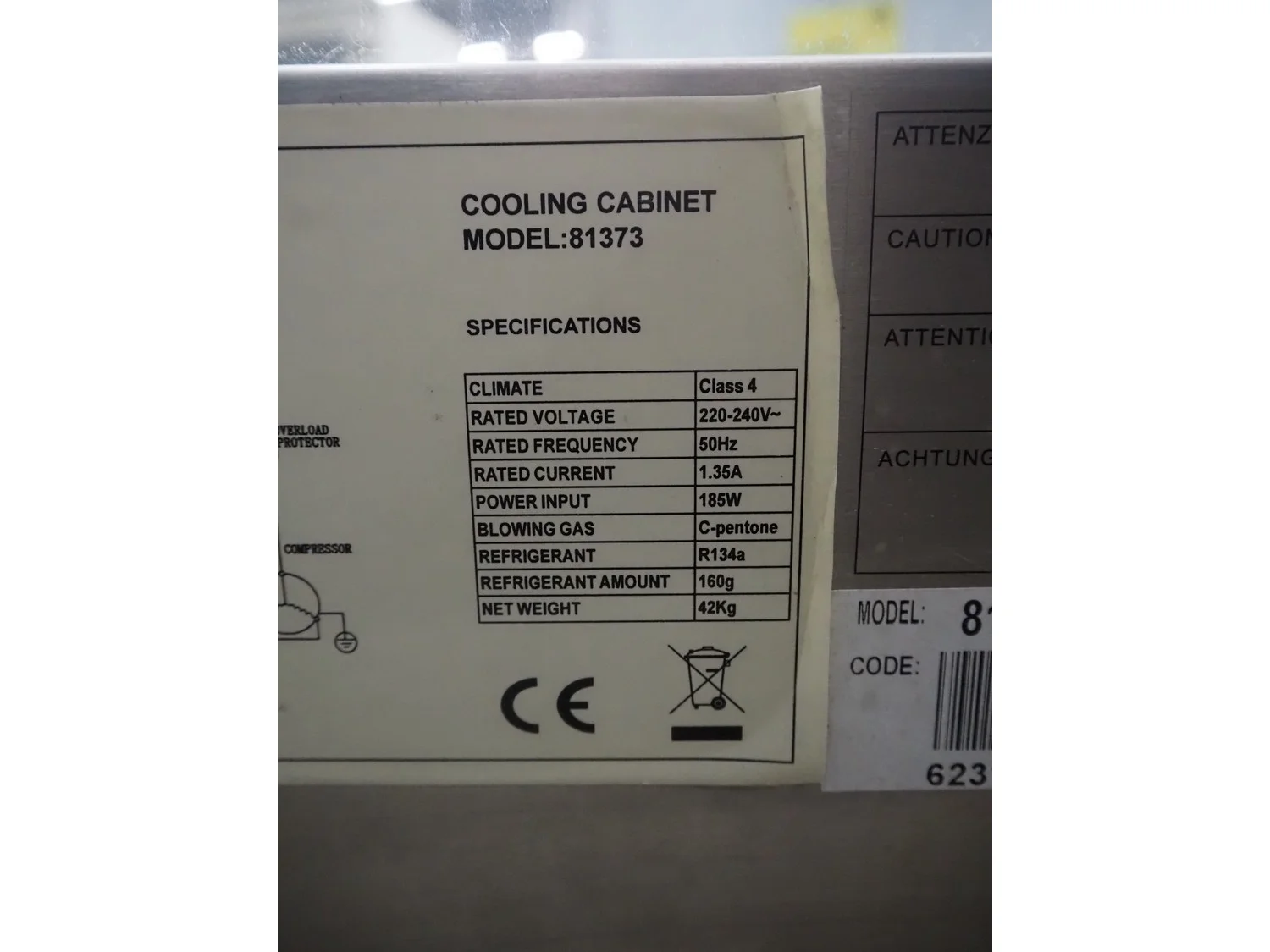 Vega refrigerated showcase, model: 81373, 220/240 V, 50 Hz, dimensions: 1200 mm x 400 mm x 470 mm.