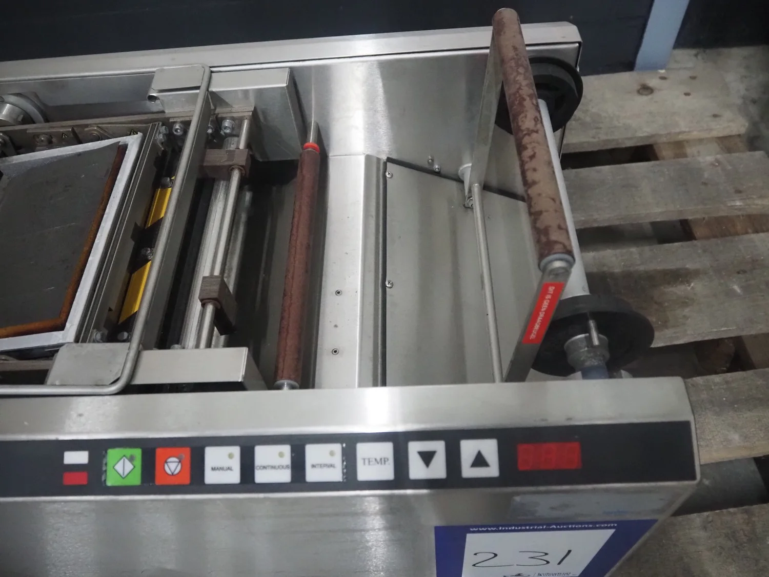 Packaging machine, seal length: (2x) 150 mm and 220 mm, total dimensions packaging machine: 740 mm x 450 mm x 400 mm.