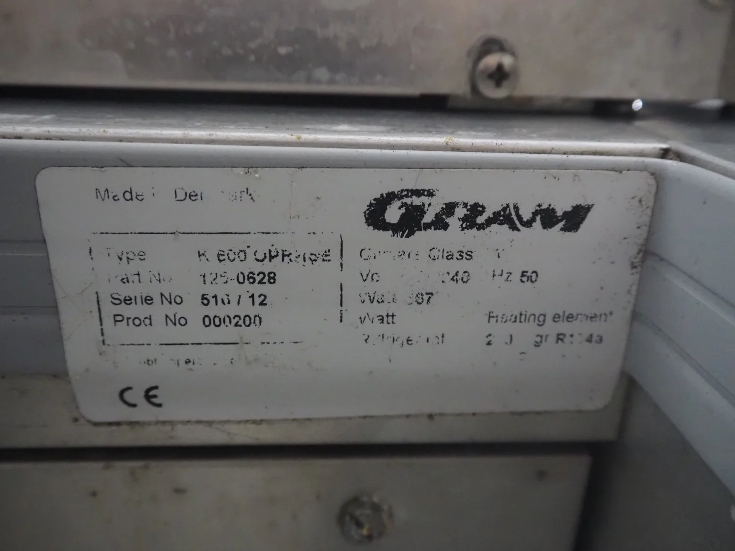 Gram mobile refrigerator, type: K600, 4 floors, dimensions each floor: 525 mm x 590 mm, total dimensions: 700 mm x 850 mm x 2000 mm.