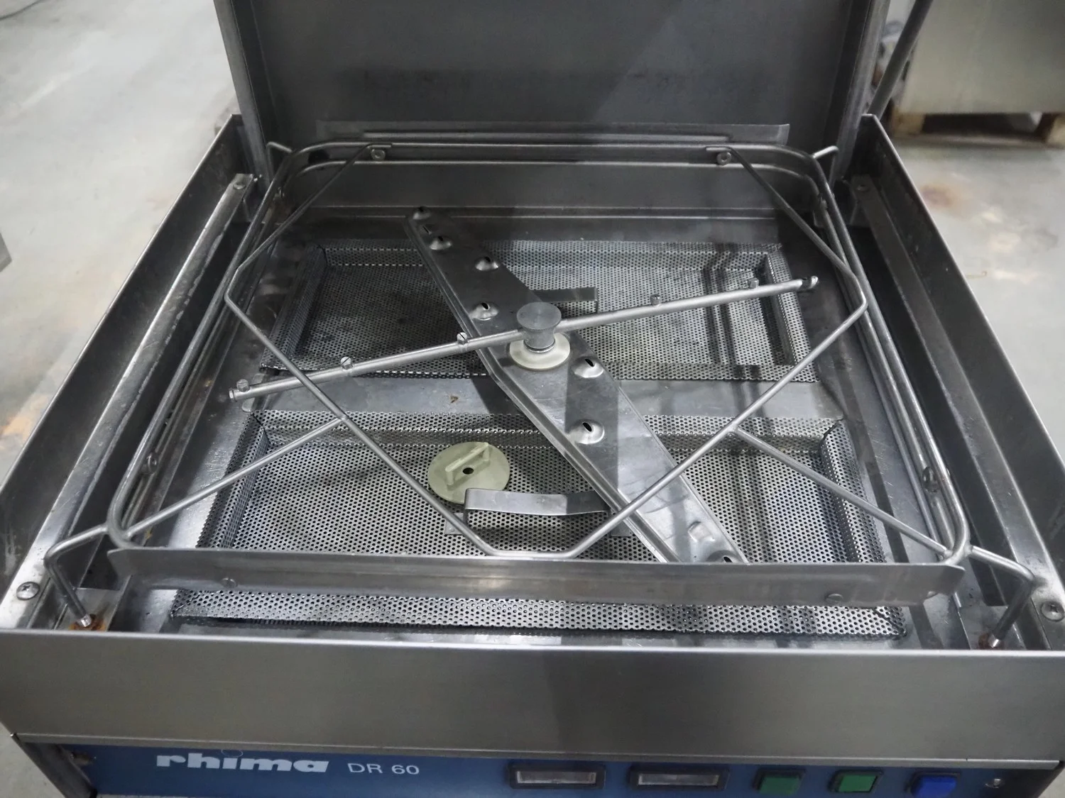 Rhima washing machine, model: DR 60, serial number: 95.811, year of construction: 2000, 380 V, 3 Ph, 50 Hz, 25 A, 10 kW, dimensions: 800 mm x 700 mm x 1450 mm.