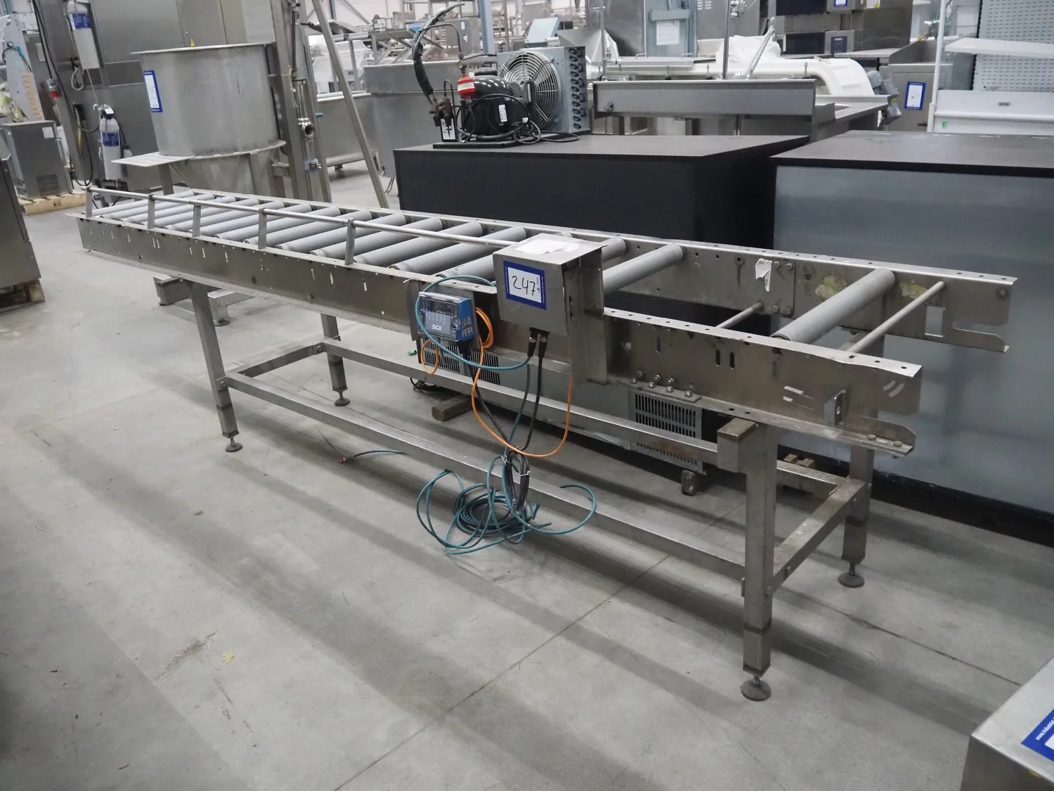 S/s roller conveyor, plastic rollers, roller width: 450 mm, total dimensions: 3100 mm x 660 mm x 900 mm.