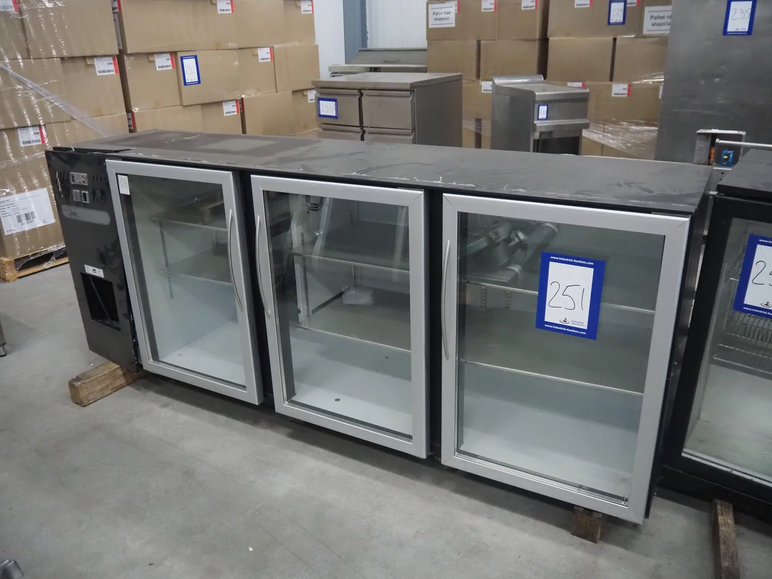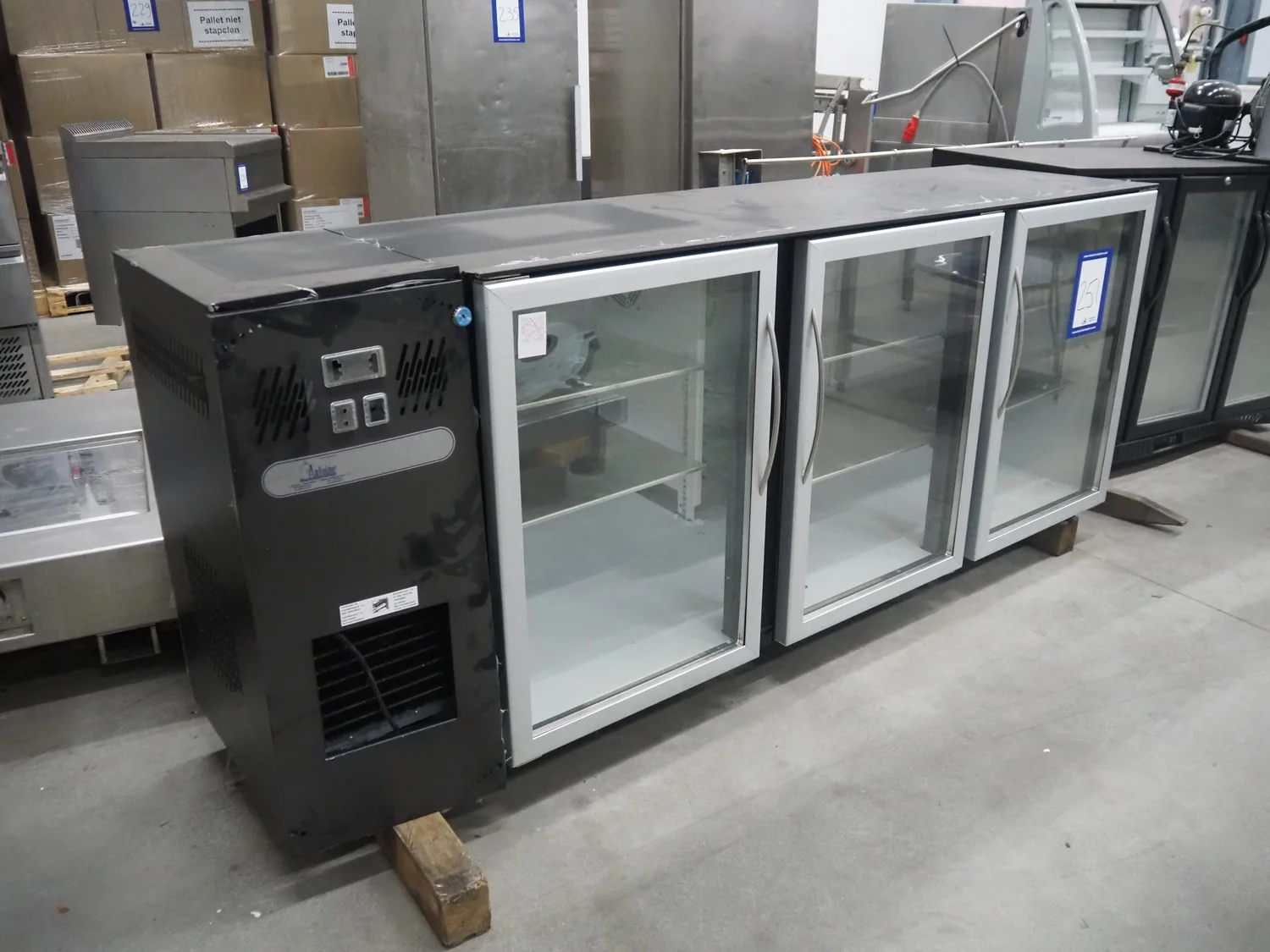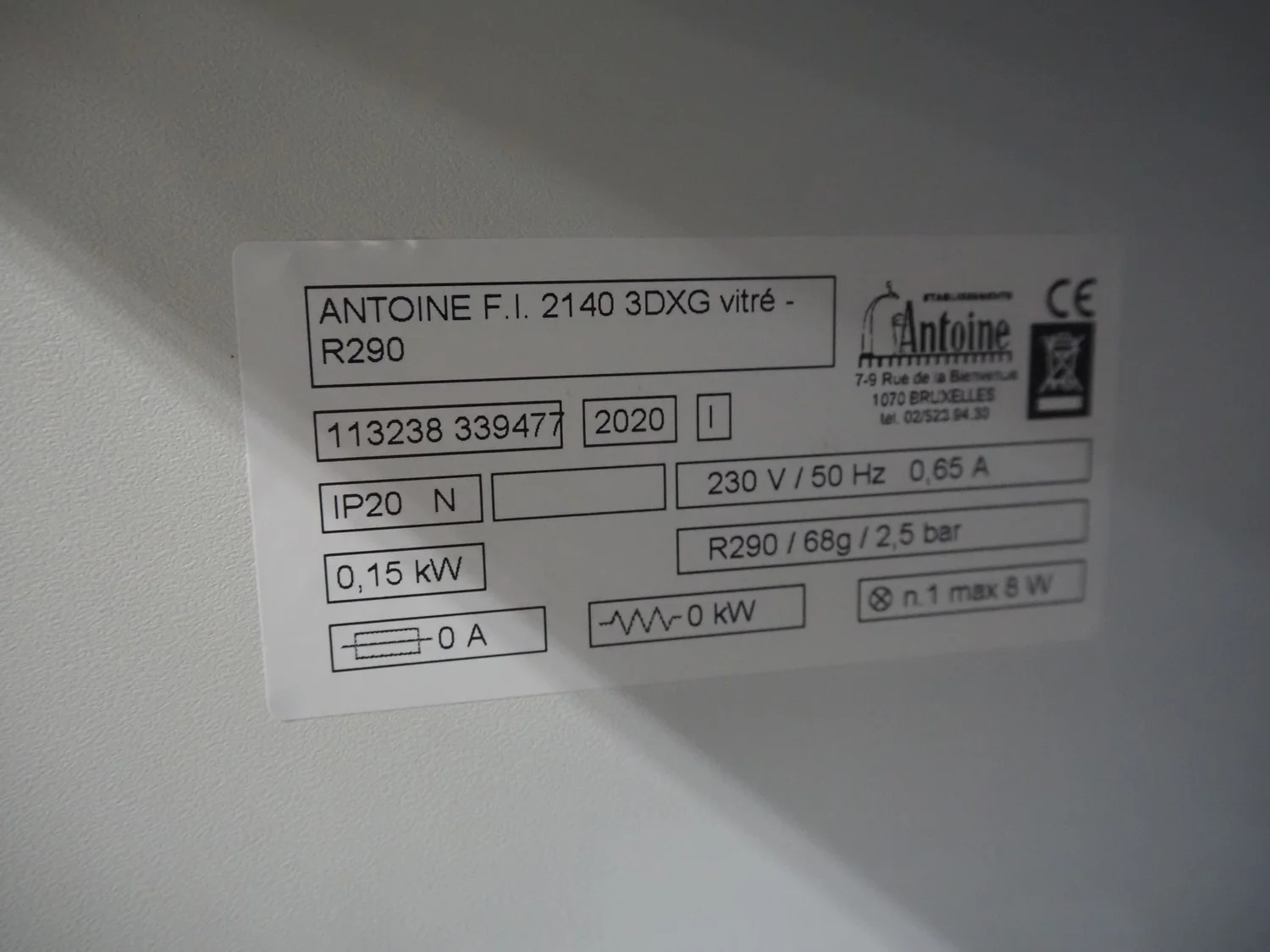 Antoine 3-doors refrigerator, type: ANTOINE F.I. 2140 3DXG vitré - R290, number: 113238 339477, year of construction: 2020, 230 V, 50 Hz, 0.65 A, 0.15 kW, refrigerant: R290, 68 gram, dimensions: 2150 mm x 550 mm x 820 mm.