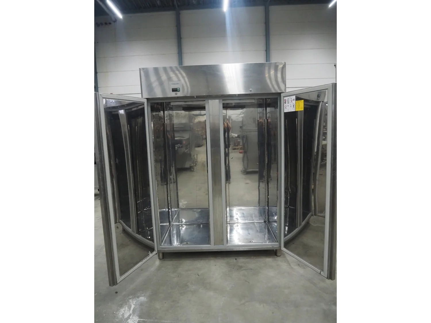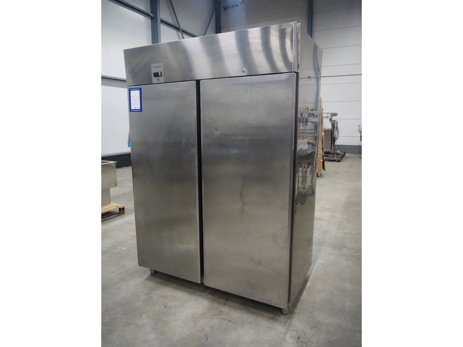 Electrolux 2-door freezer, model: RE4142FF, serial number: 30210002, year of construction: 2013, 230 V, 1 Ph, 50 Hz, 4.9 A, refrigerant: R404a, 0.29 kg, dimensions: 1430 mm x 840 mm x 2050 mm. Damaged.