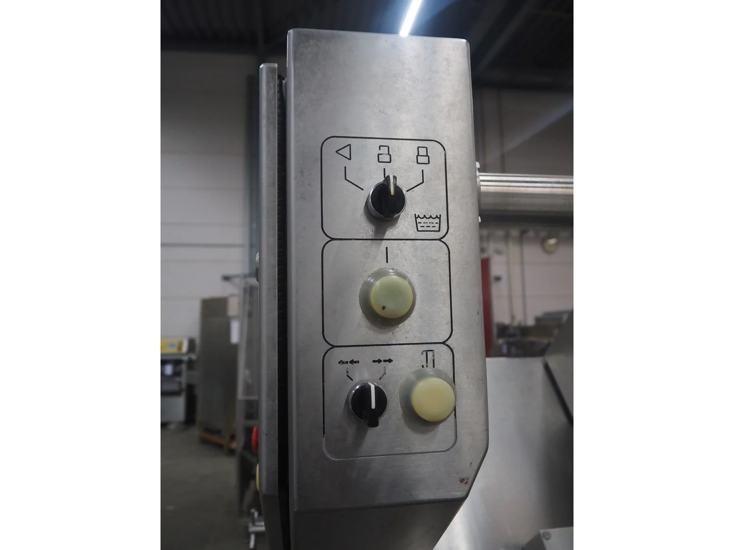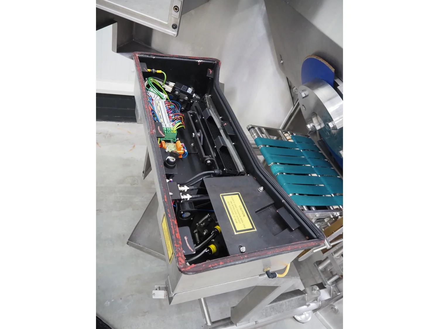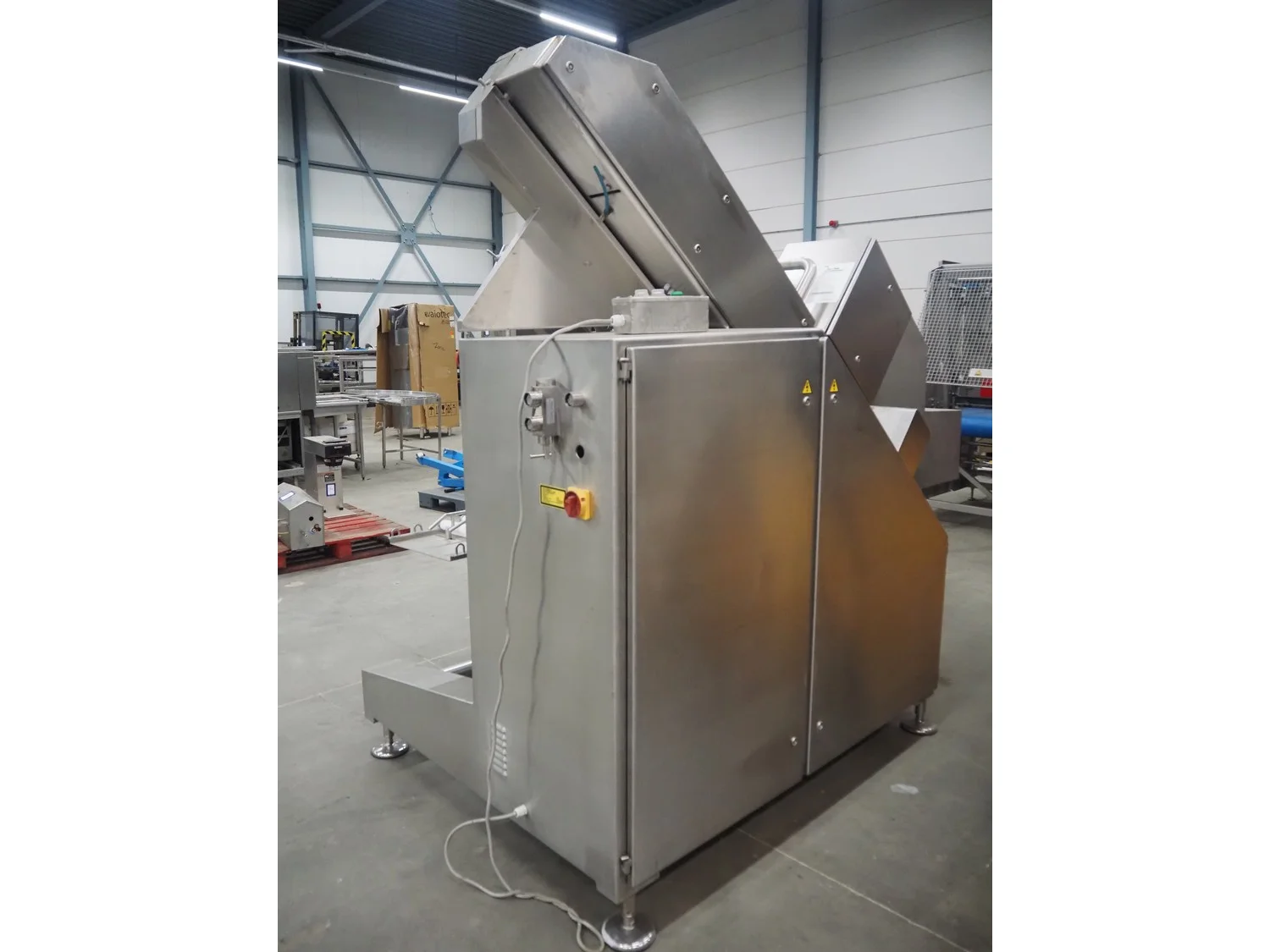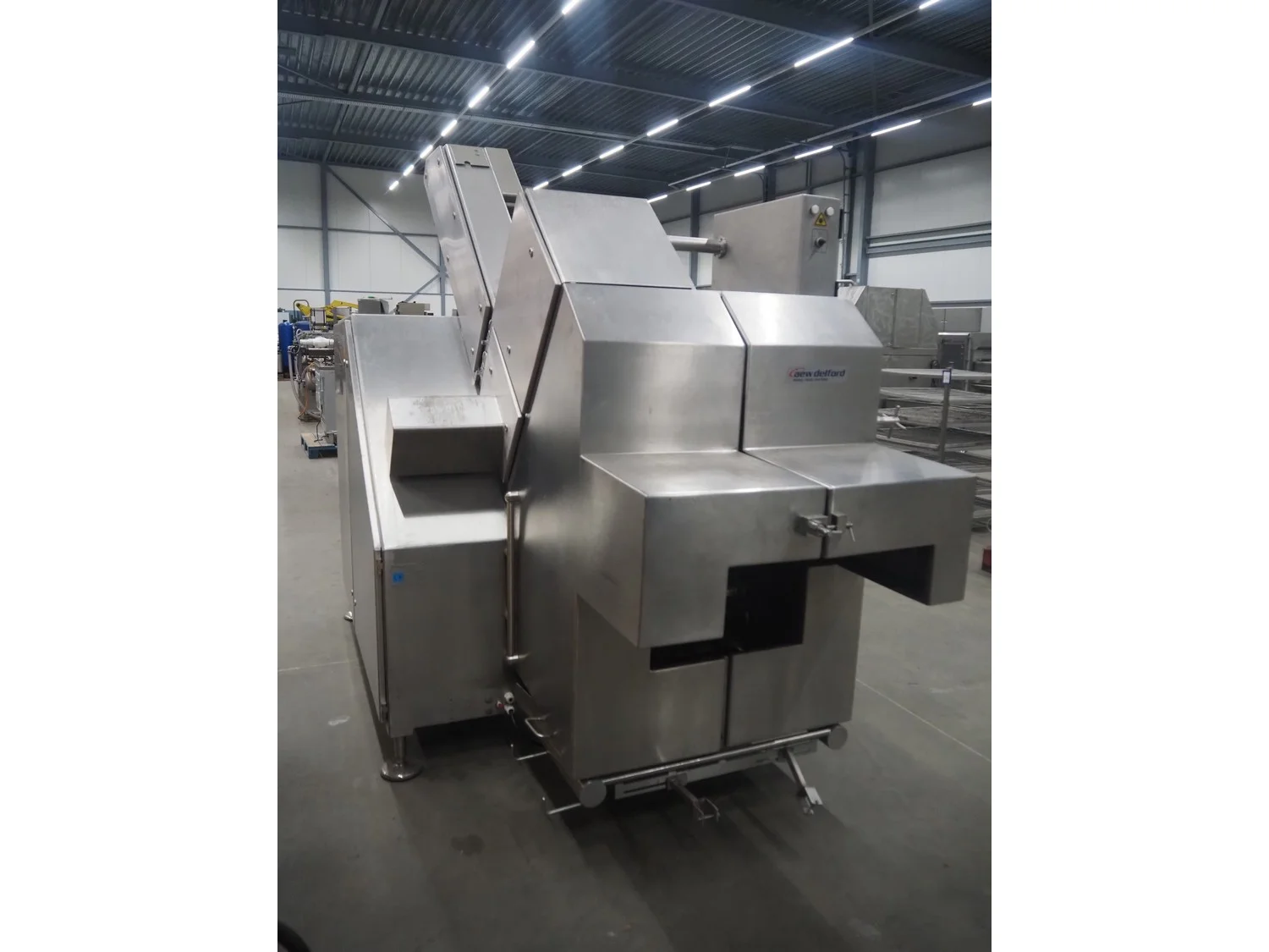 AEW Delford slicer, model: PolySlicer 3000V, serial number: 1890055, 400 V, 3 Ph, 50 Hz, 40 A, weight: 1100 kg, dimensions: 2800 mm x 1400 mm x 2350 mm. Without outfeed belt.