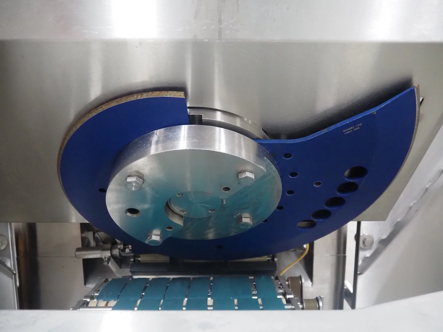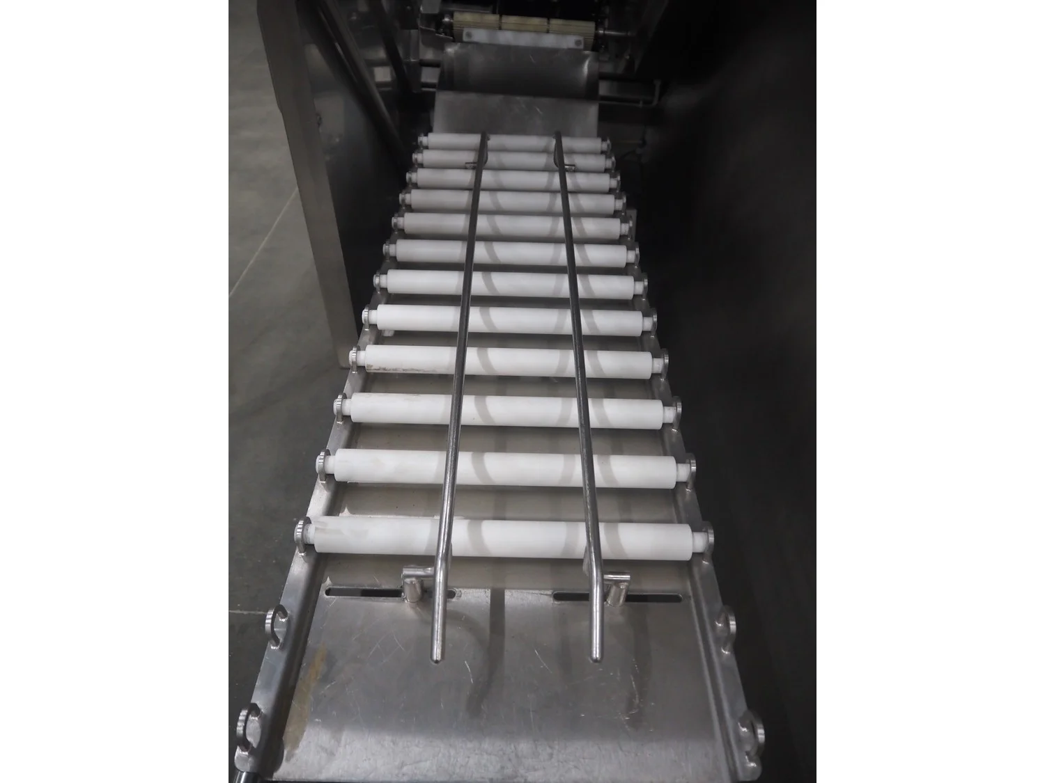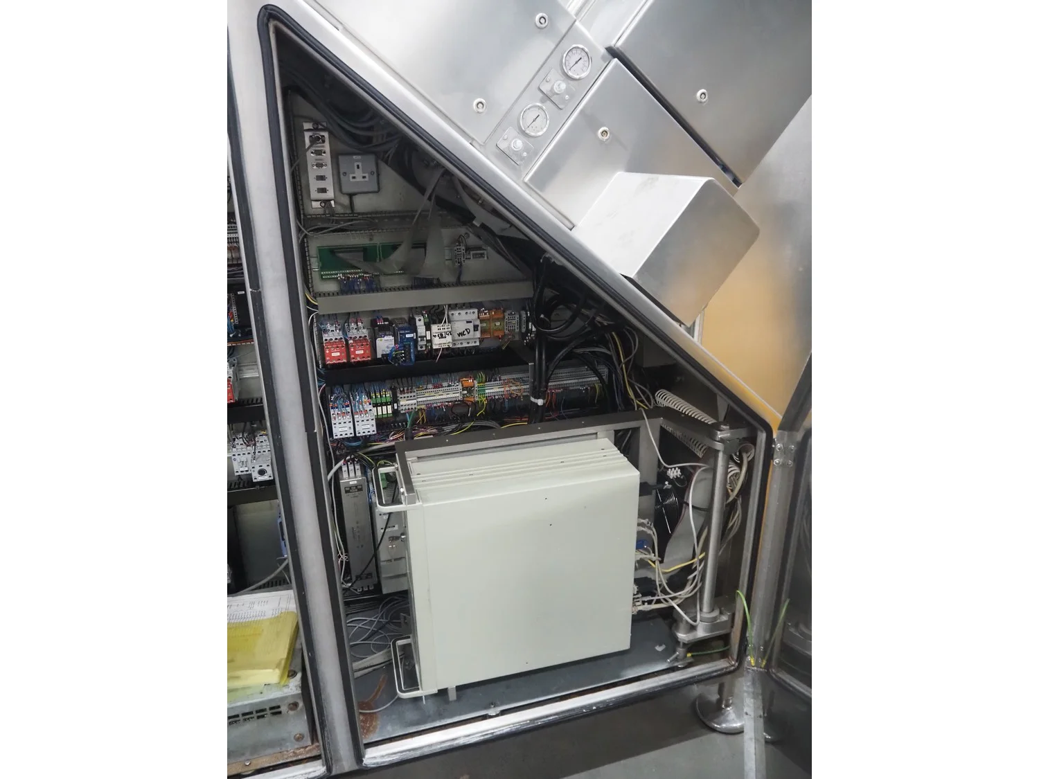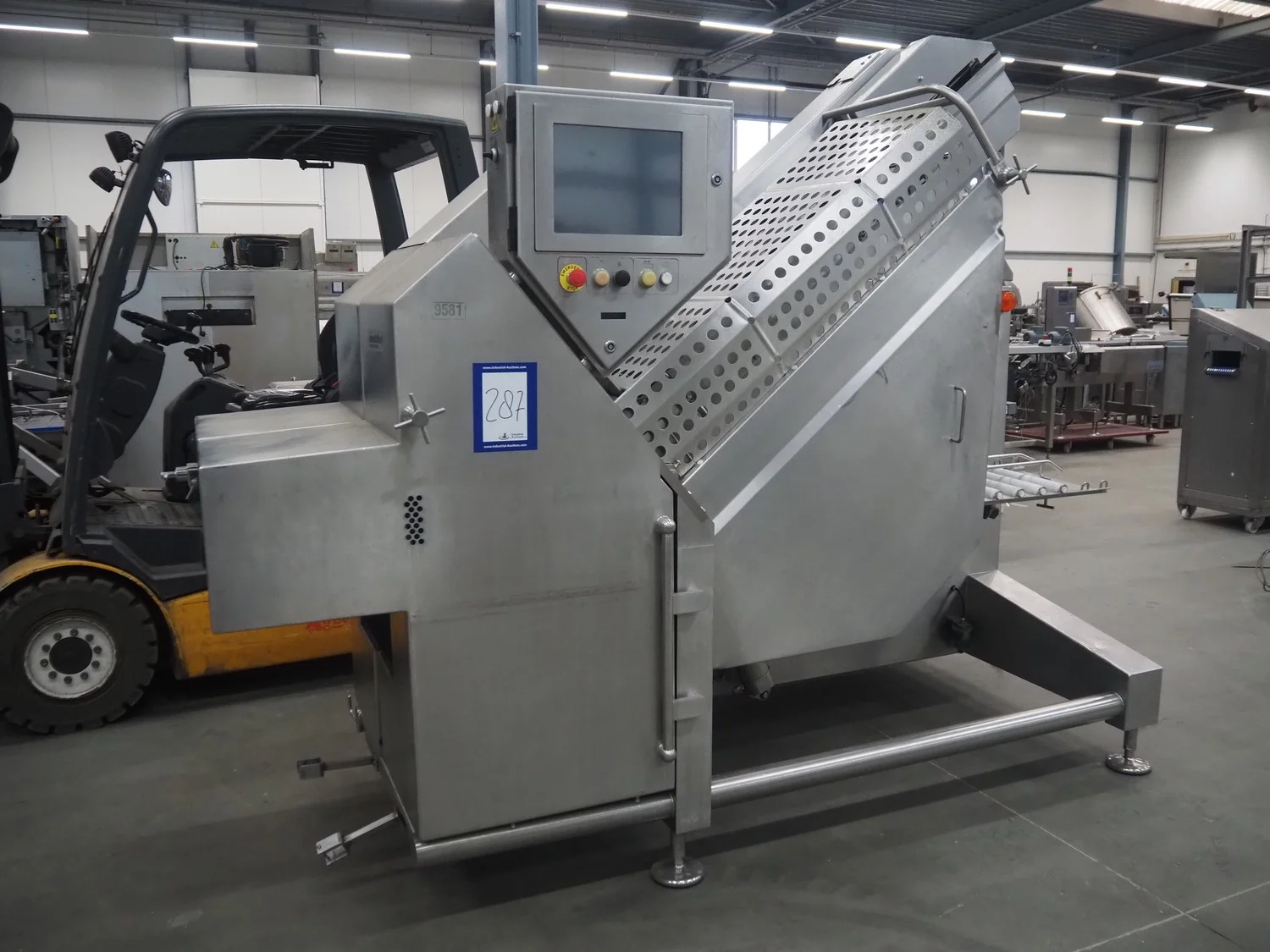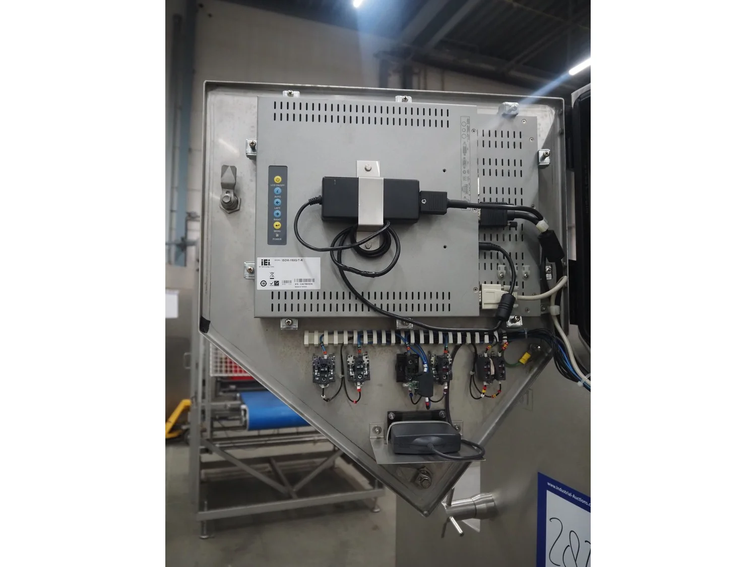 AEW Delford slicer, model: PolySlicer 3000V, serial number: 1890055, 400 V, 3 Ph, 50 Hz, 40 A, weight: 1100 kg, dimensions: 2800 mm x 1400 mm x 2350 mm. Without outfeed belt.