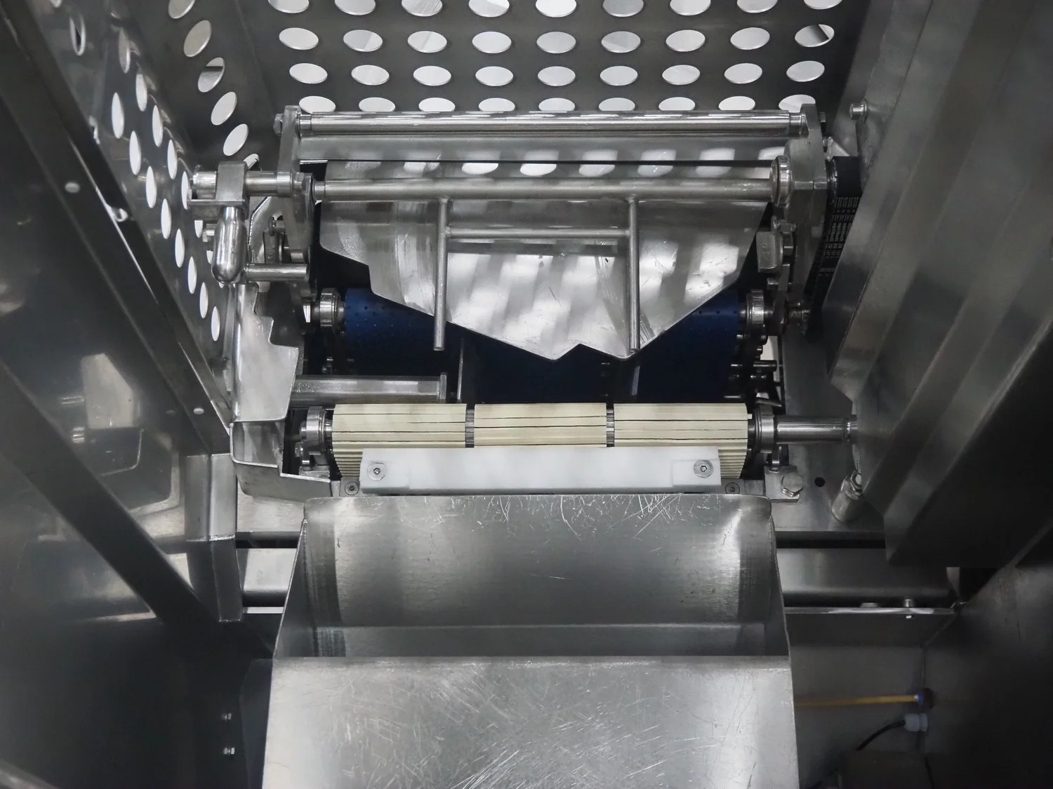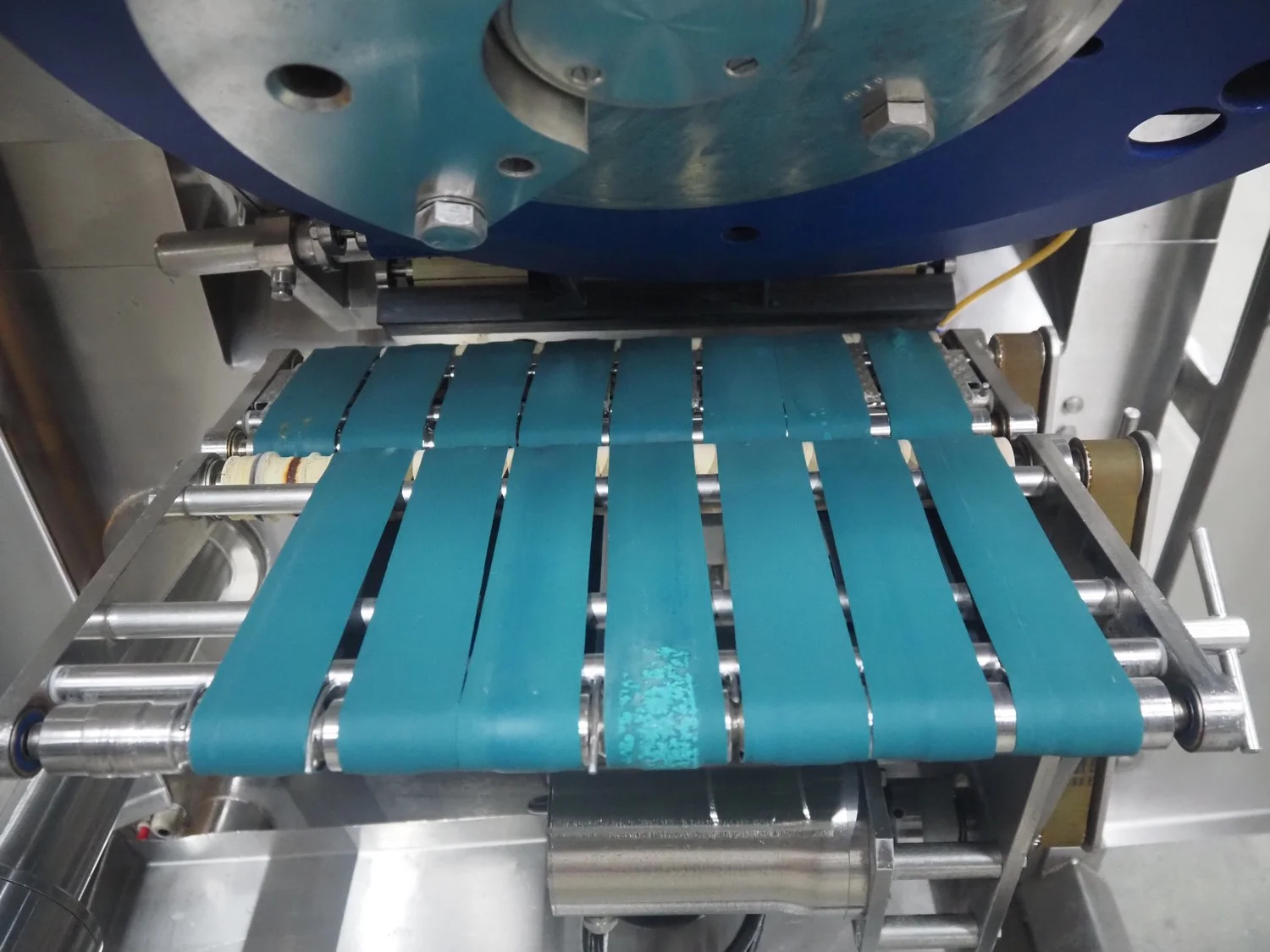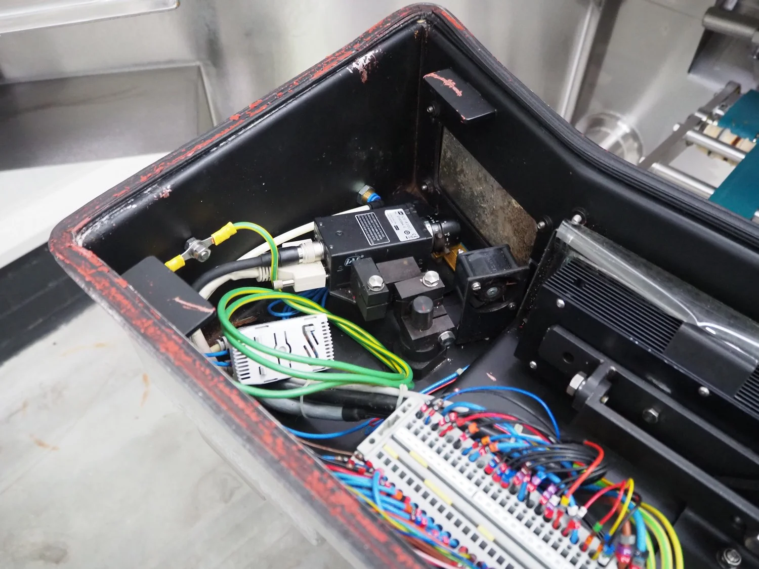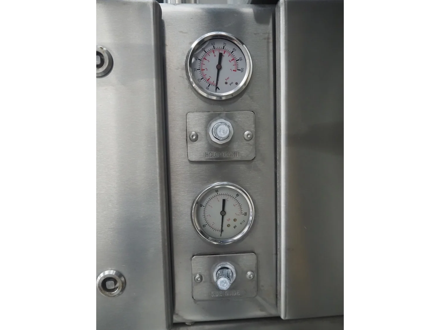 AEW Delford slicer, model: PolySlicer 3000V, serial number: 1890055, 400 V, 3 Ph, 50 Hz, 40 A, weight: 1100 kg, dimensions: 2800 mm x 1400 mm x 2350 mm. Without outfeed belt.
