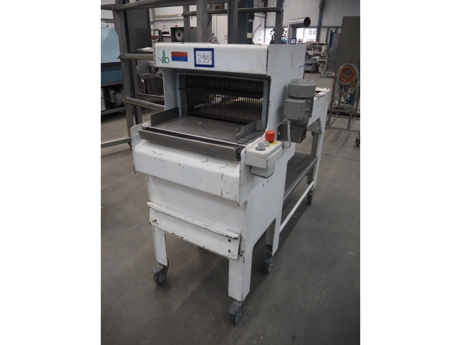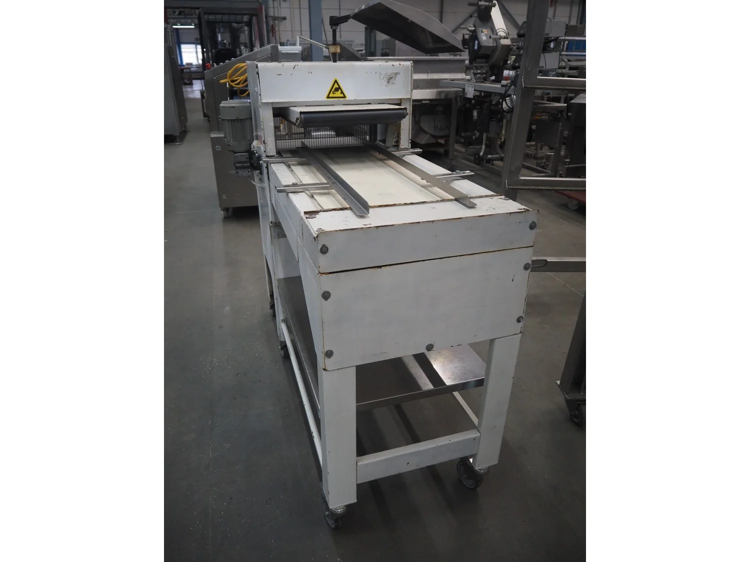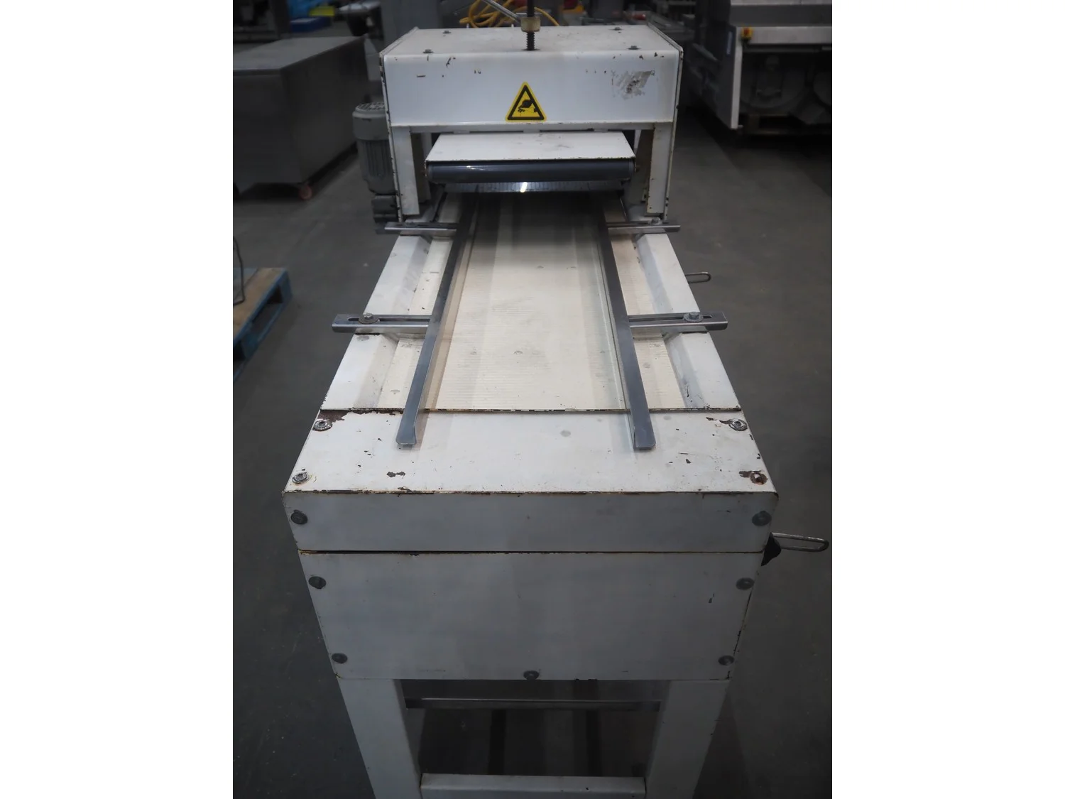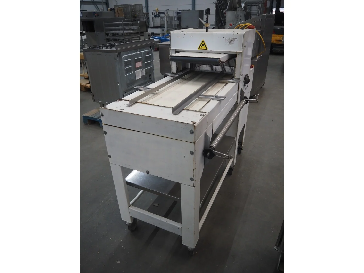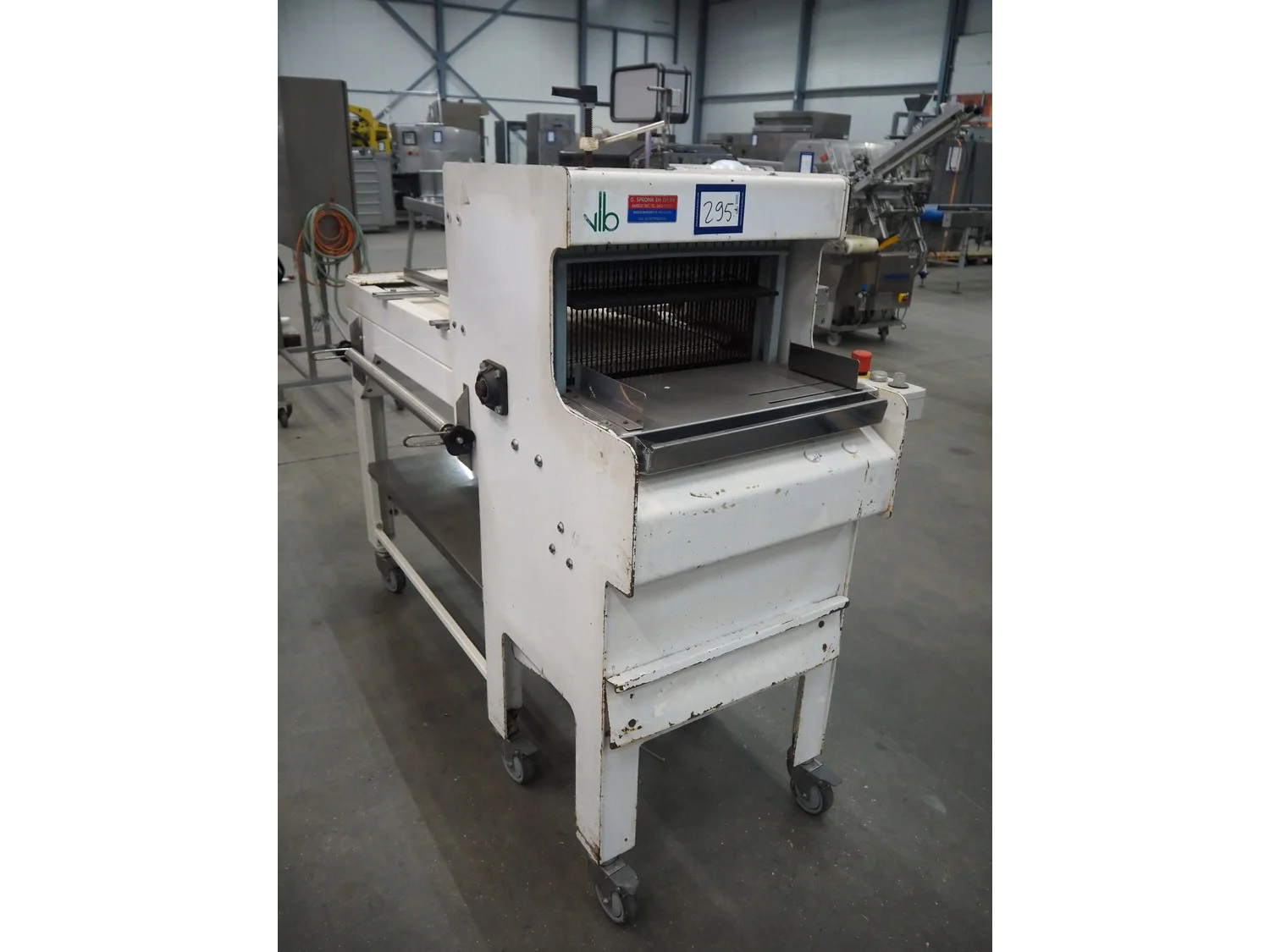 VLB mobile bread slicer, type: BN 45/11, number: 3320, year of construction: 2000, 220-380 V, 50 Hz, 0.37 kW, belt width: 400 mm, total dimensions: 1550 mm x 700 mm x 1400 mm.
