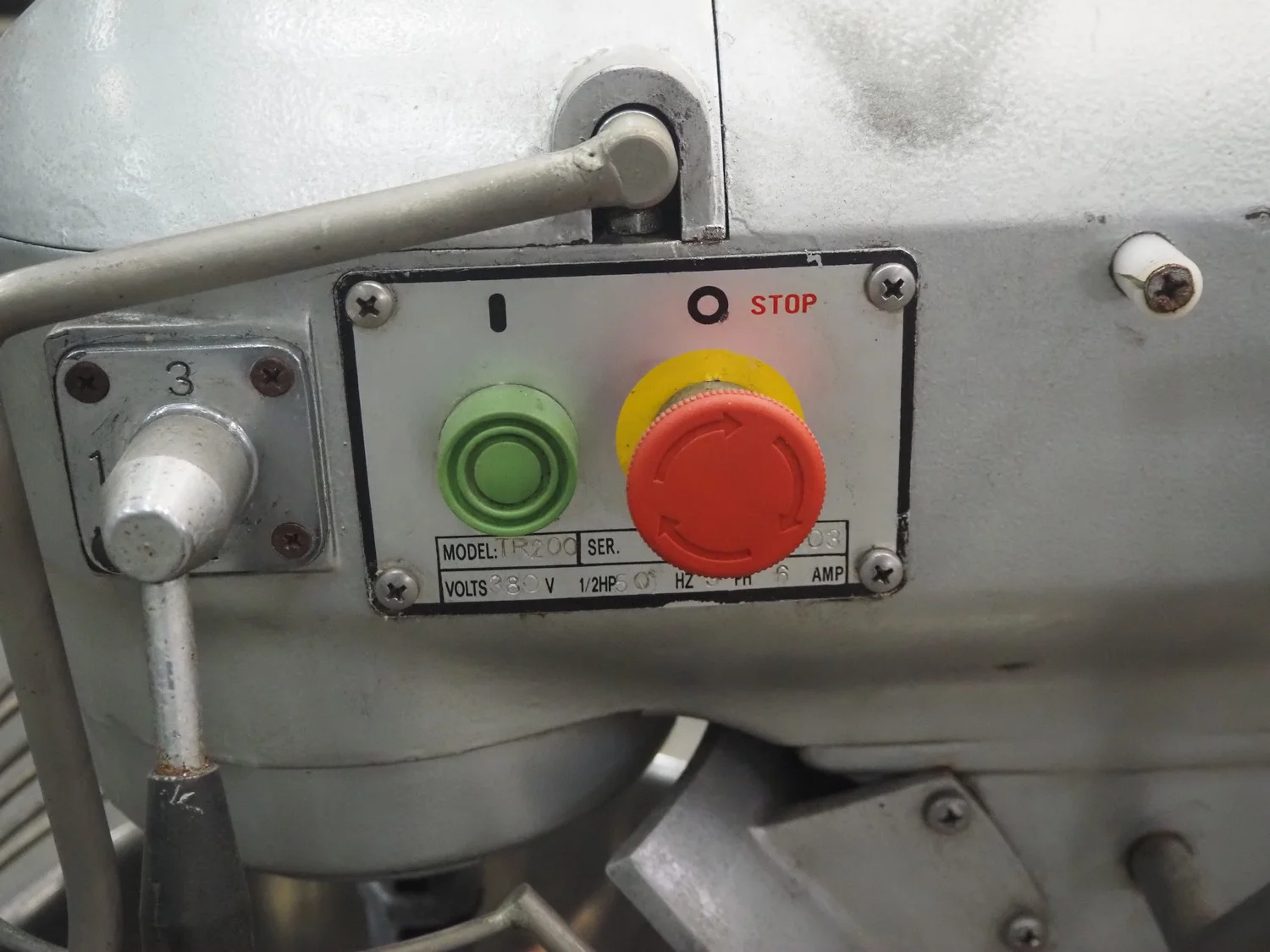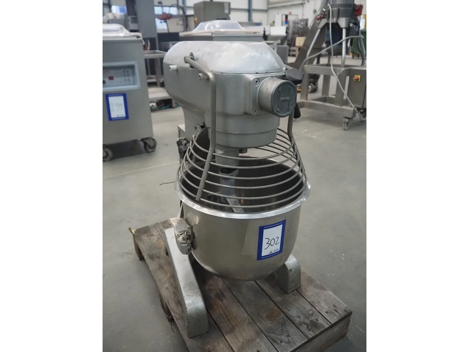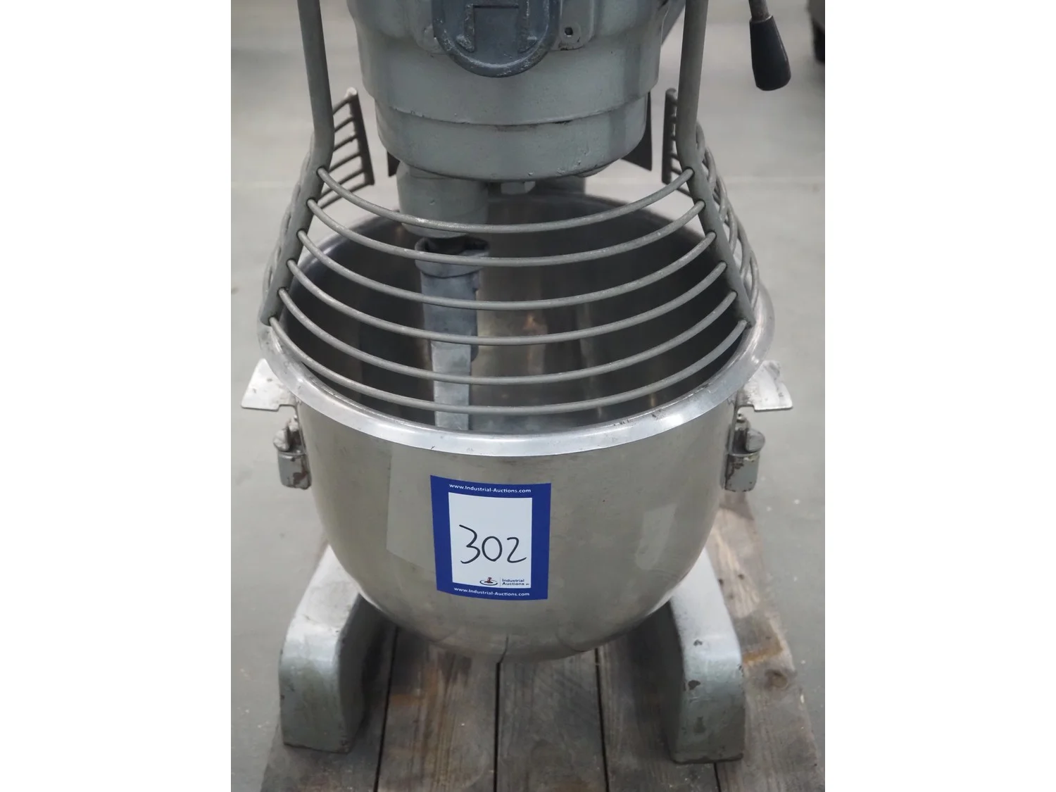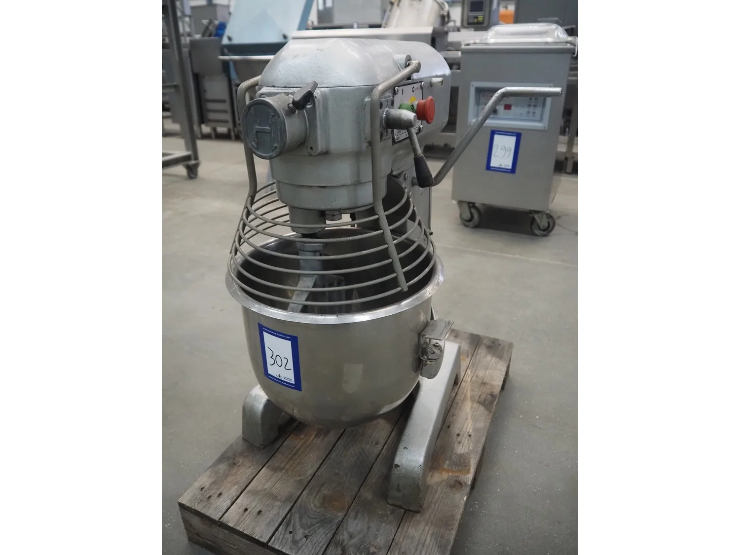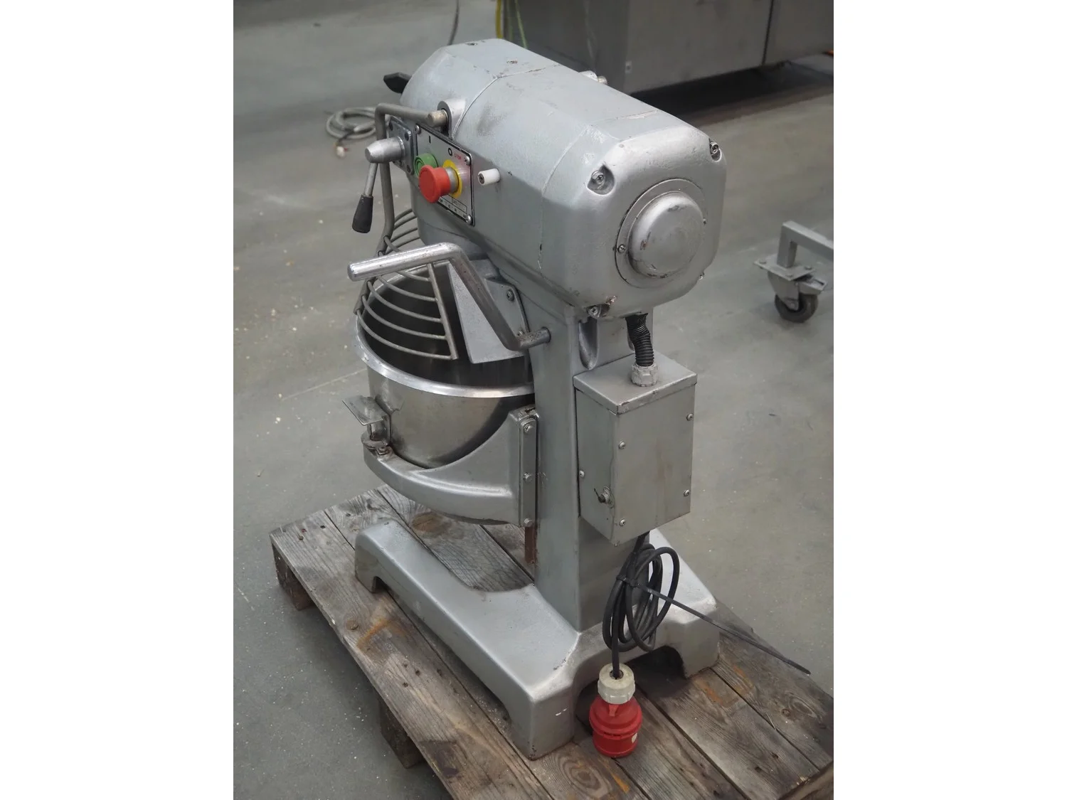 S/s mixer, model: TR200, 380 V, 3 Ph, 50 Hz, 6 A, volume: 20 liter, total dimensions: 340 mm x 400 mm x 770 mm.