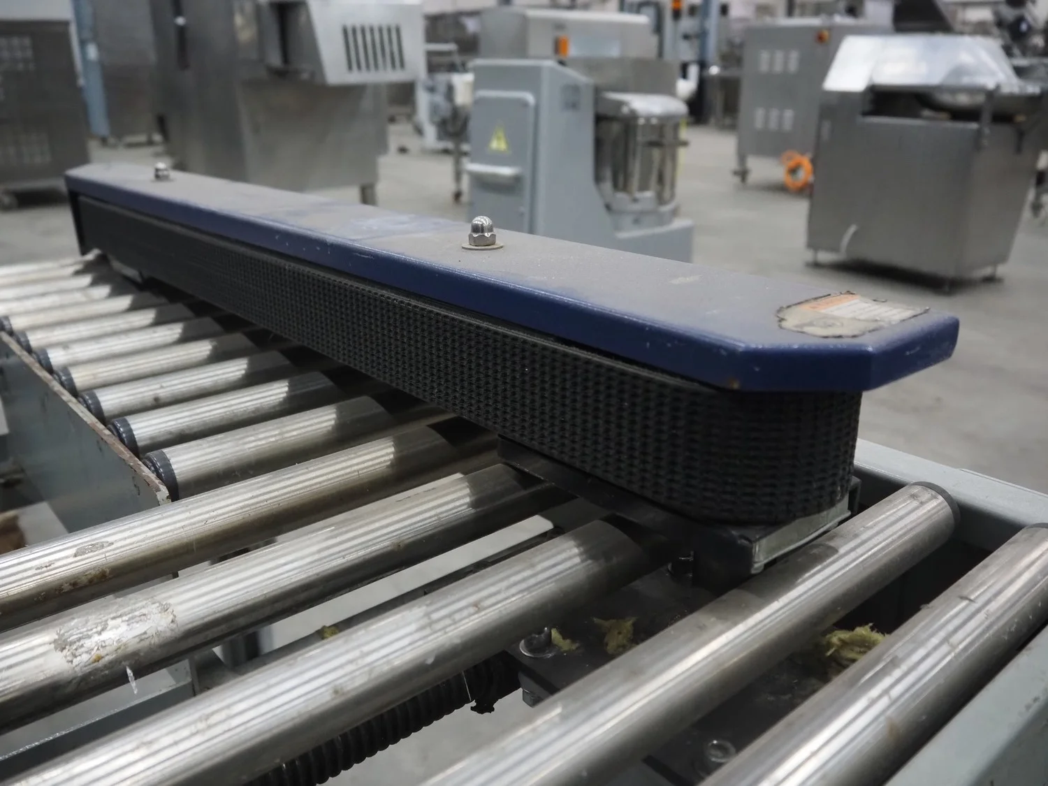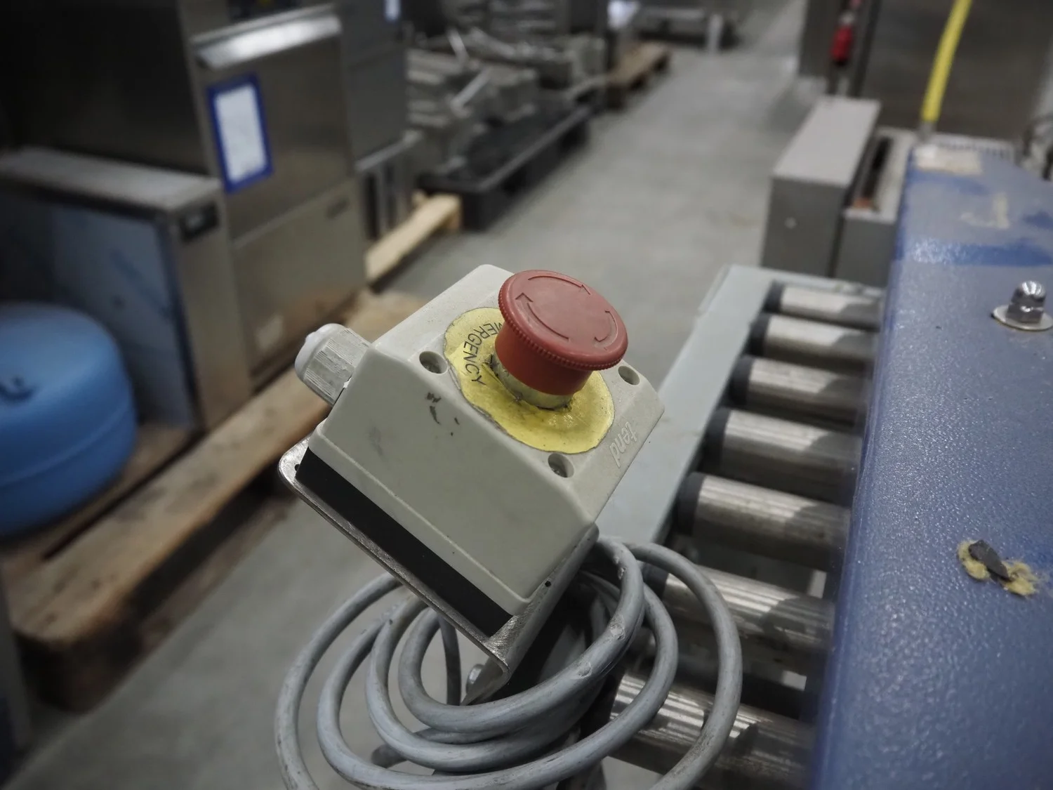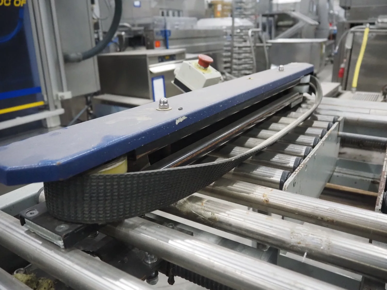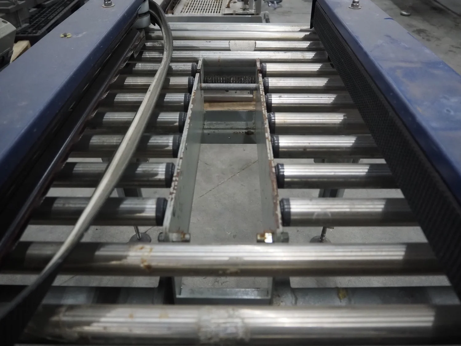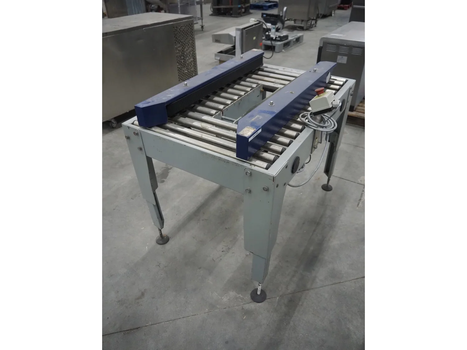 Youngsunpack box closing machine, type: MH-FJ-1A, serial number: 130508C S1-03, year of construction: 2012/2013/2014, 220 V, 1 Ph, 50 Hz, 600 W, aluminium rollers, roller width: (14x) 280 mm and (8x) 680 mm, total dimensions: 1100 mm x 800 mm x 900 mm. Incomplete.