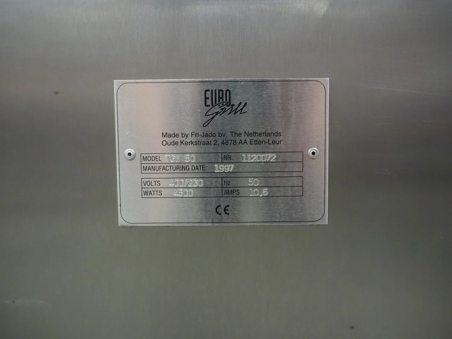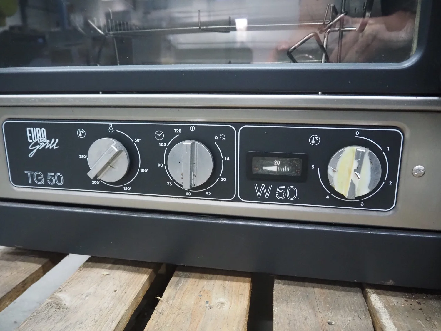 Eurogrill rotary grill, model: TGW 50, serial number: 1120072, year of construction: 1997, 400 V, 4500 W, 50 Hz, 10,6 A, 3 floors, dimensions each floor: 320 mm x 350 mm, total dimensions; 1000 mm x 500 mm x 700 mm.