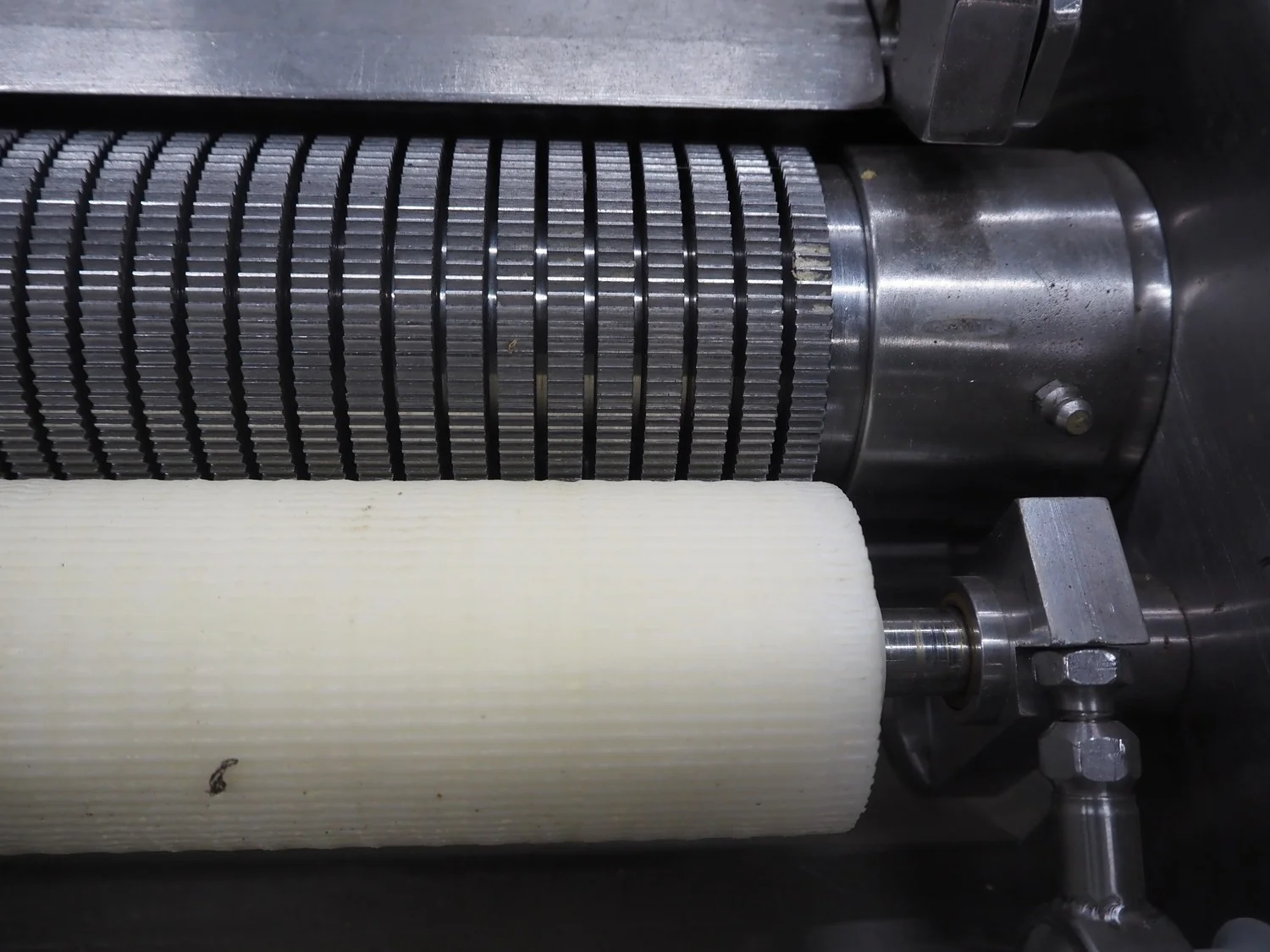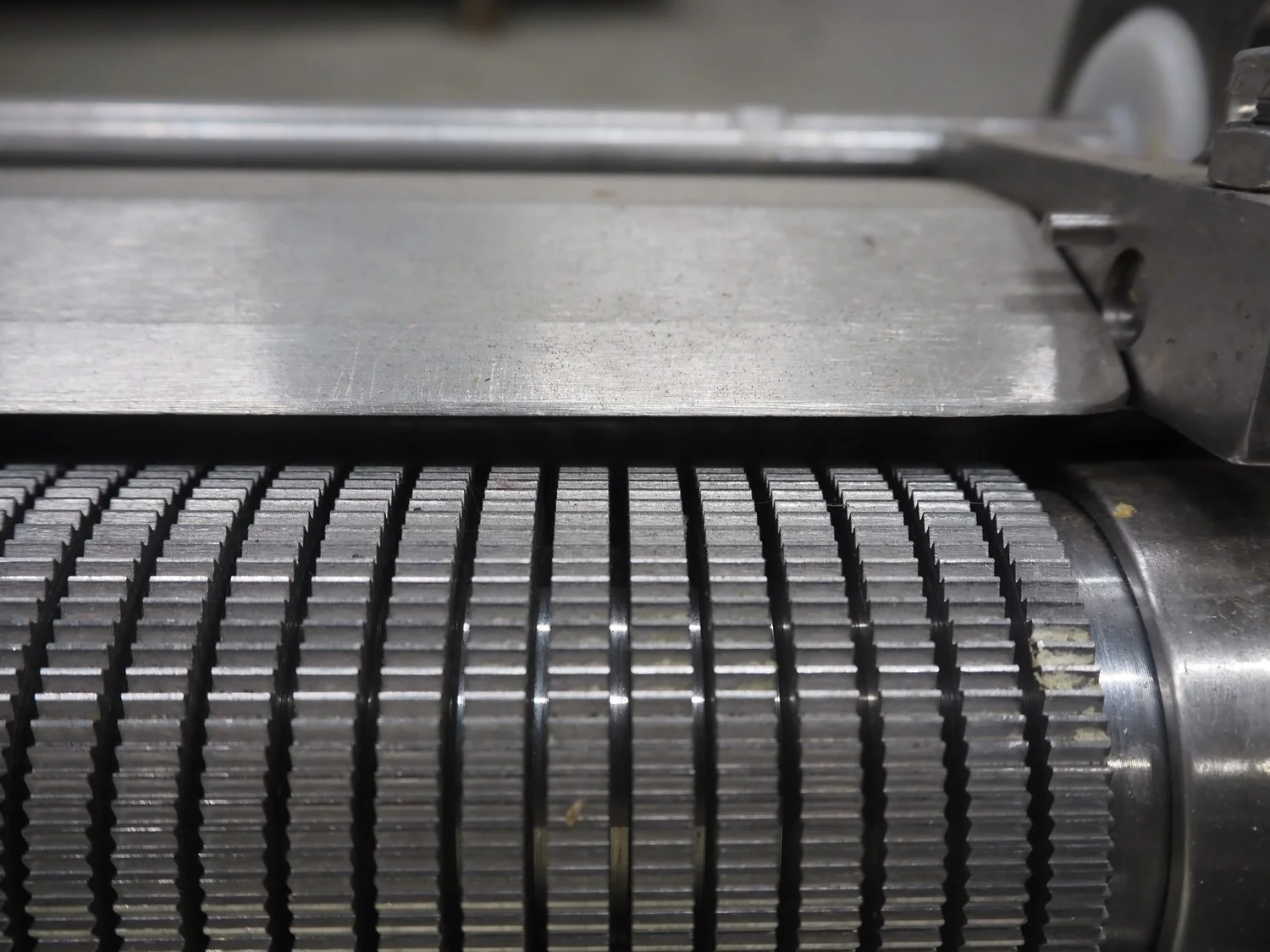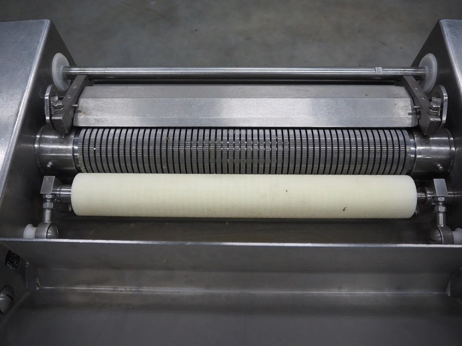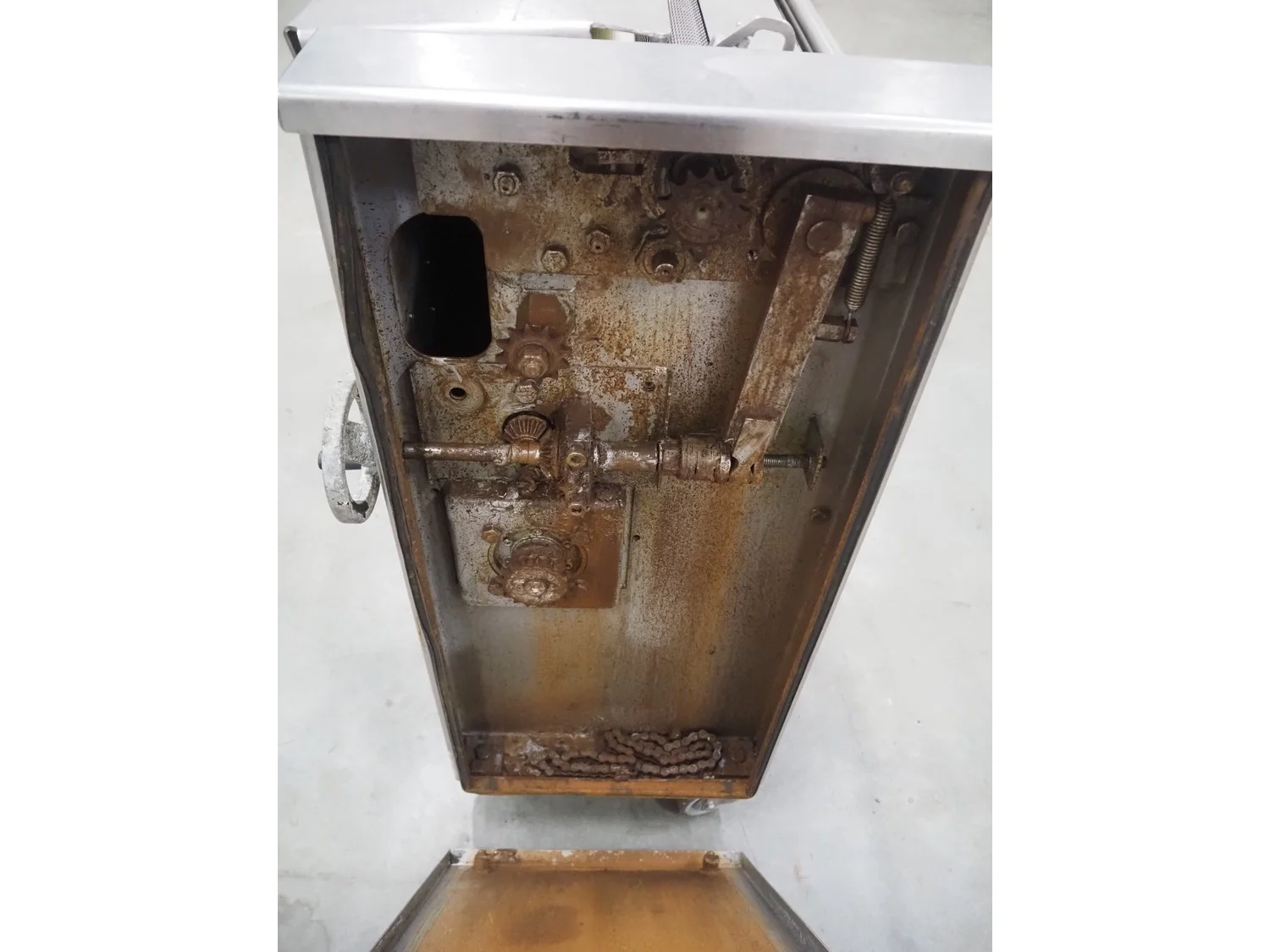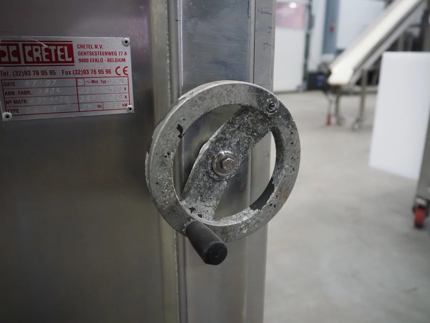 Cretel mobile skinning machine, working width: 435 mm, total dimensions: 750 mm x 500 mm x 990 mm.