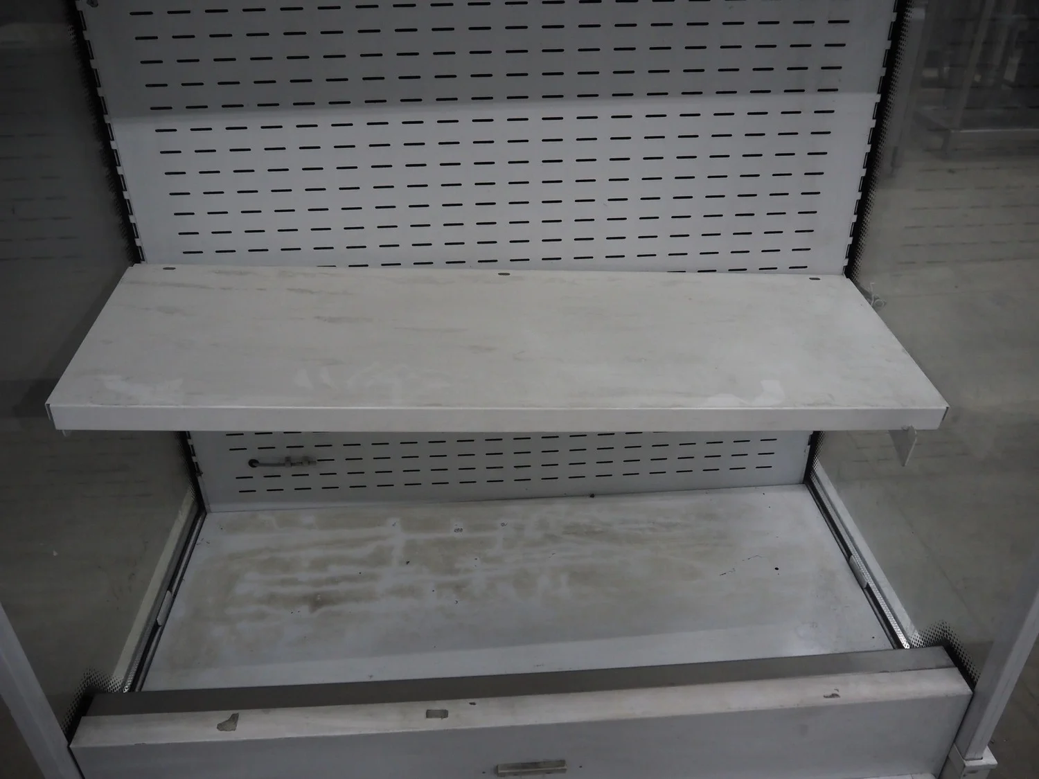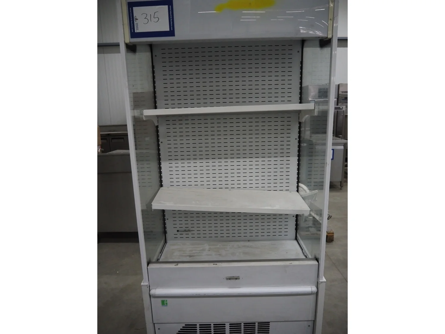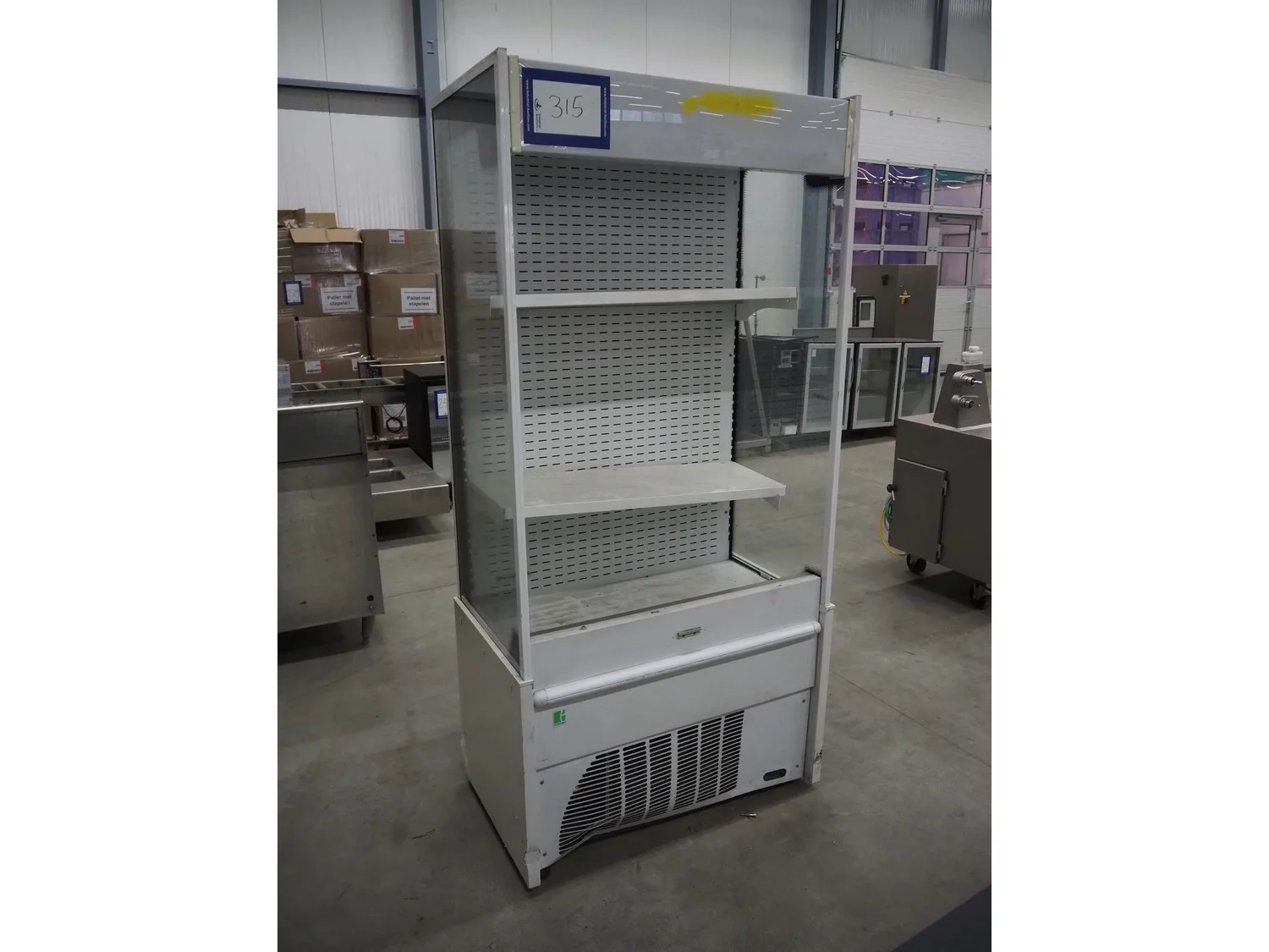 Mondial Group S.r.l. refrigerated showcase, type: E6106M0100, number: 626RA13997, 220/240 V, 50 Hz, 4.5 A, 940 W, refrigerant: R507, 0.610 kg, 3 floors, dimensions each floor: 285 mm x 900 mm, total dimensions: 600 mm x 980 mm x 2020 mm.