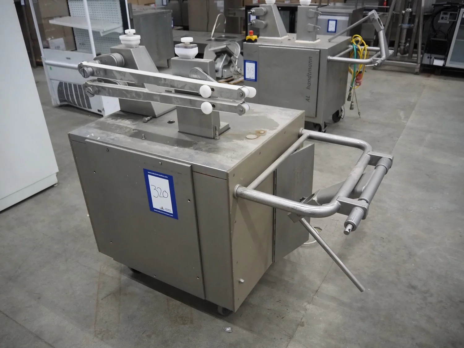 Handtmann mobile linker, type: 115-21, number: 337, year of construction: 2000, 400 V, 50 Hz, 3.5 A, 2.5 kW, dimensions: 1300 mm x 700 mm x 1250 mm.