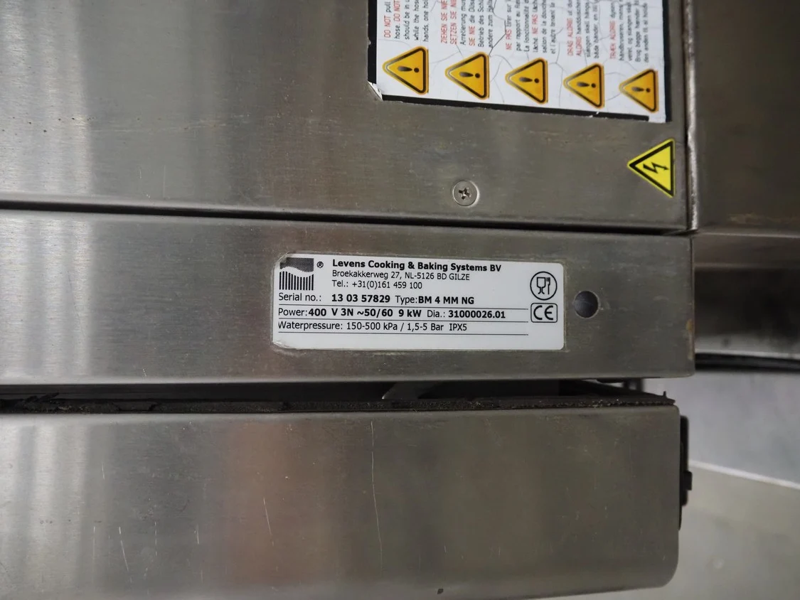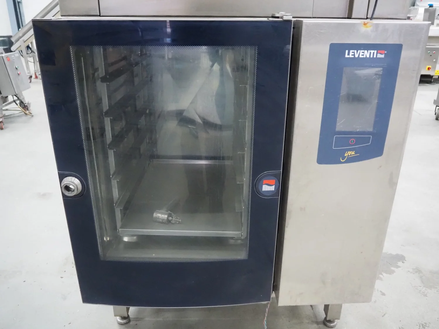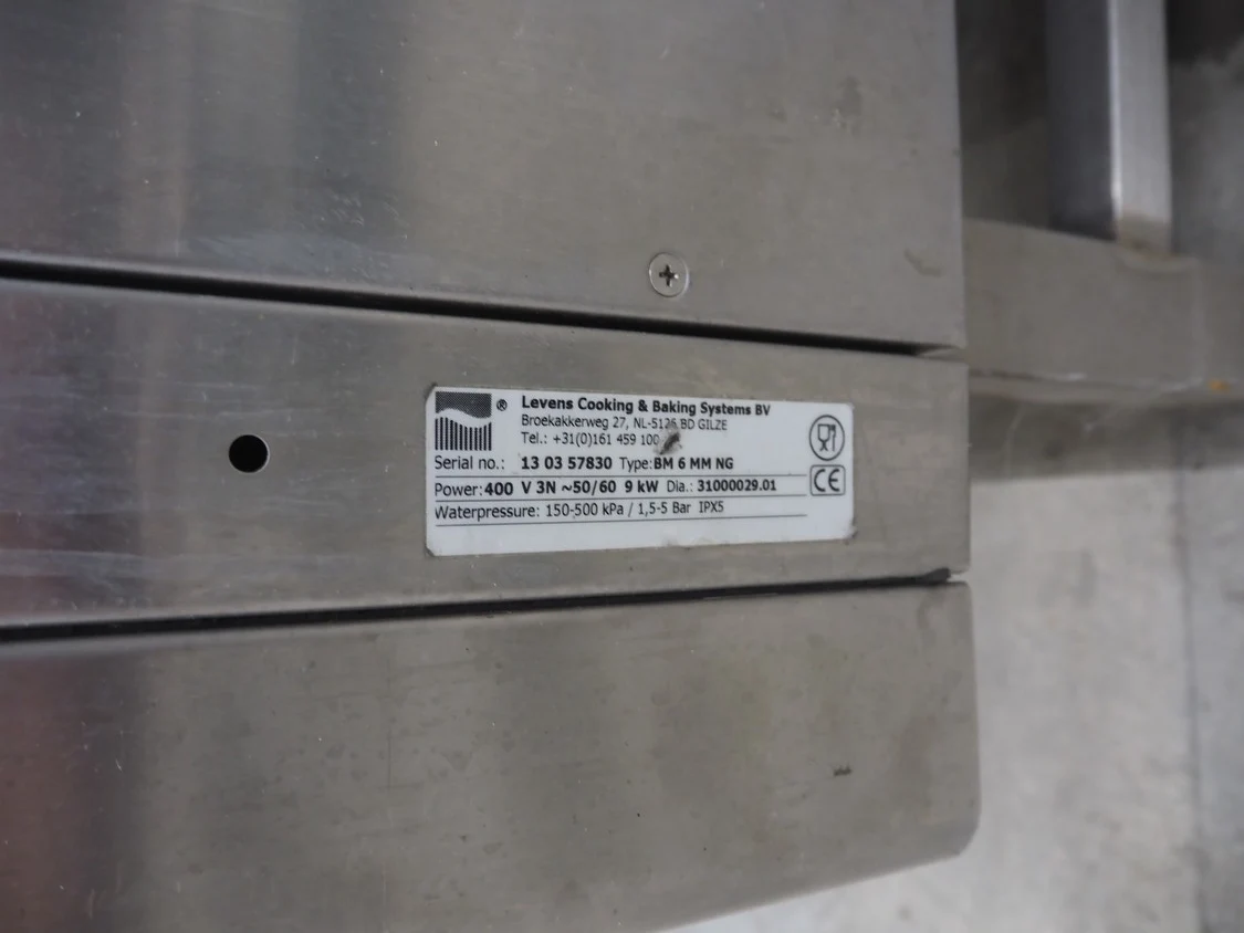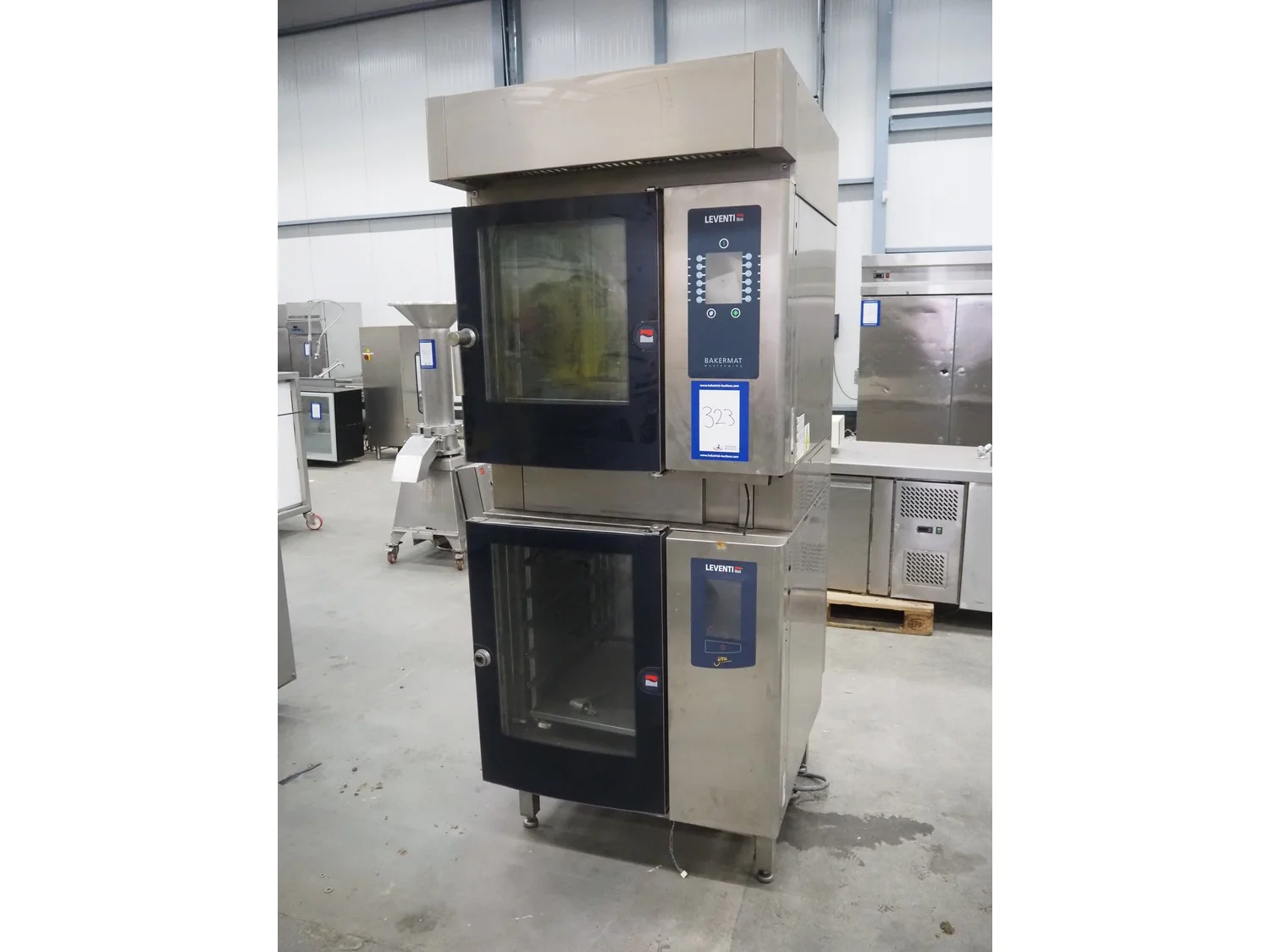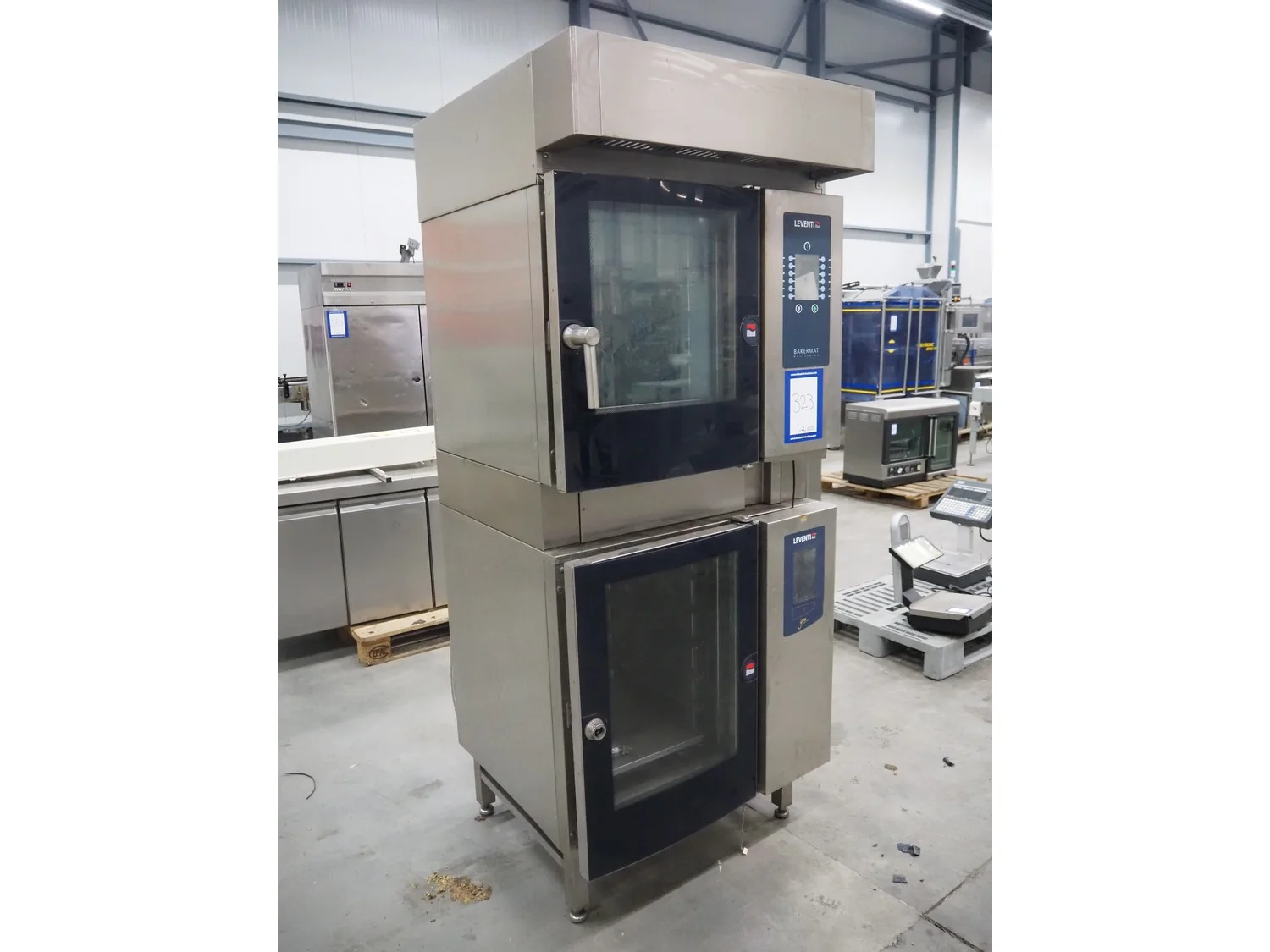 Leventi double combi steamer, type: BM 6 MM NG and BM 4 MM NG, number: 13 03 57830 and 13 03 57829, 400 V, 3 Ph, 50/60 Hz, 9 kW, 10 floors, total dimensions: 1000 mm x 900 mm x 2200 mm.