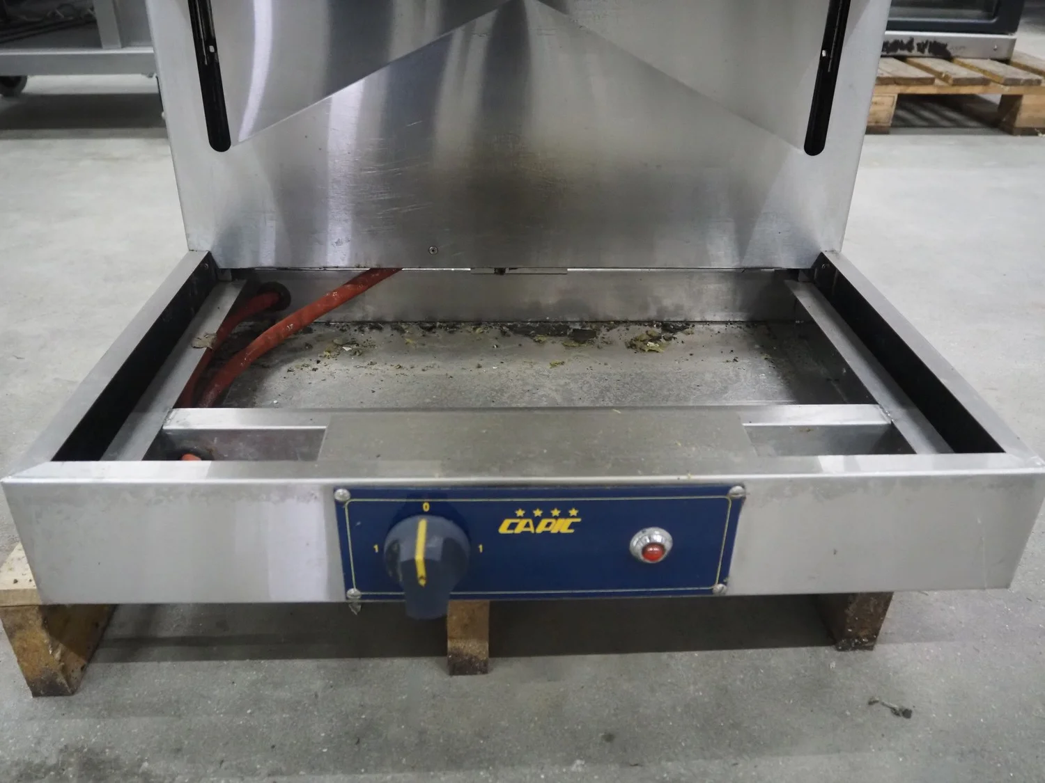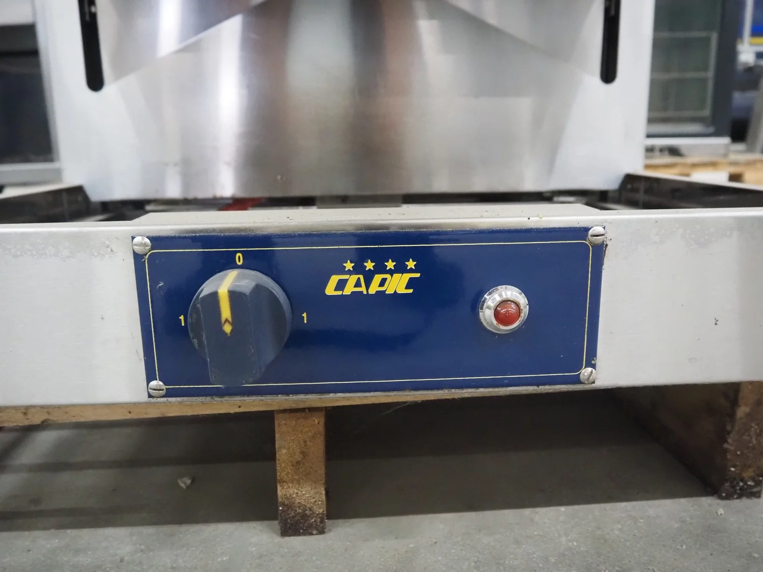Capic grill, model: W040301, number: 120701053, 400 V, 3 Ph, 50 Hz, dimensions: 650 mm x 650 mm x 550 mm.